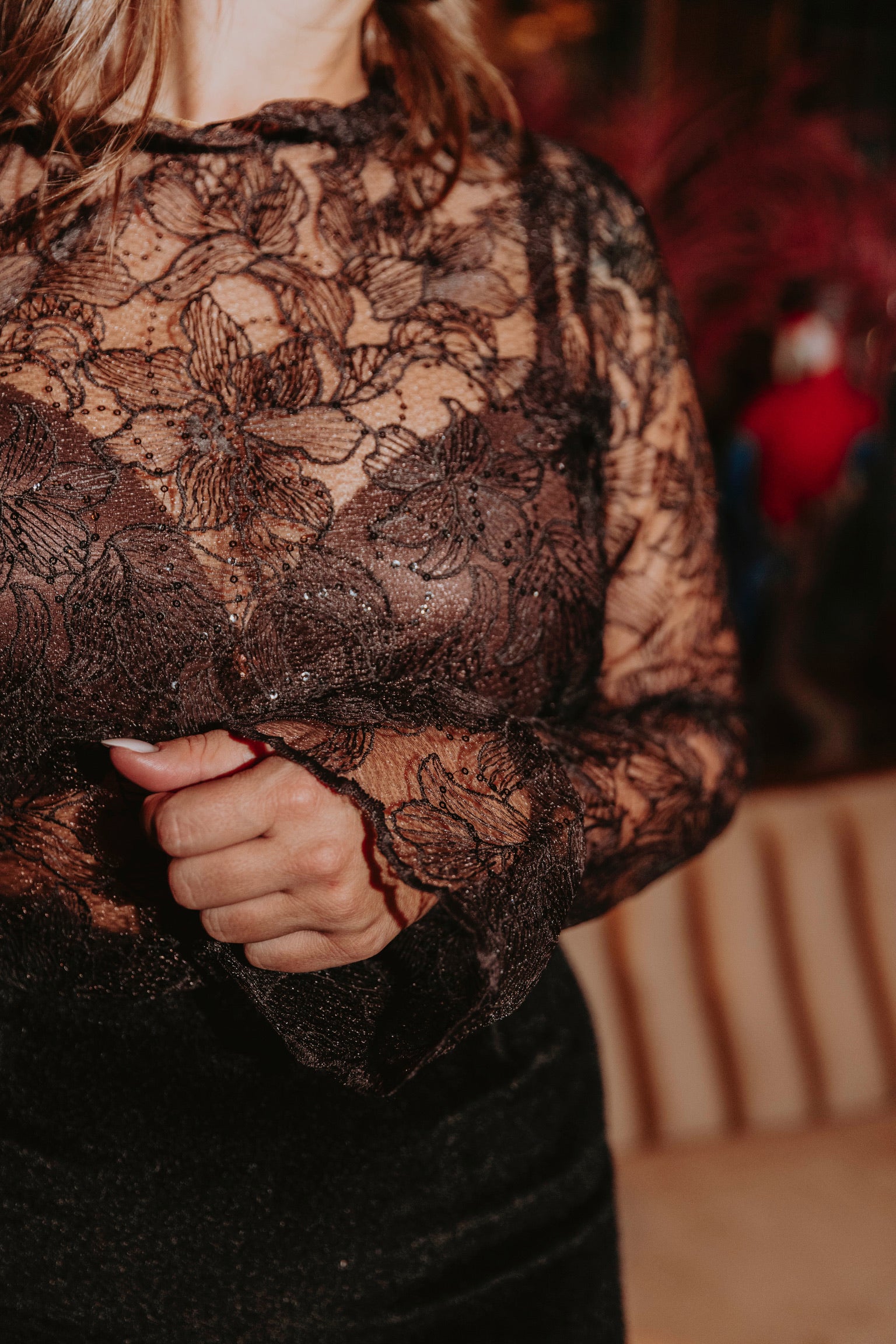 Deze blouse combineert een warme bruine tint met delicate kantdetails die zorgen voor een subtiele, feestelijke flair. Een stijlvolle keuze voor avonden waarop je elegantie en een zachte, verfijnde touch wilt uitstralen.