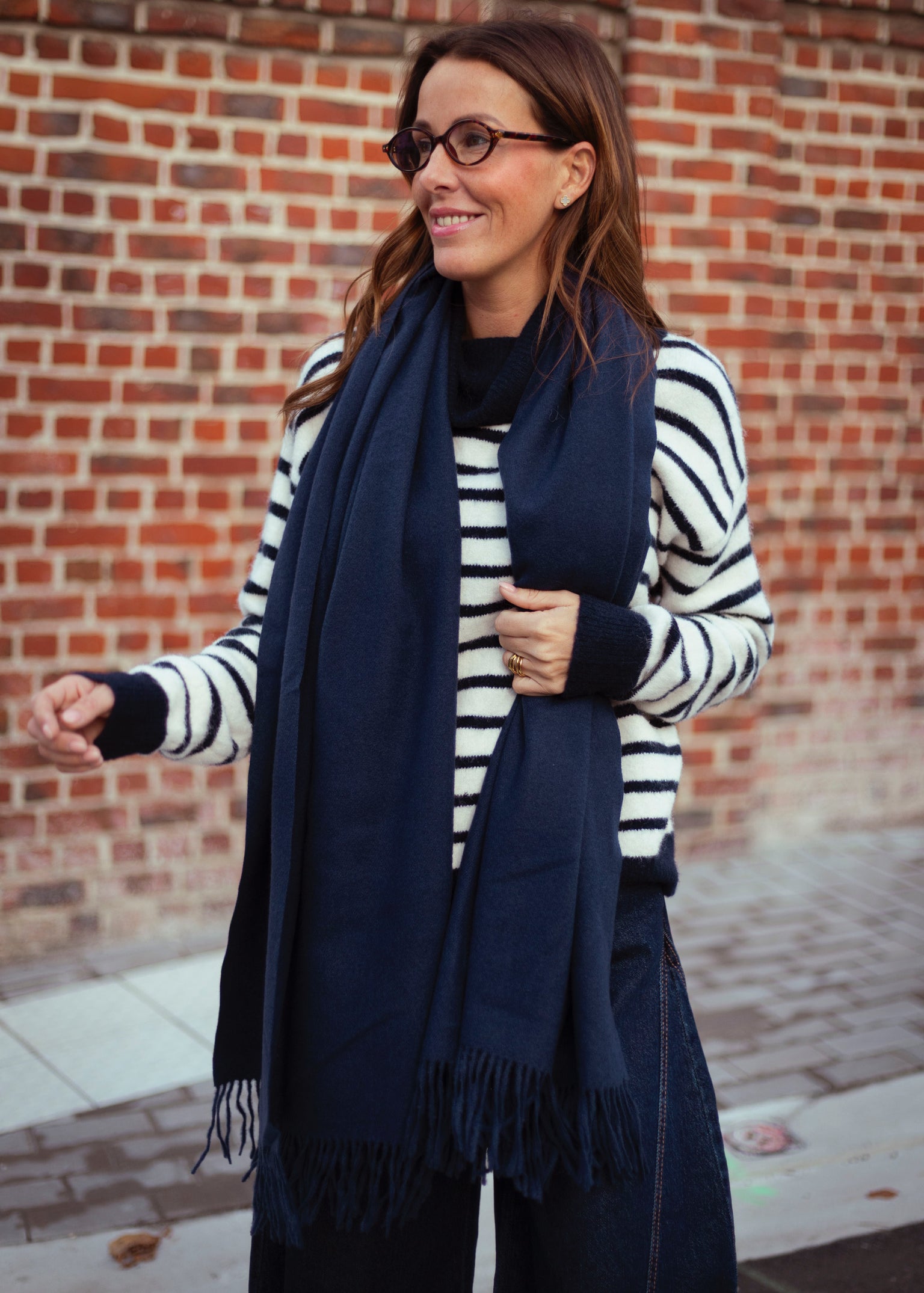 AISLING DARK BLUE STRIPED CUT-OUT SWEATER