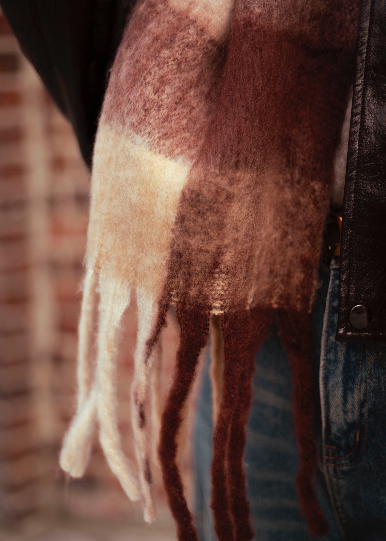 SHADOWLEAF BROWN ASYMMETRIC SATIN LACE TOP