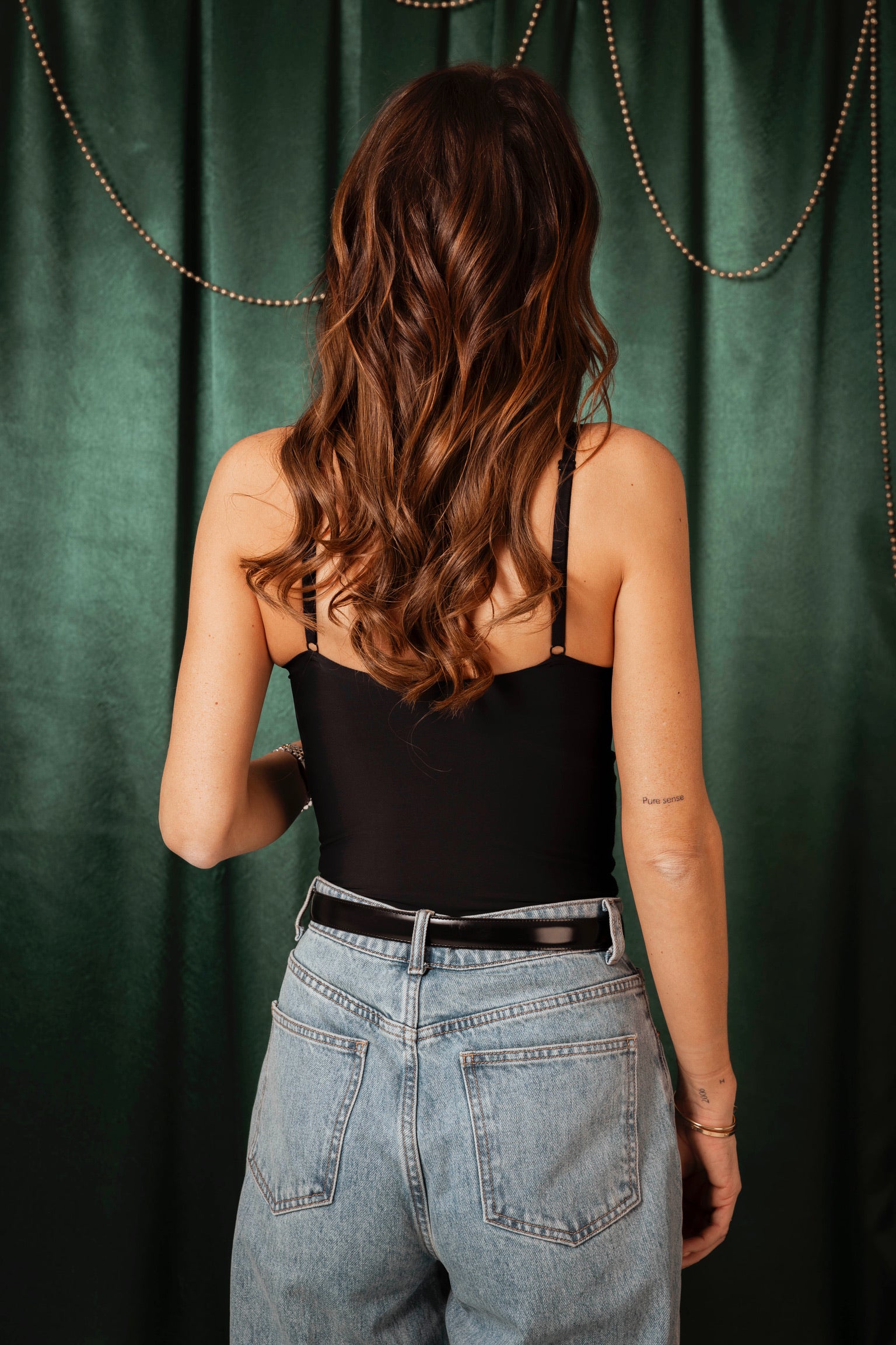 Een tijdloze klassieker die elke outfit moeiteloos afmaakt. De fijne bandjes zorgen voor een subtiel en elegant silhouet, terwijl het veelzijdige ontwerp eindeloos te combineren is. Perfect als basis voor feestelijke looks of om solo een verfijnde touch te geven.