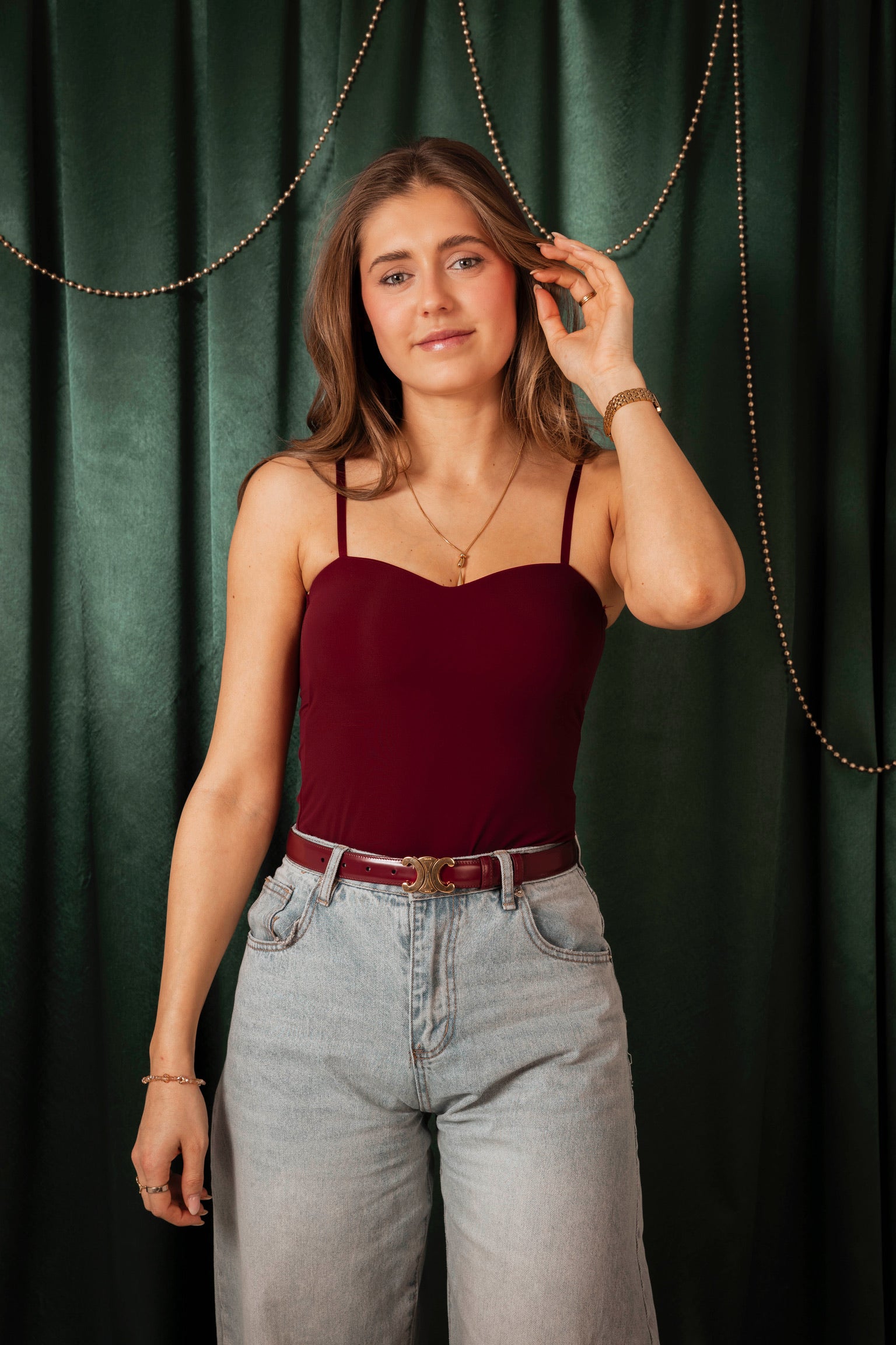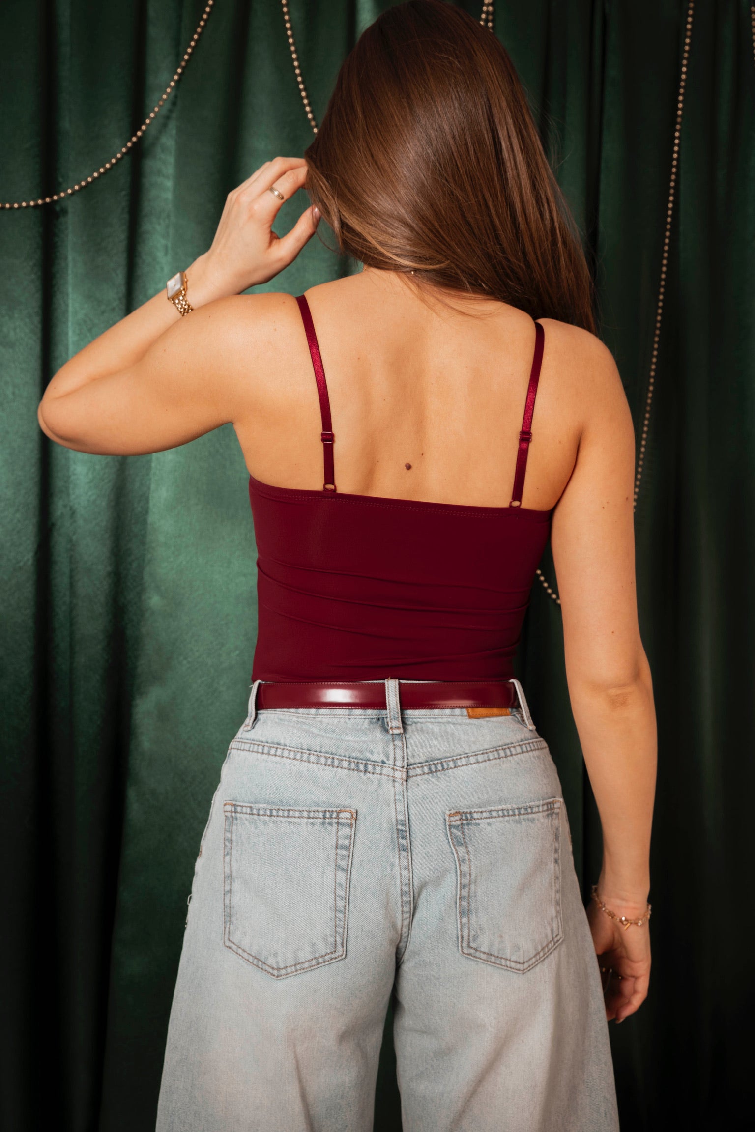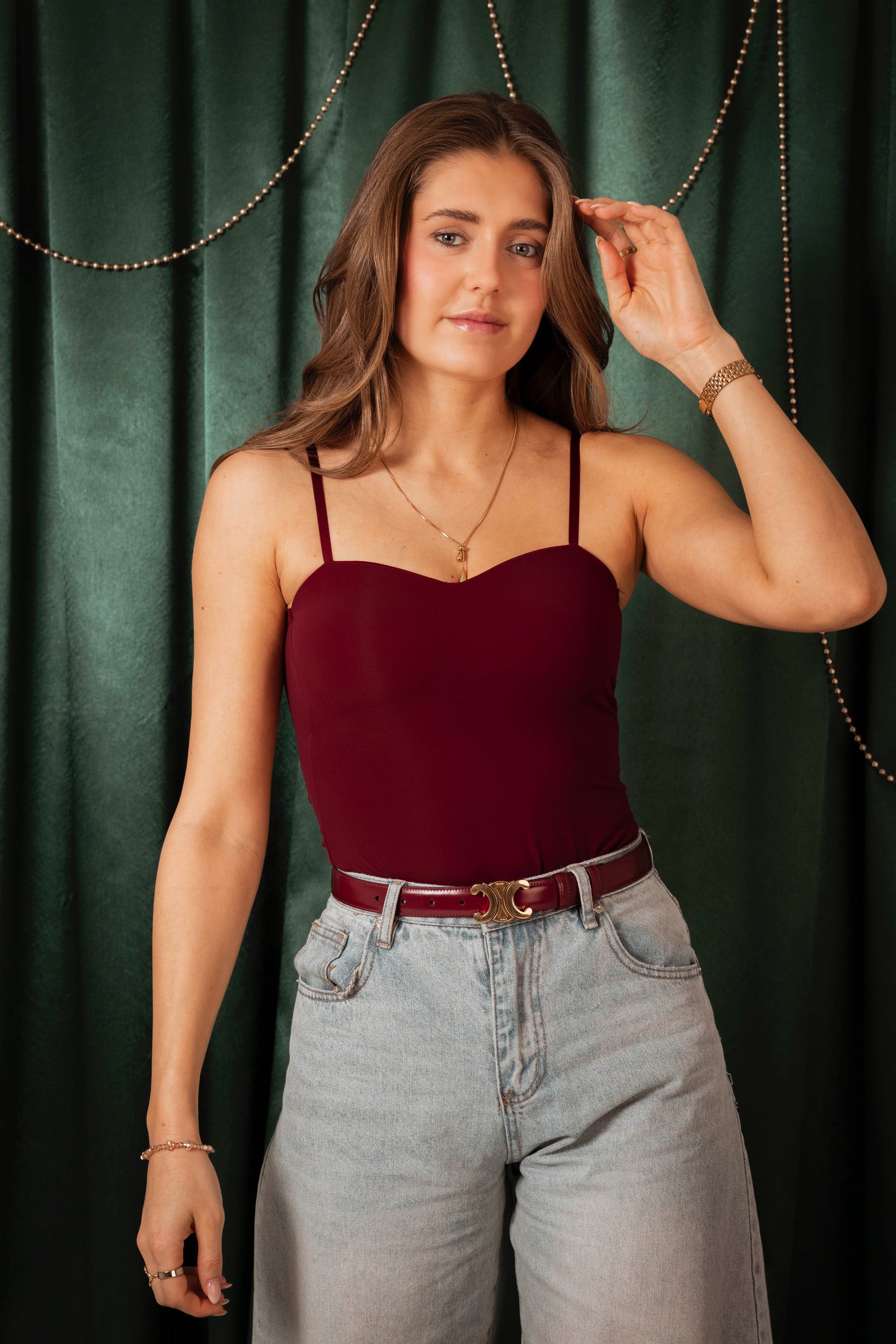 Een tijdloze klassieker die elke outfit moeiteloos afmaakt. De fijne bandjes zorgen voor een subtiel en elegant silhouet, terwijl het veelzijdige ontwerp eindeloos te combineren is. Perfect als basis voor feestelijke looks of om solo een verfijnde touch te geven.