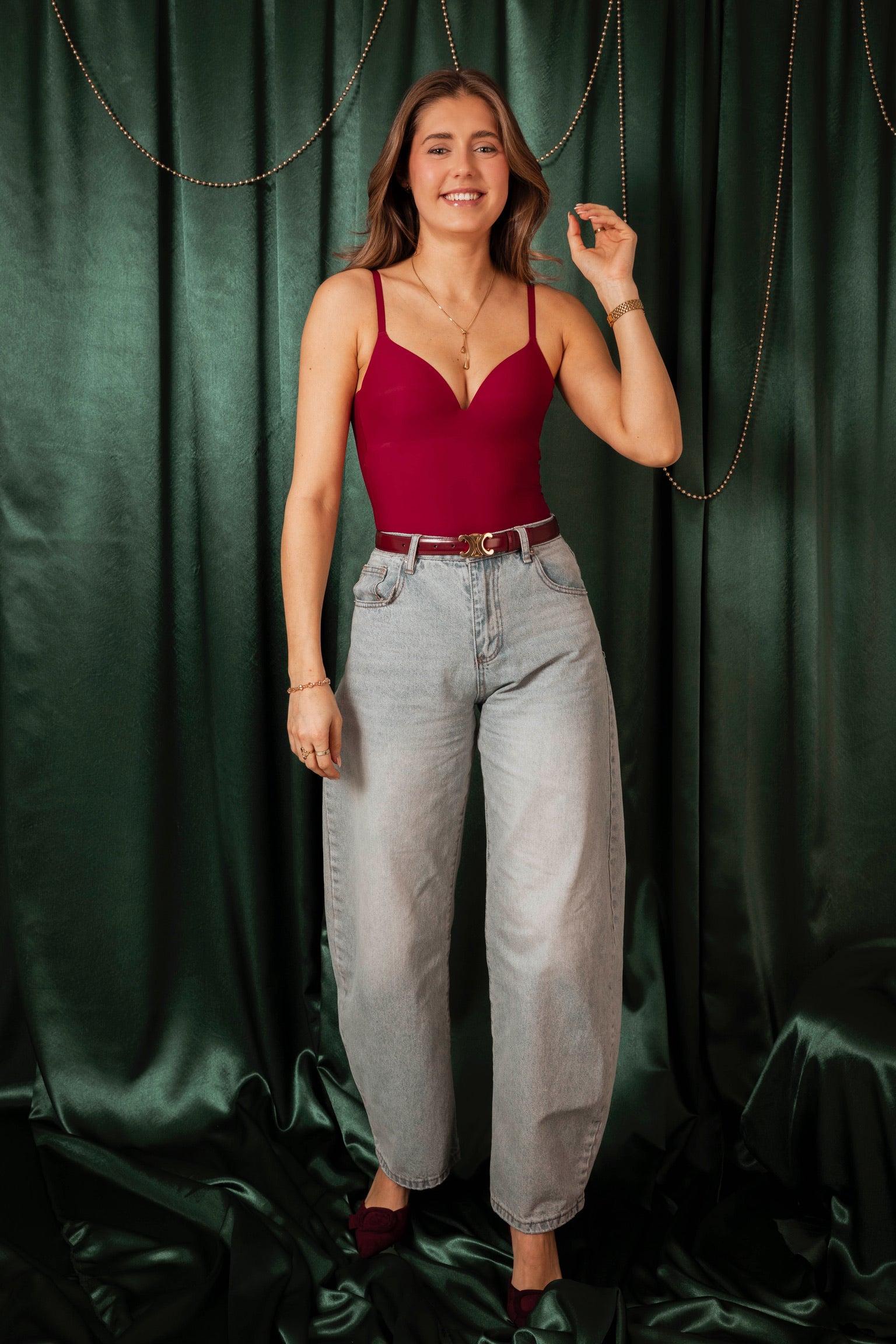 Een elegant basisstuk dat iedere feestlook moeiteloos compleet maakt. De fijne bandjes en het flatterende decolleté geven een vrouwelijke touch en zorgen voor een verfijnde pasvorm. Perfect om te combineren met glanzende rokken, blazers of voor een stijlvolle winteravondlook.