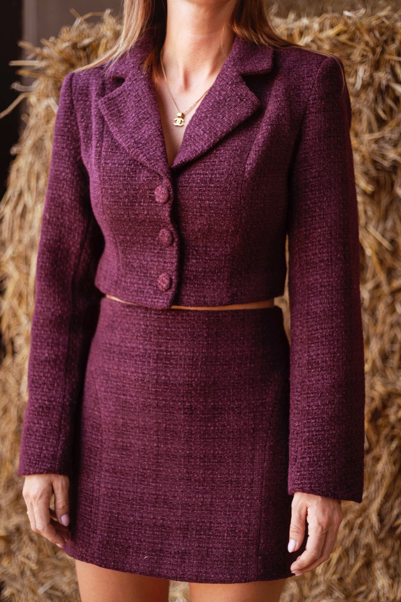 Een elegante bordeauxrode rok die moeiteloos warmte en stijl toevoegt aan je herfstgarderobe. Perfect te combineren met een bijpassend jasje of juist met een simpele trui voor een ontspannen maar chique uitstraling.