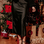 IT'S THE BEST TIME OF THE YEAR BLACK SATIN RHINESTONE SKIRT