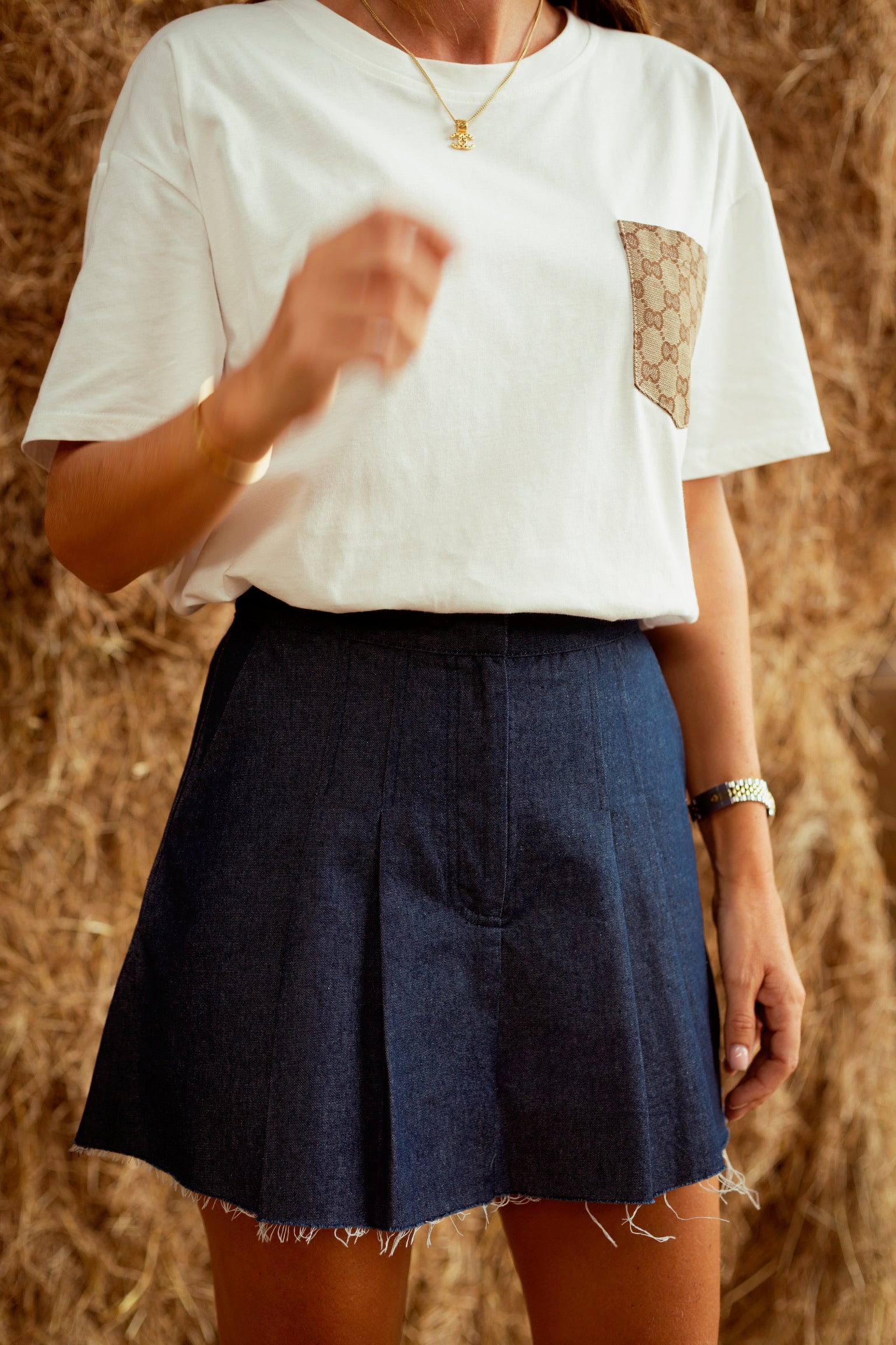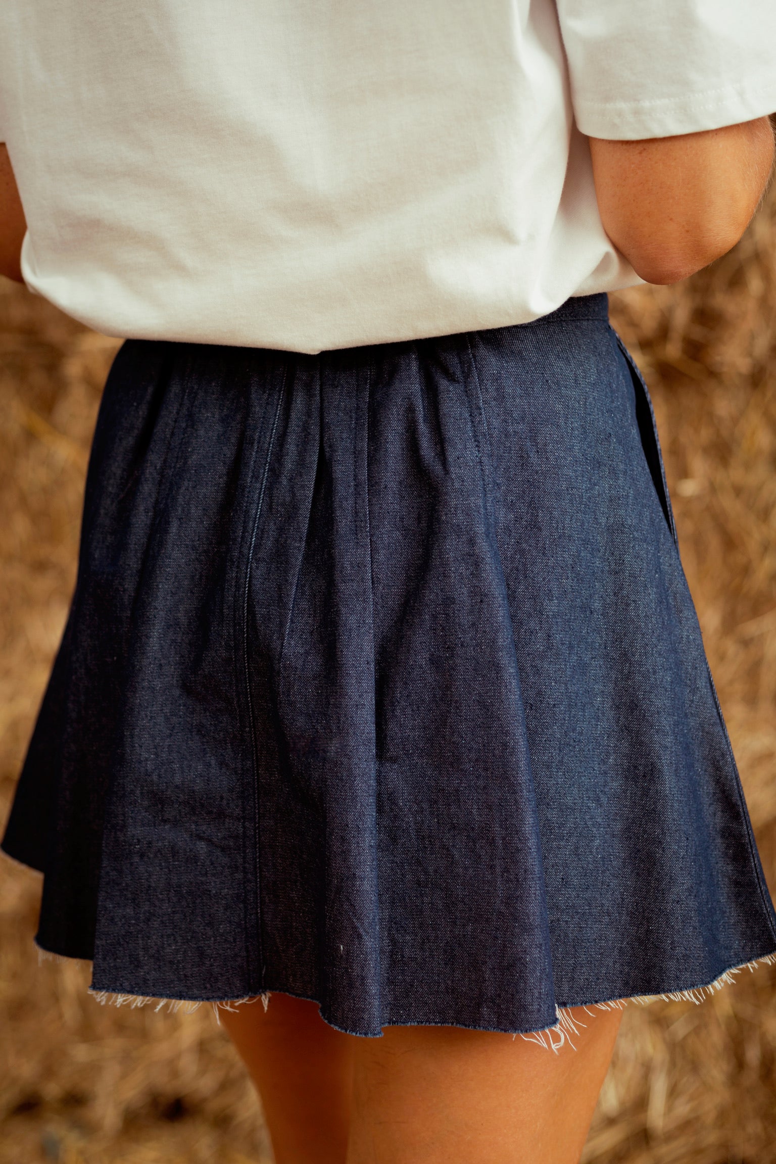 Een echte musthave voor het tussenseizoen, met de look van een rok en het comfort van een short. Gemaakt uit stevige denim en perfect om te combineren met sweaters, laarsjes of een blazer voor een speelse herfstlook. Tijdloos en eindeloos combineerbaar.