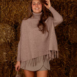 Deze taupe skort met knopen is een veelzijdige toevoeging aan je herfstgarderobe. Comfortabel en stijlvol tegelijk, makkelijk te combineren met truien en laarzen voor een warme, casual look.