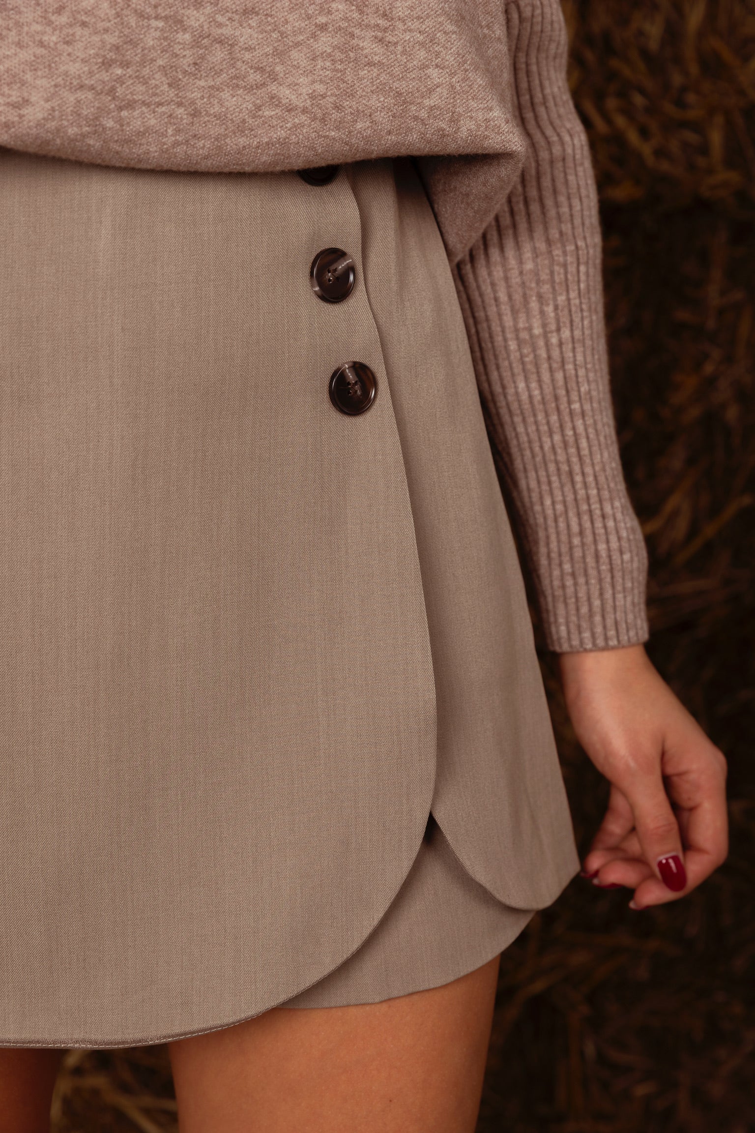 VIXIE TAUPE BUTTON SKORT – Boetiek Pure Sense