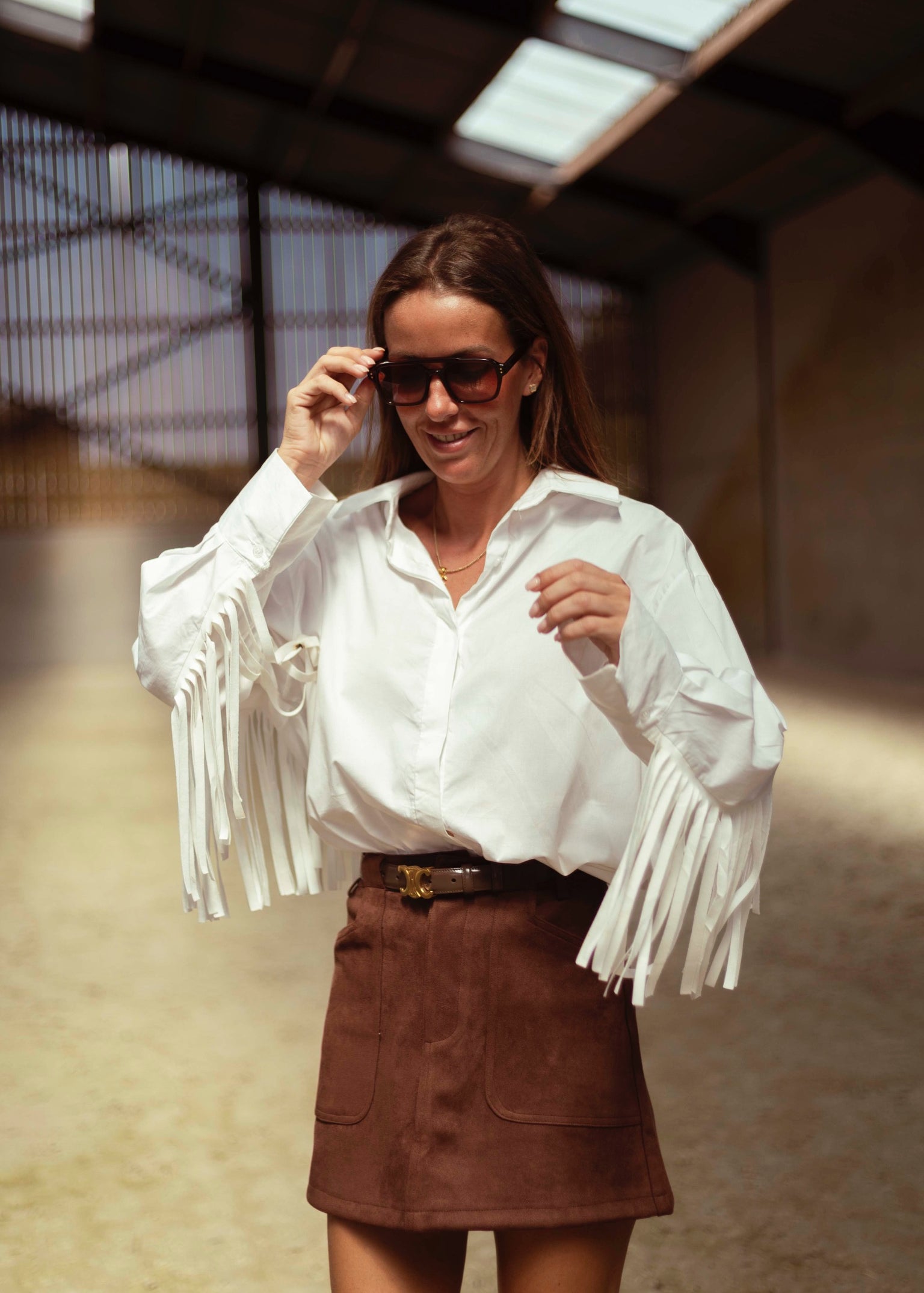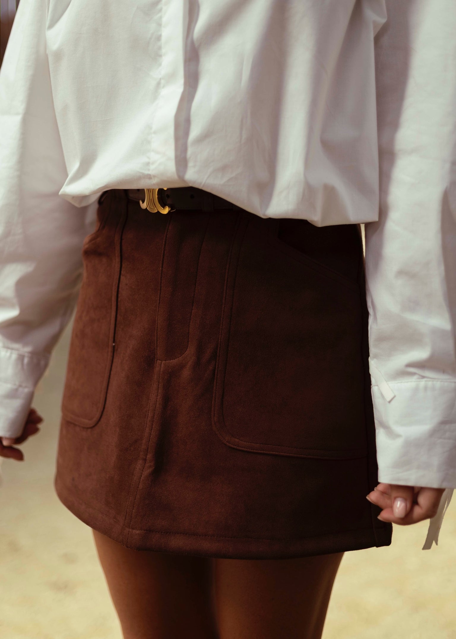 MIRANDA BROWN SUEDE PLISSE SKIRT