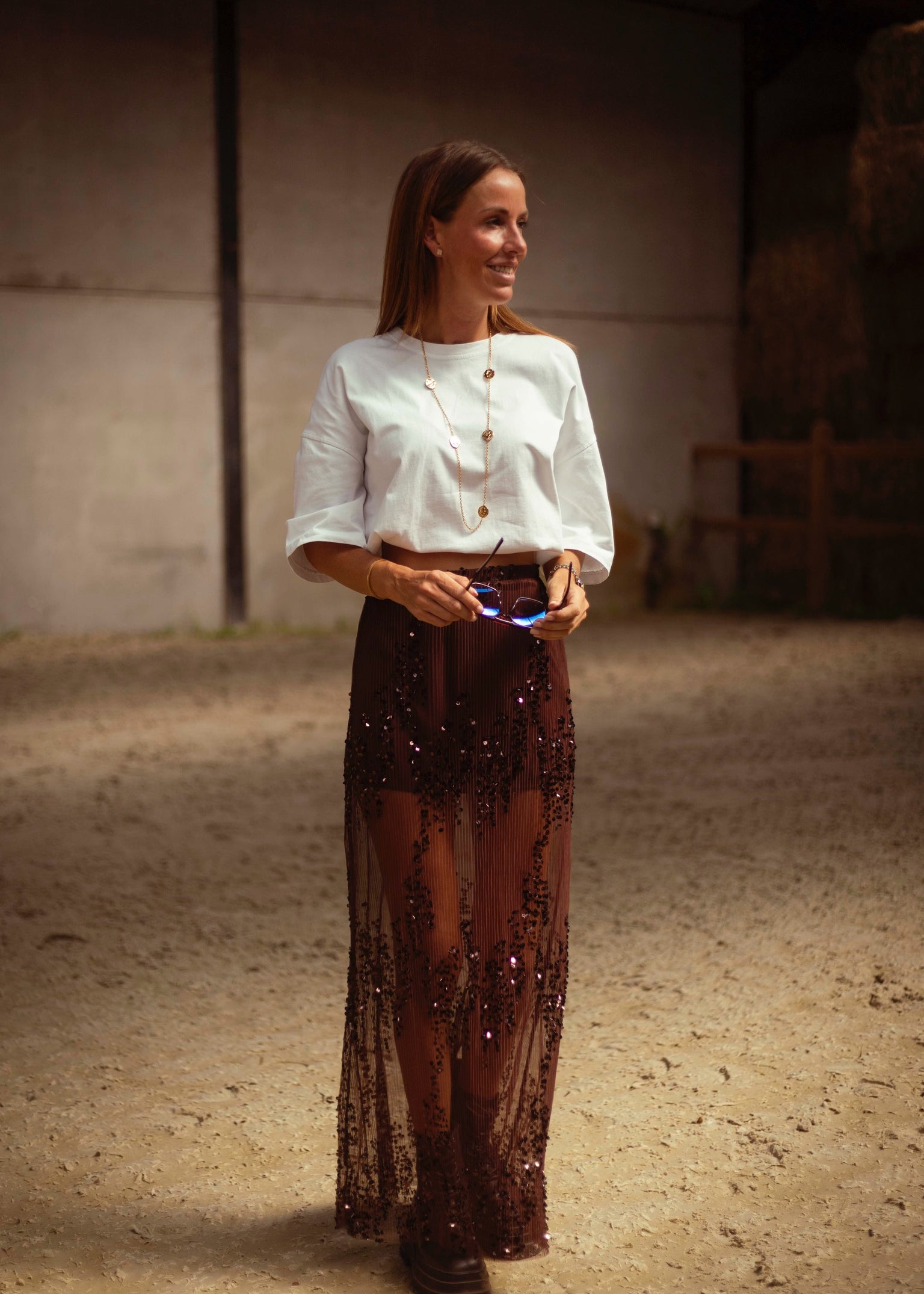 TERRA CAMEL BROWN CHECKERED SKIRT