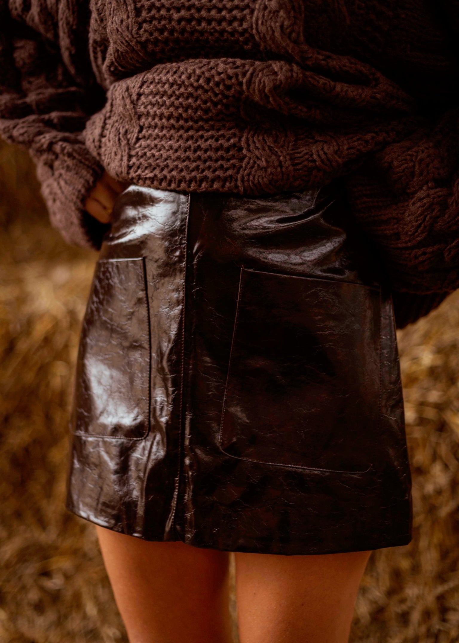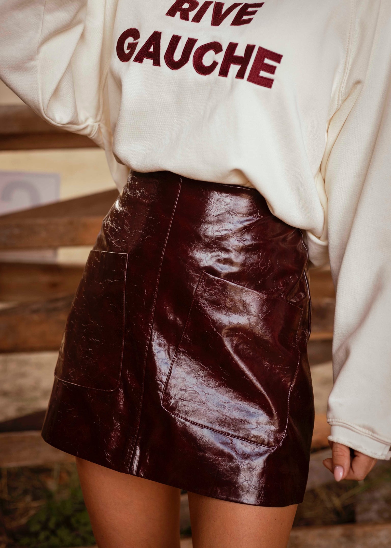 ROWENA BURGUNDY SHINY LEATHER SKIRT