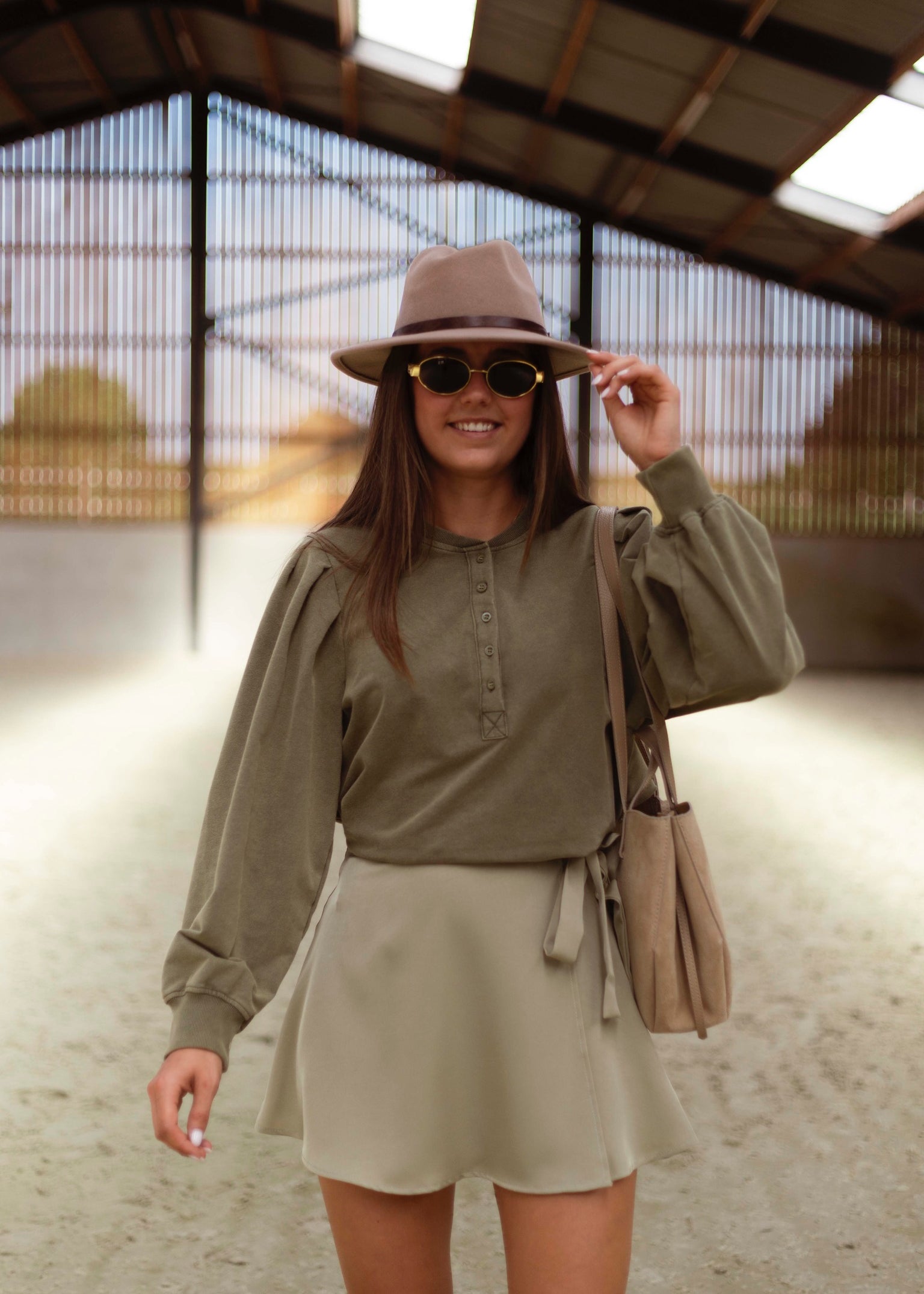 HARLOW KHAKI/BROWN PRINT SKIRT