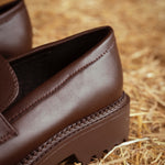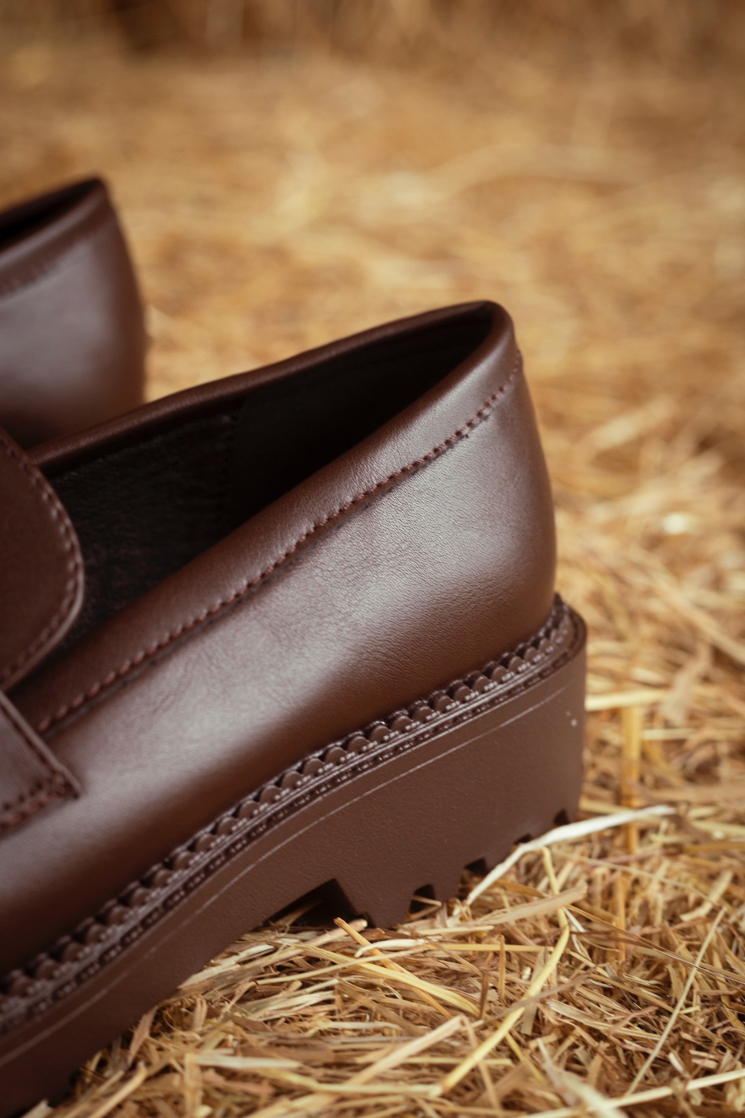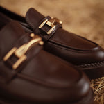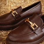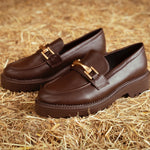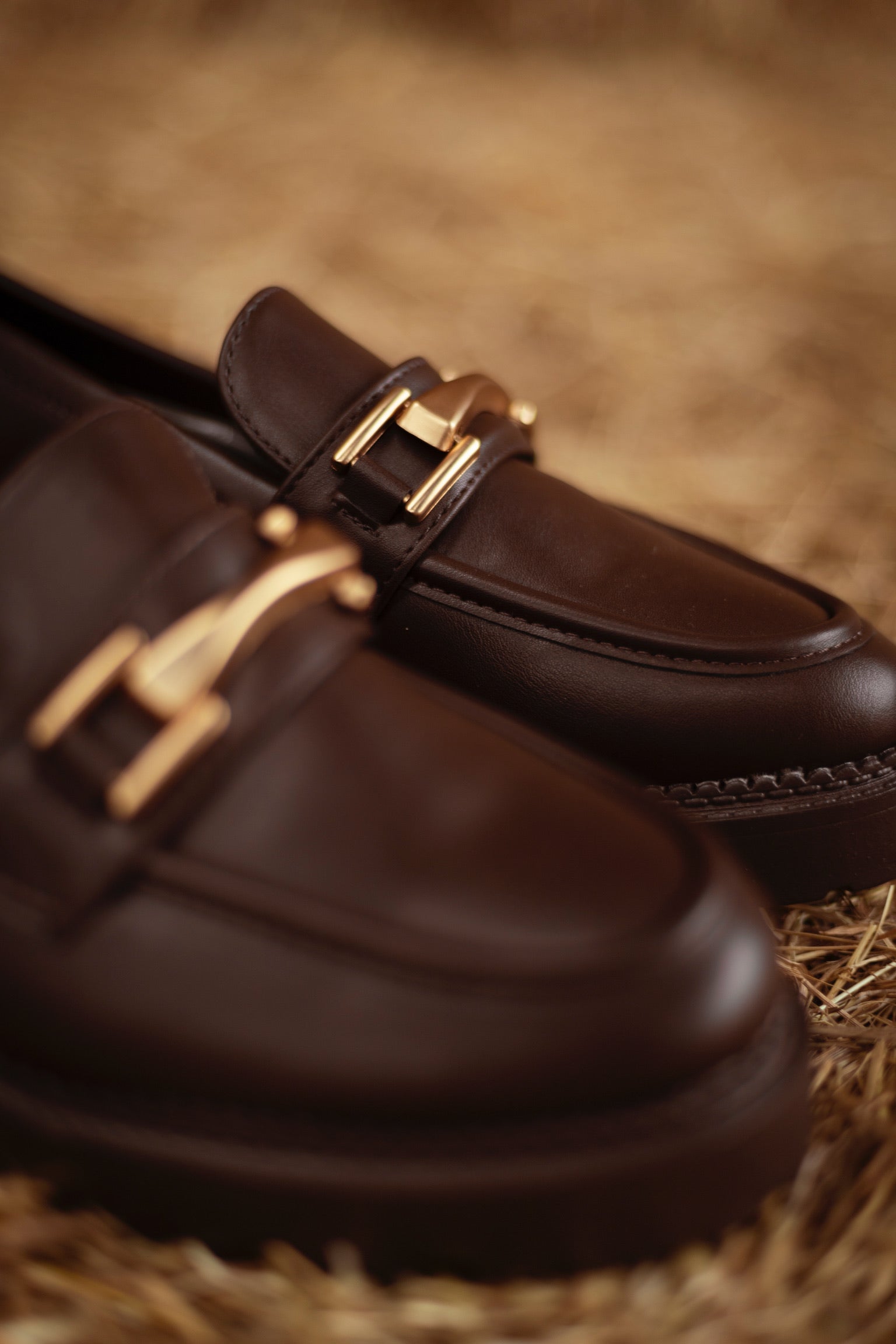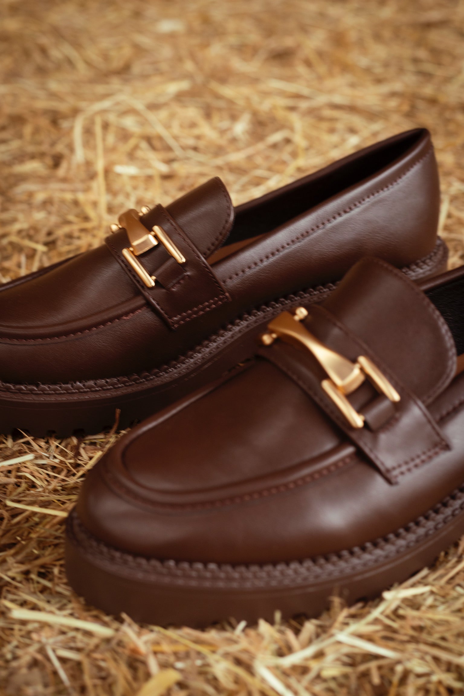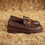 Deze elegante loafers combineren comfort en klasse met een subtiel gouden detail op de wreef. De warme tint en verfijnde afwerking maken ze perfect voor het najaar, of je ze nu onder een jeans of een geklede broek draagt. Tijdloos, stijlvol en ideaal voor elke dag.