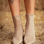 NADINE BEIGE SUEDE CAT HEEL BOOTS