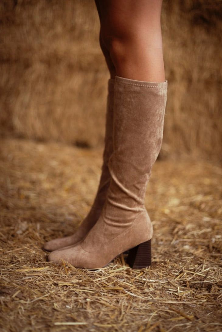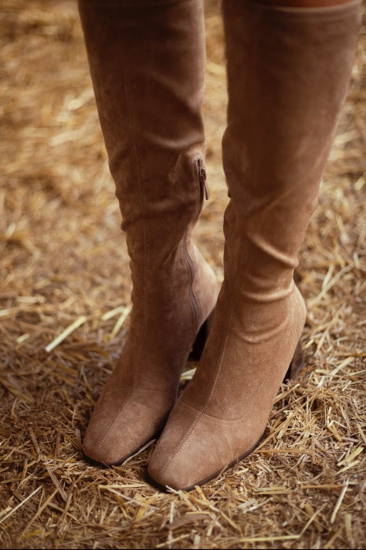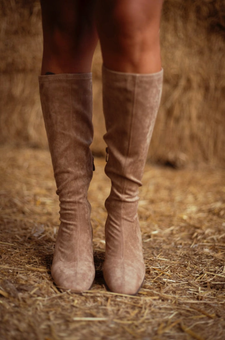 REBECCA BEIGE SUEDE HEEL BOOTS – Boetiek Pure Sense