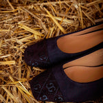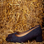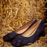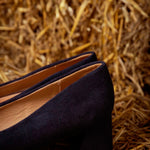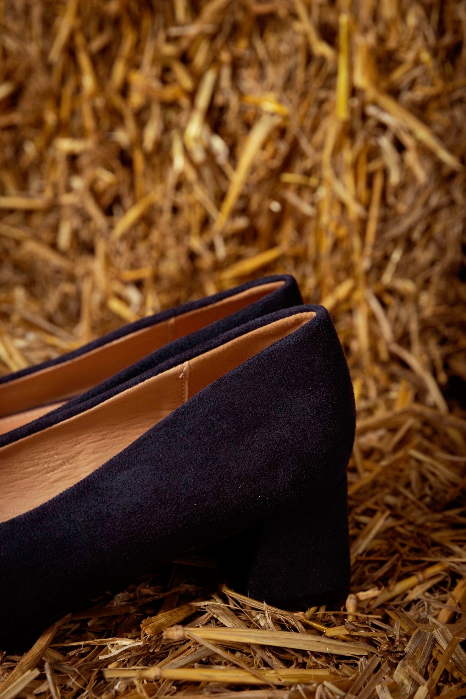 Een elegante schoen die de sierlijkheid van een ballerina vangt, maar met de verfijning van een hak. De diepe blauwe tint geeft een stijlvolle touch aan elke herfstoutfit, perfect voor momenten waarop je zowel comfort als klasse wilt uitstralen.