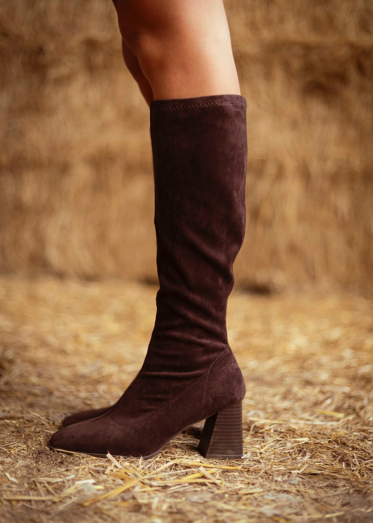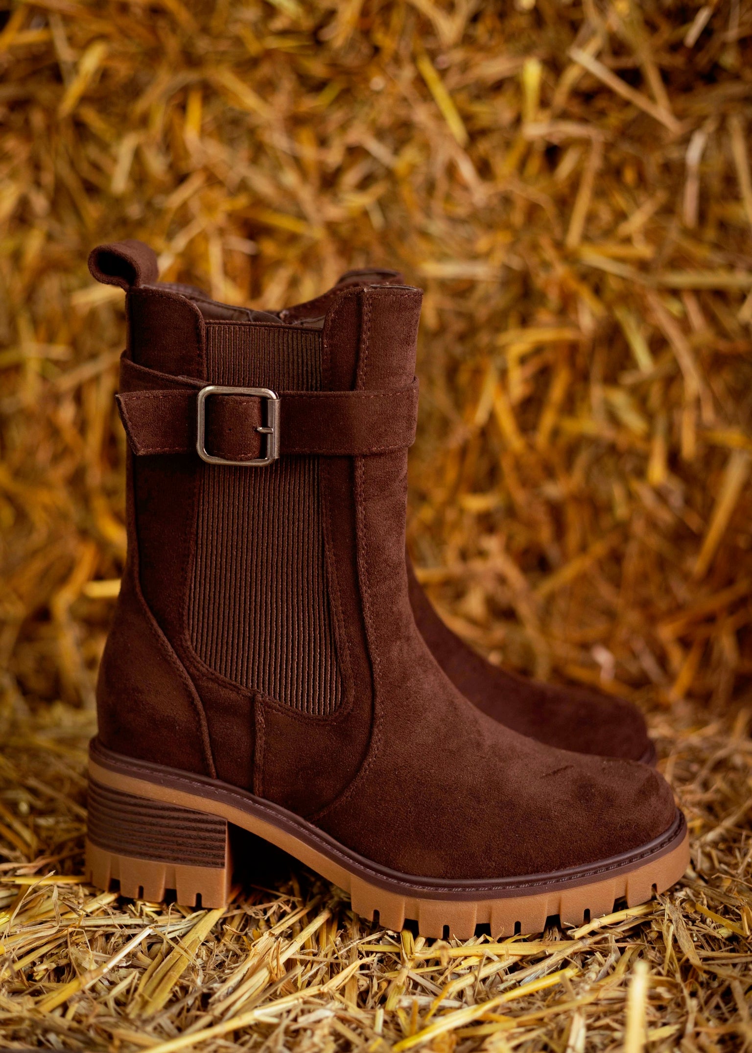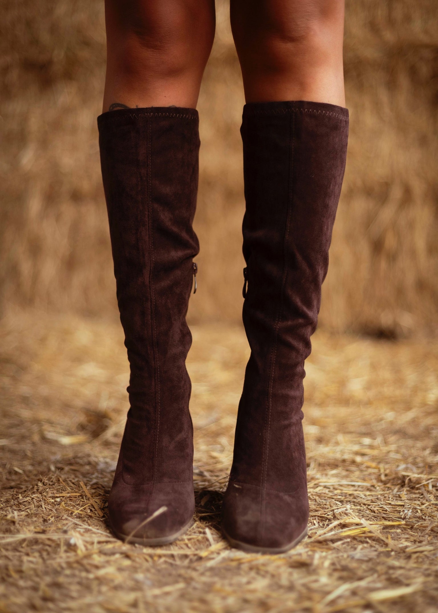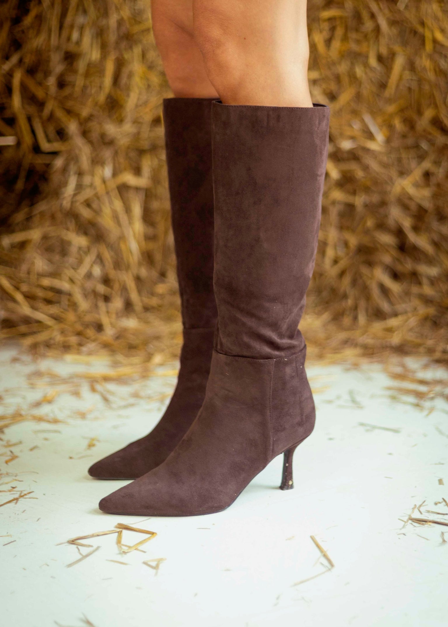 THORNFIELD BROWN SUEDE HEEL BOOTS