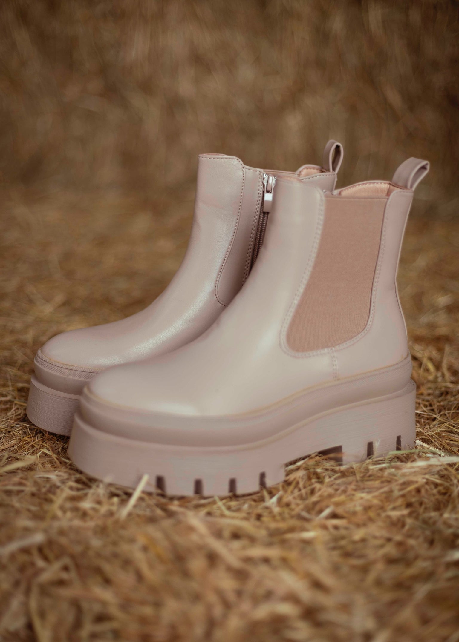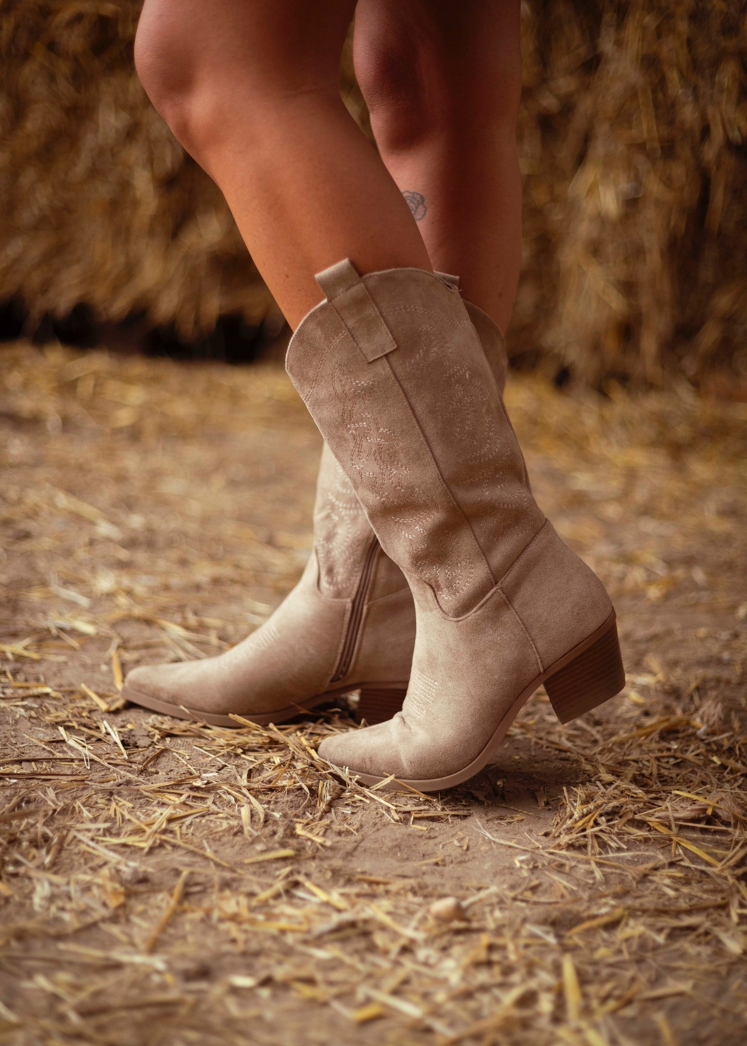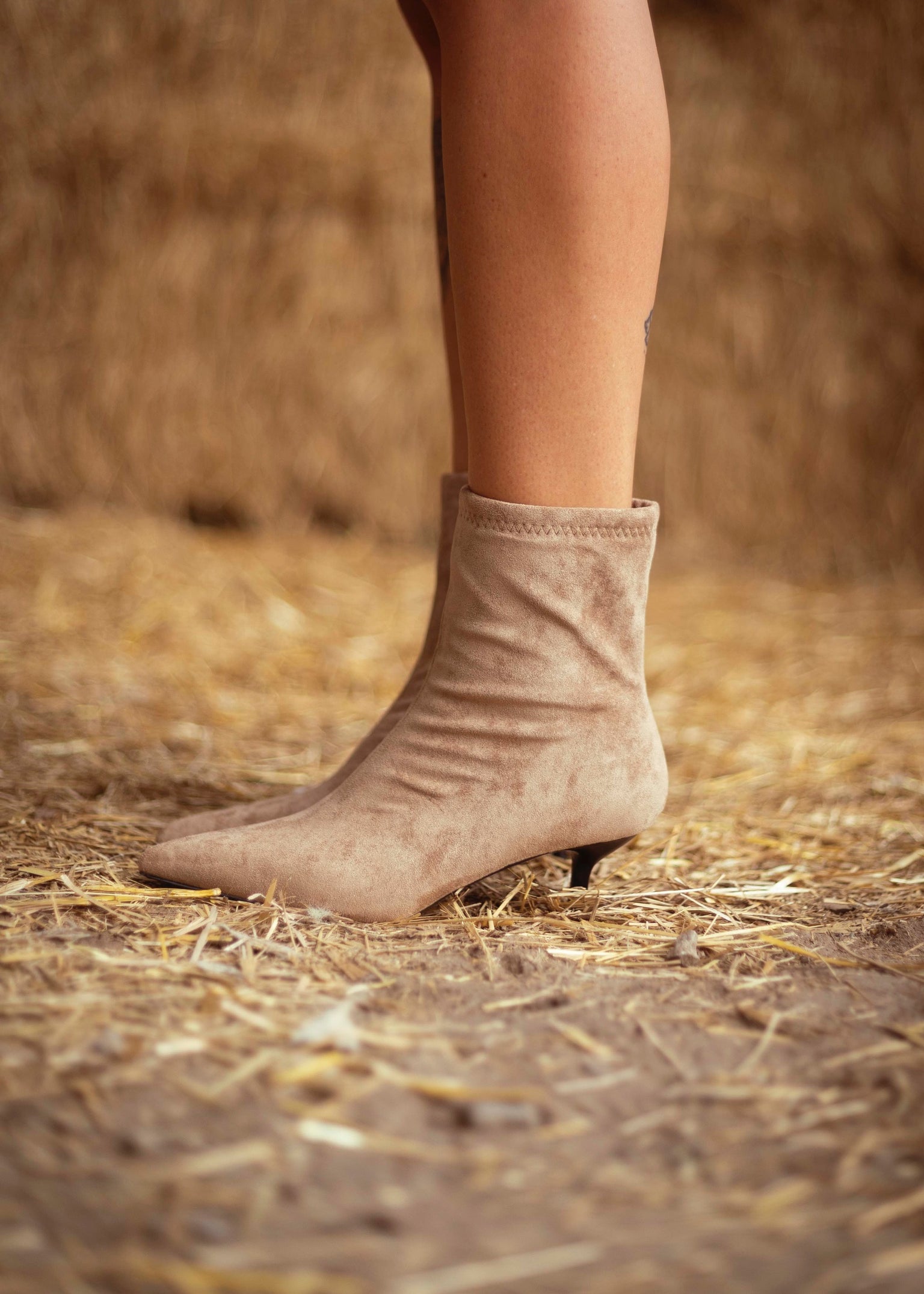 NADINE BEIGE SUEDE CAT HEEL BOOTS