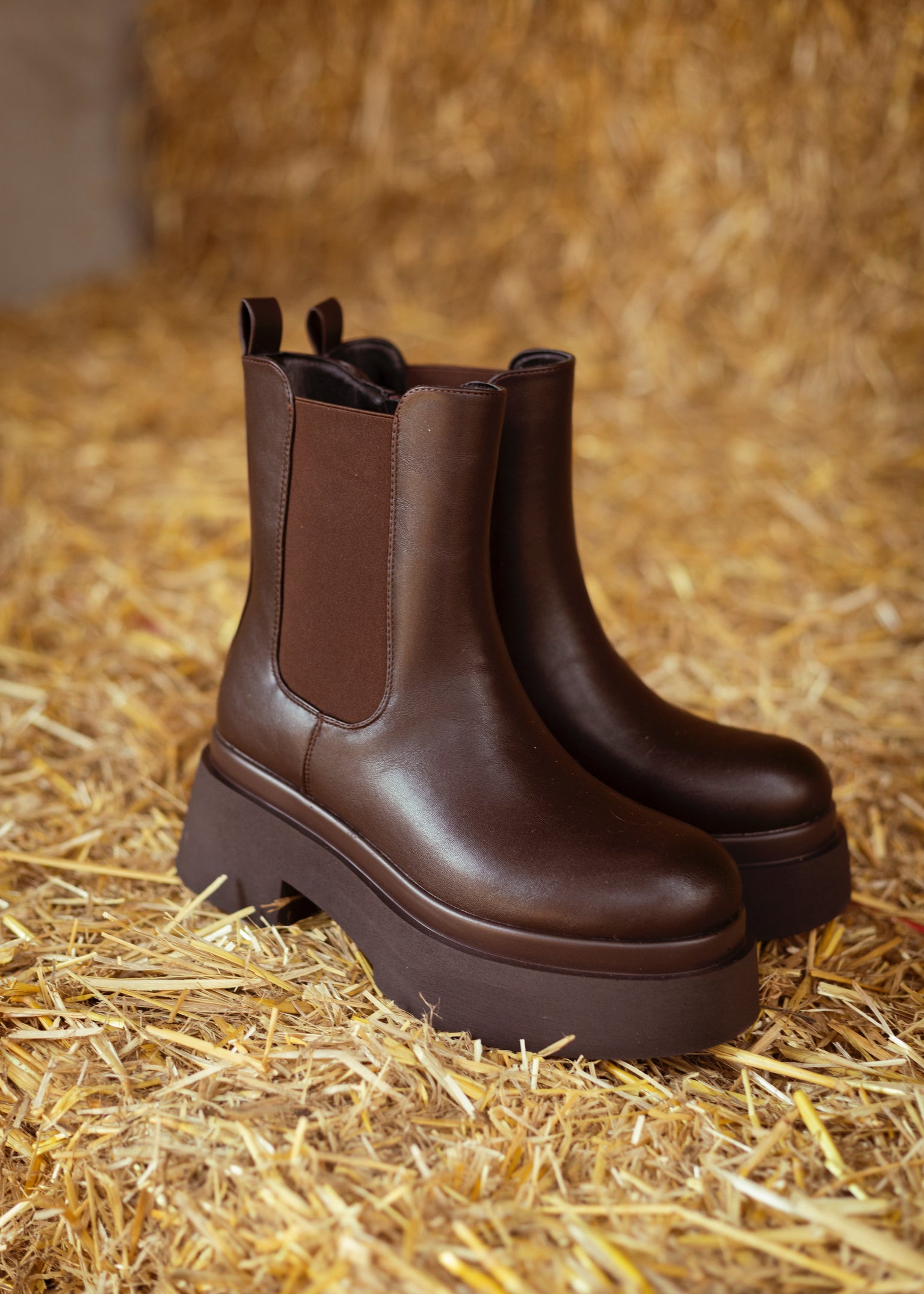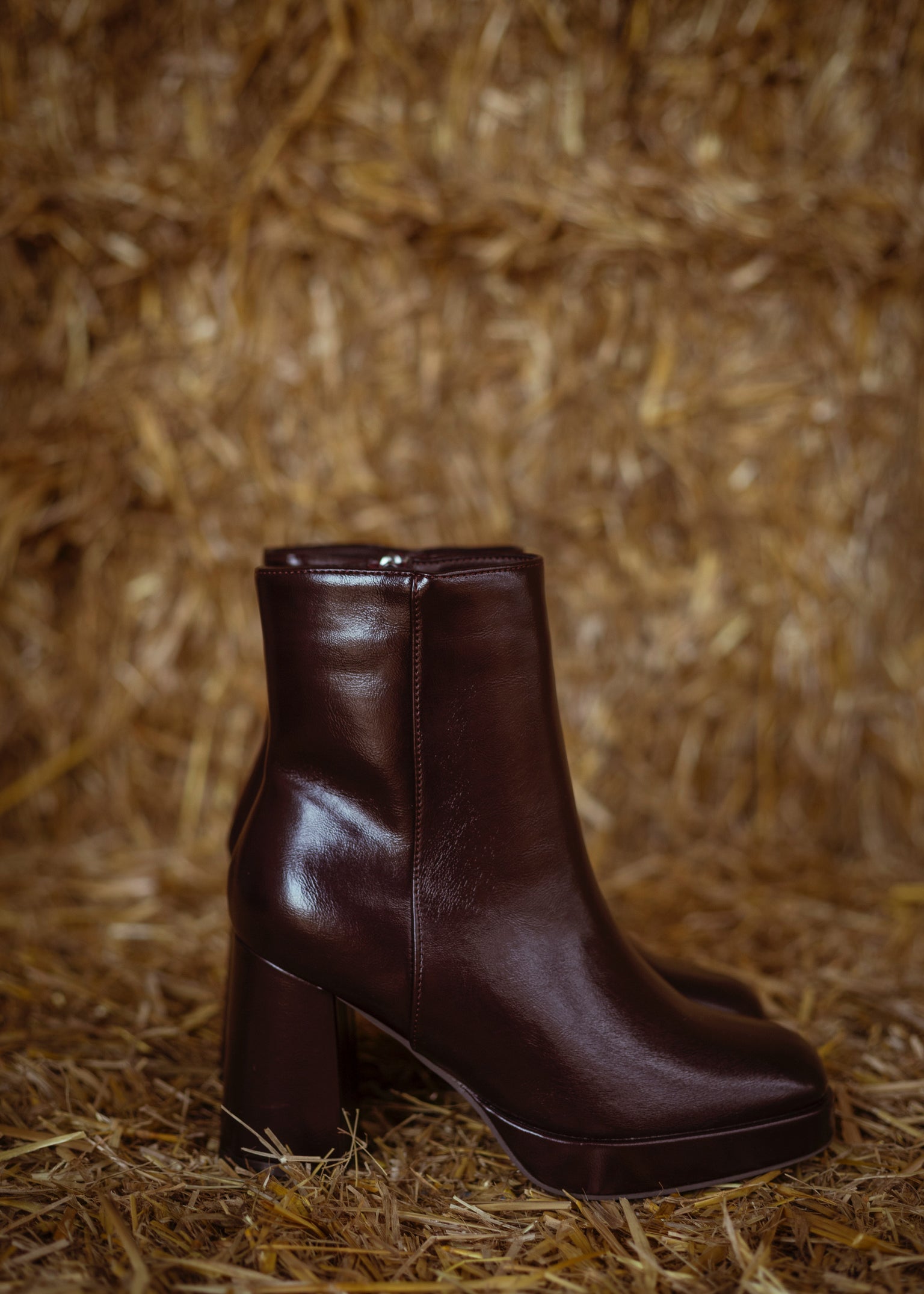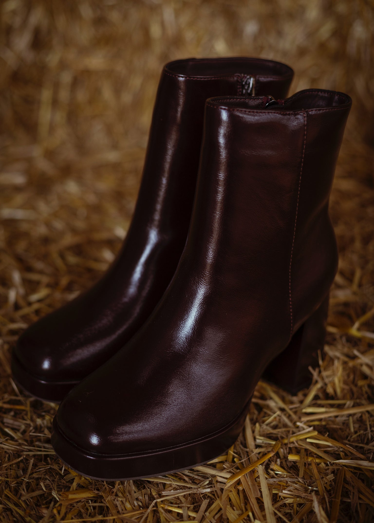STELLA BROWN SHINY LEATHER HEEL BOOTS
