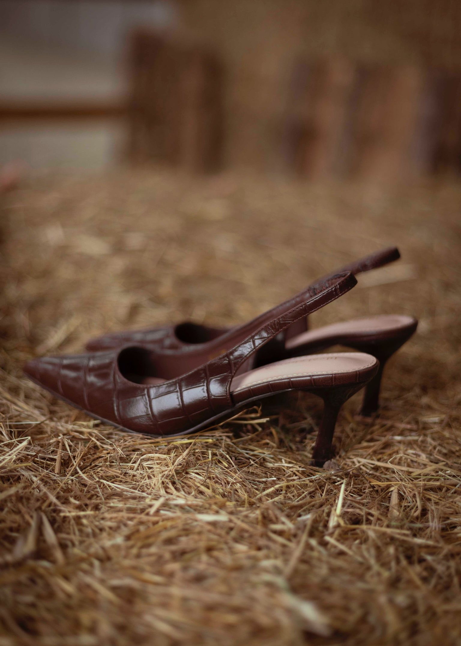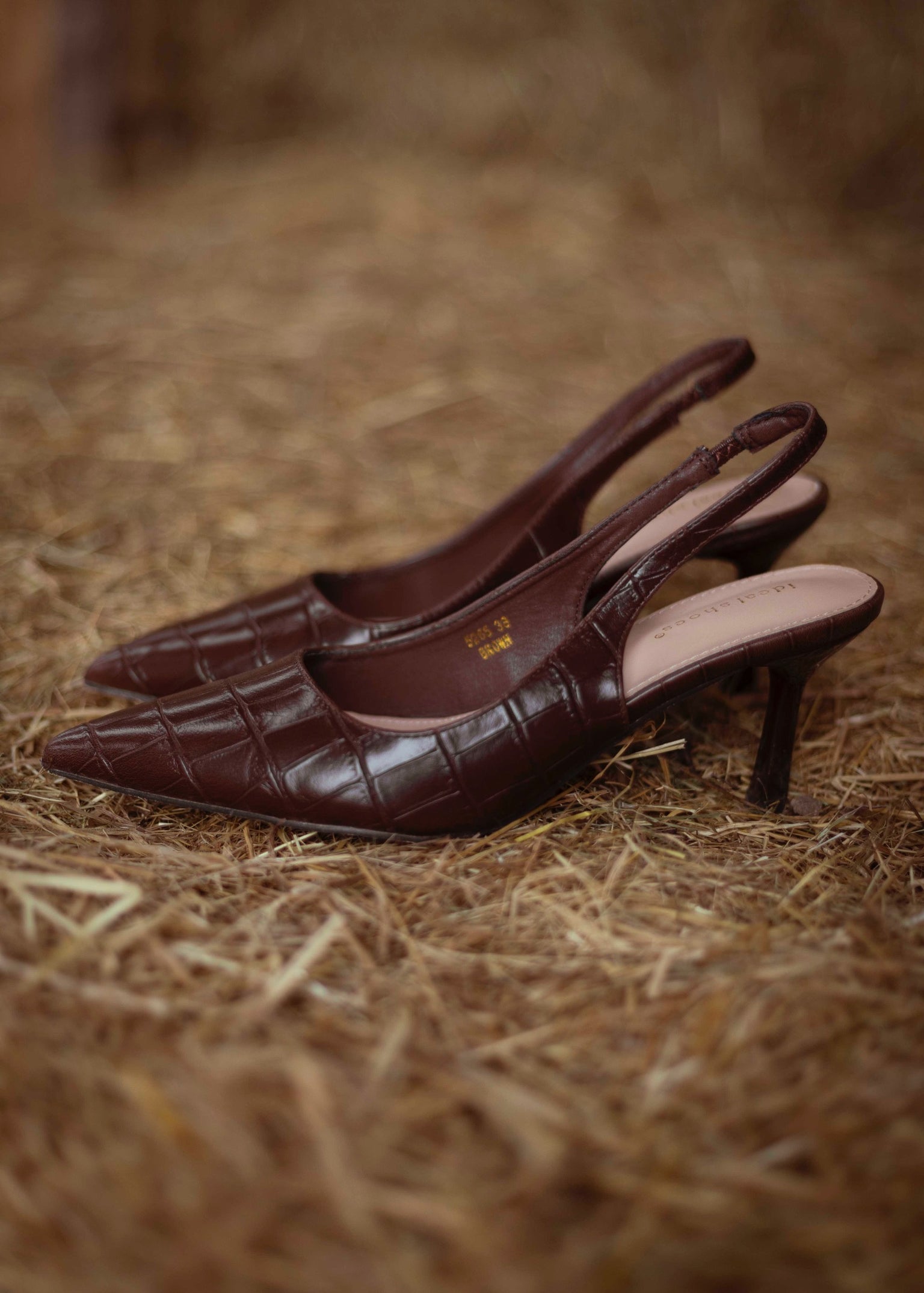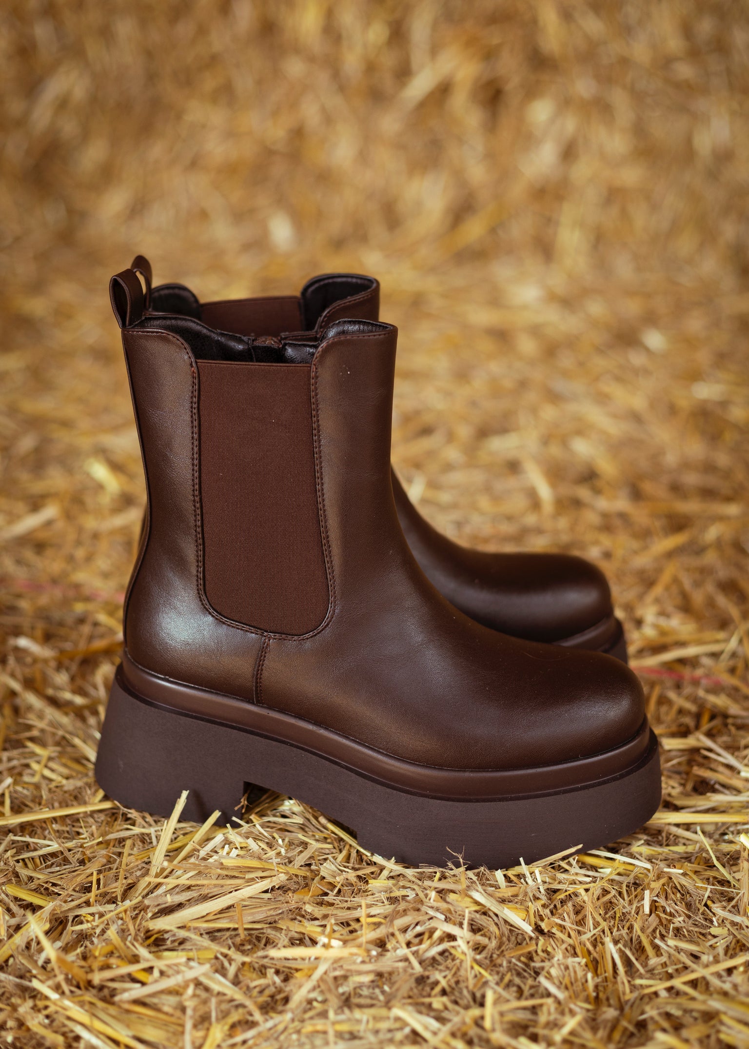 STELLA BROWN SHINY LEATHER HEEL BOOTS