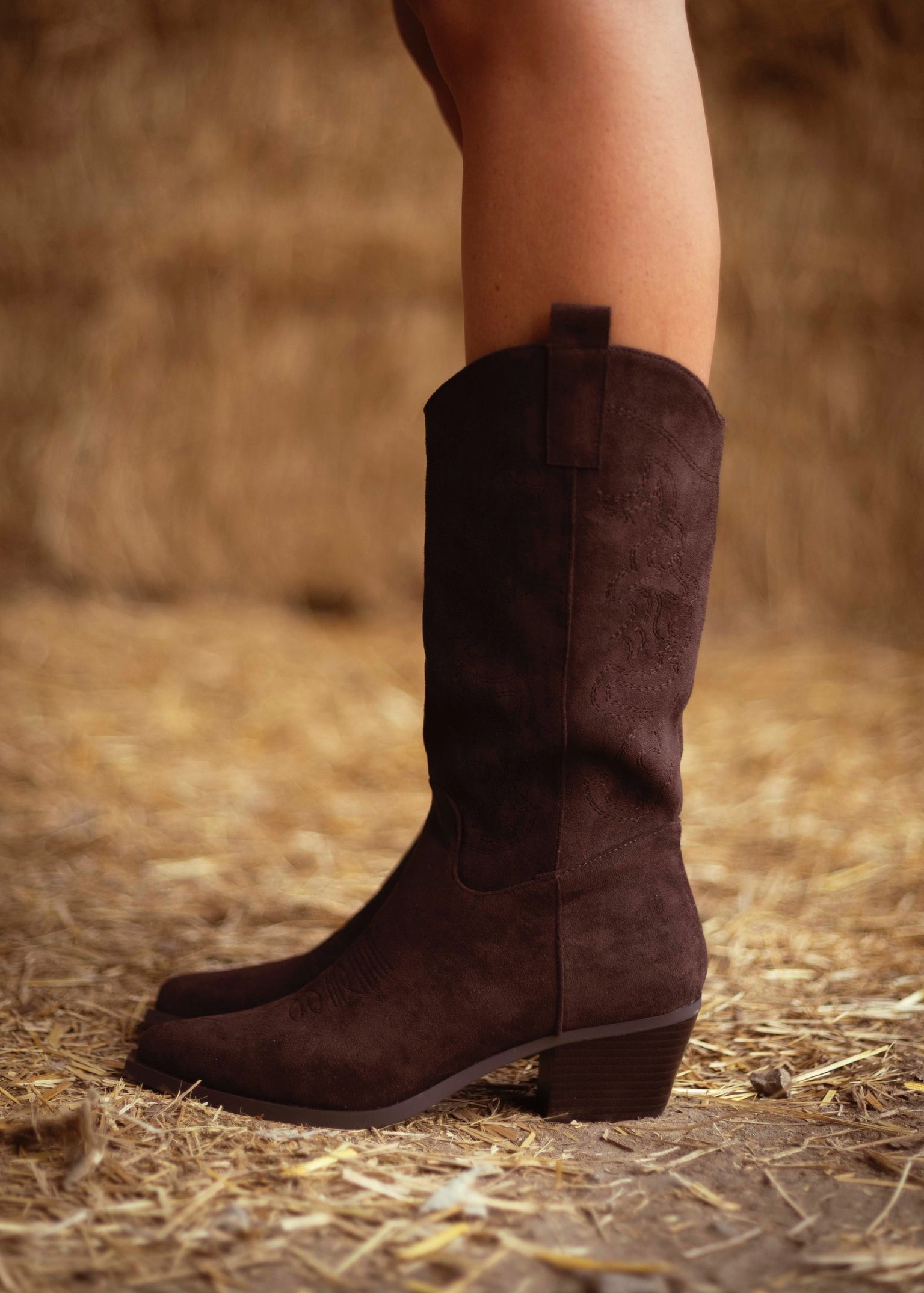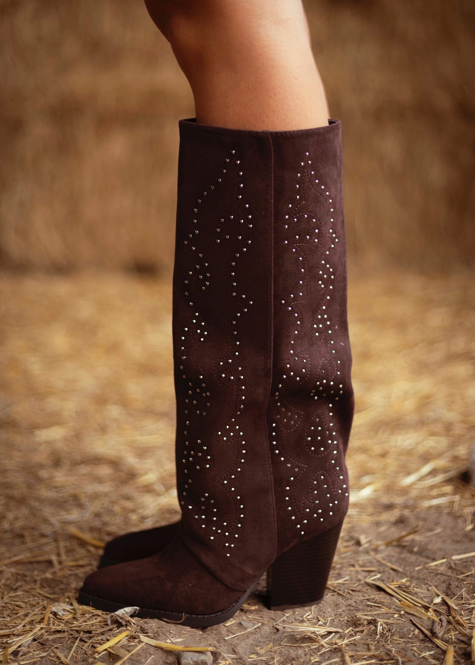 PRISCILLA BROWN STUDS COWBOY BOOTS