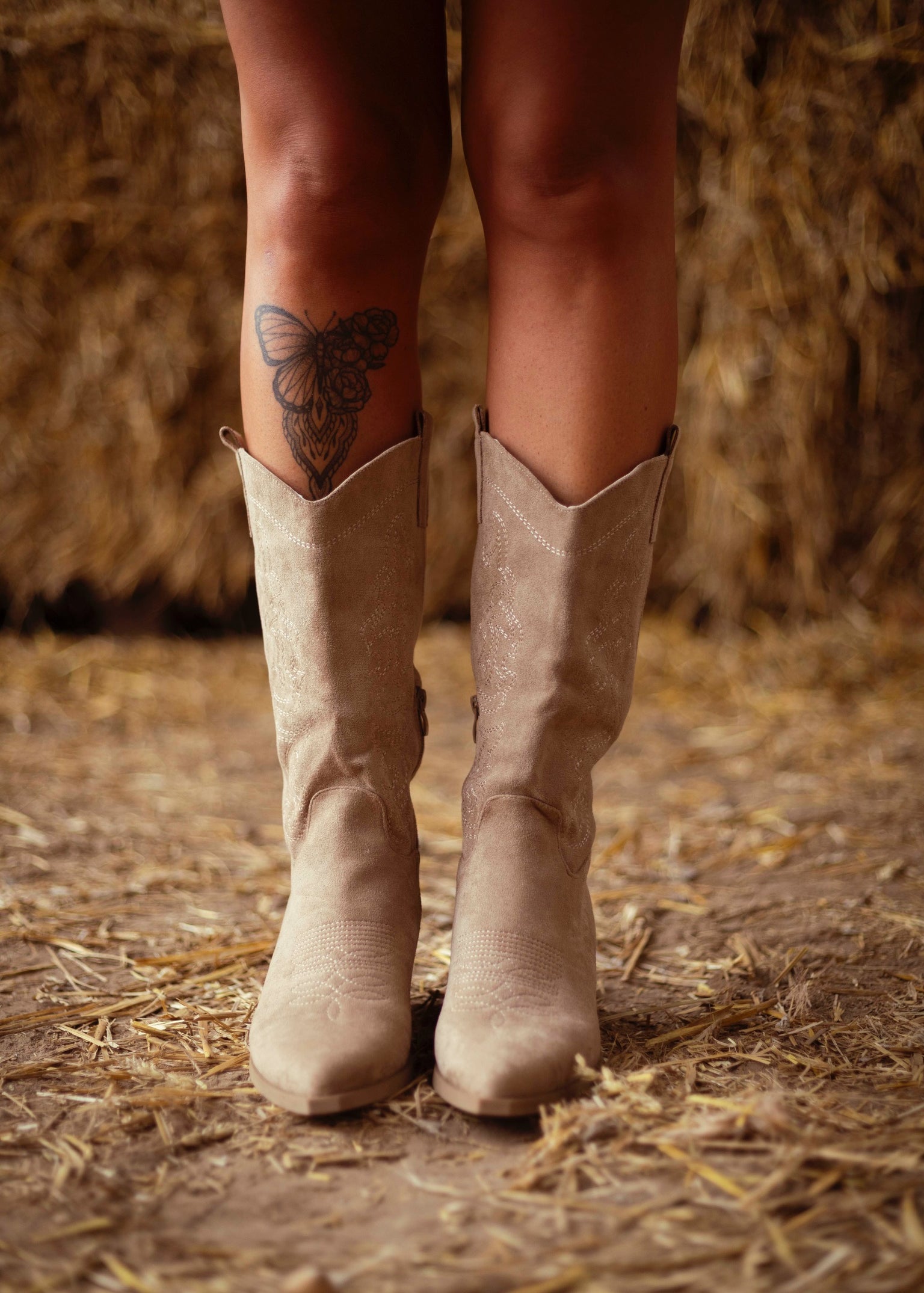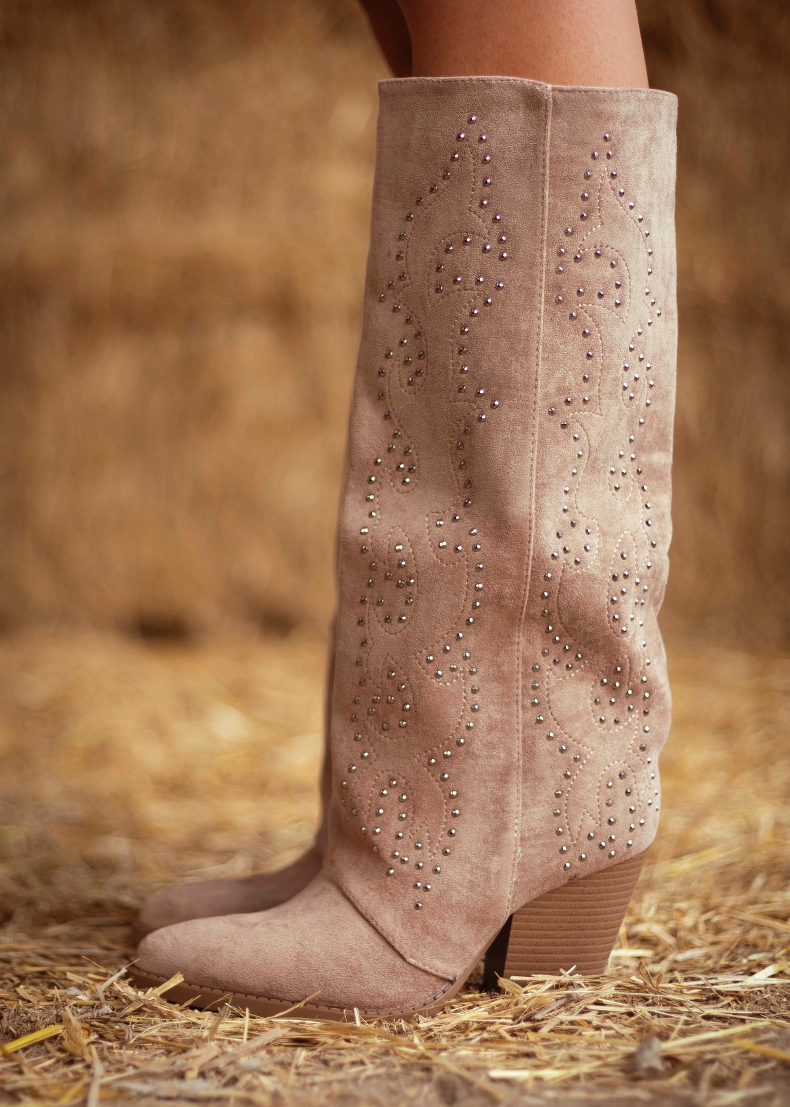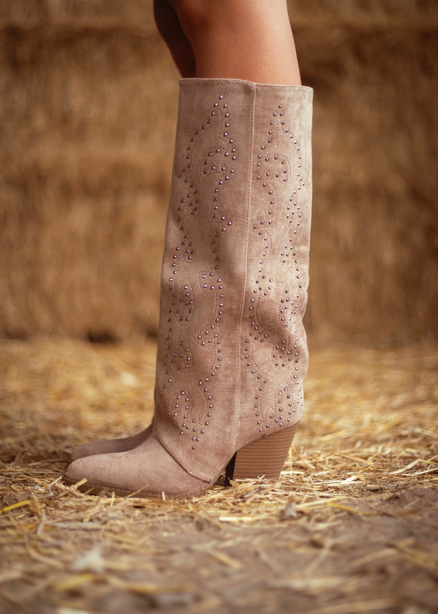 PRISCILLA BEIGE STUDS COWBOY BOOTS