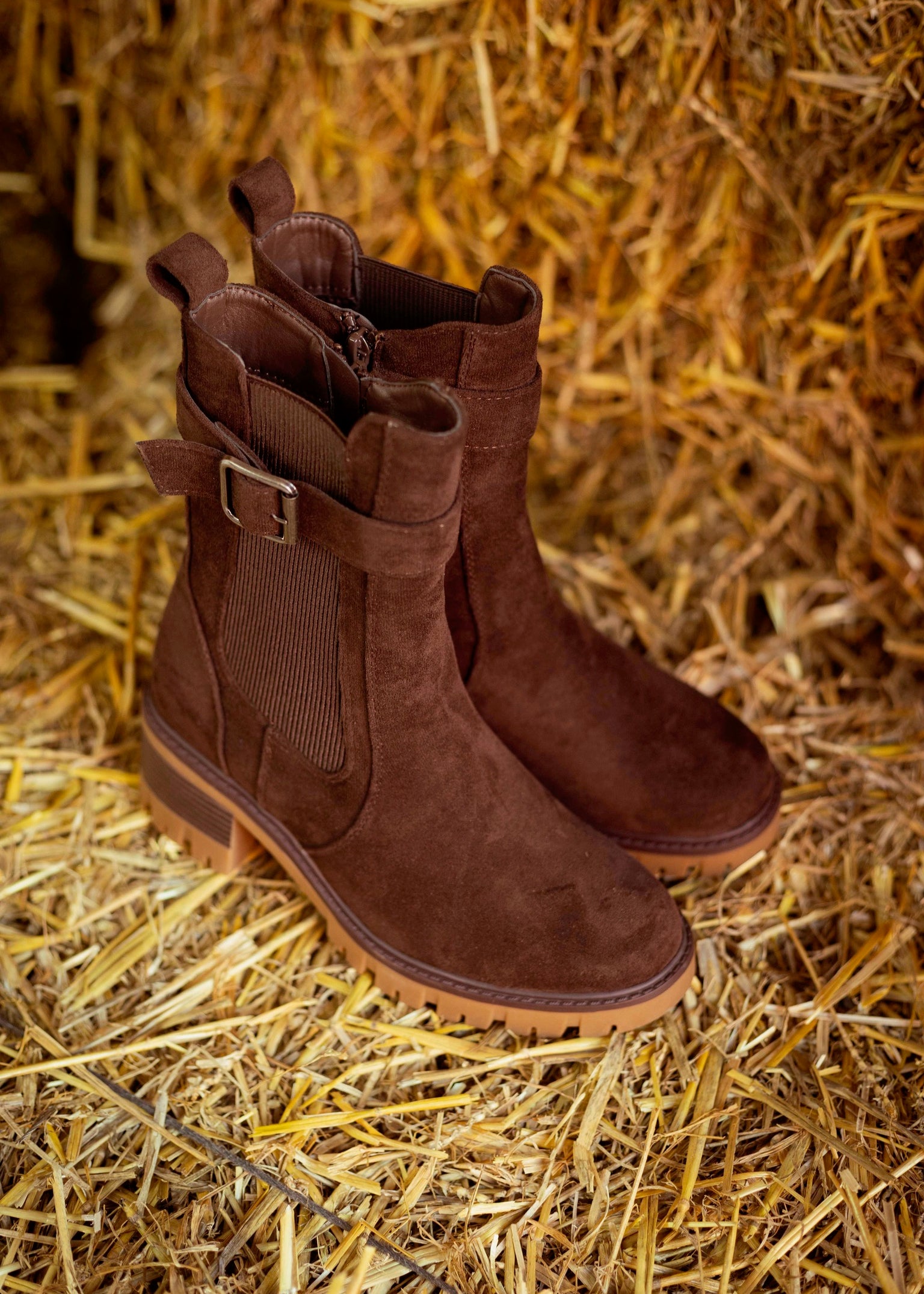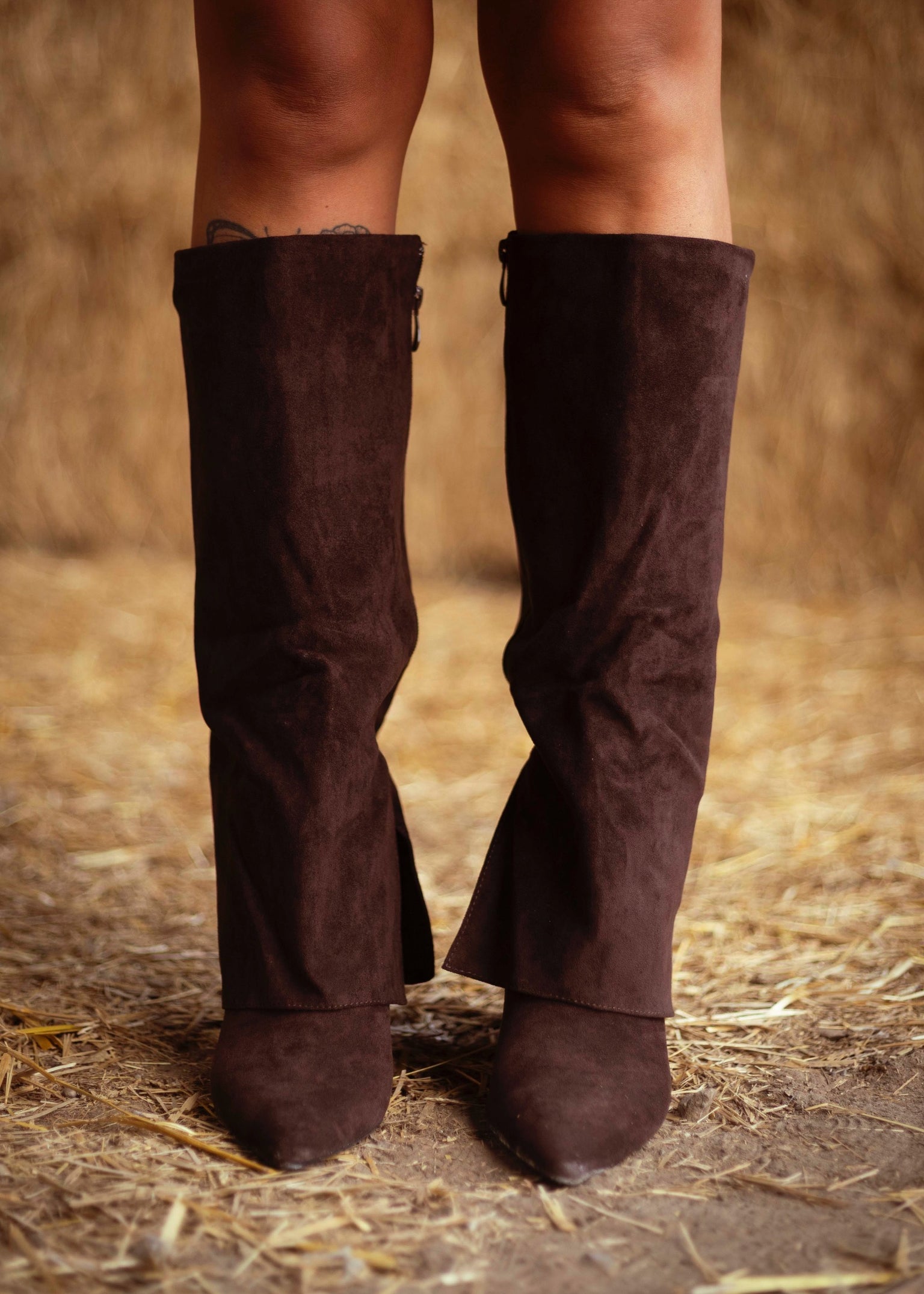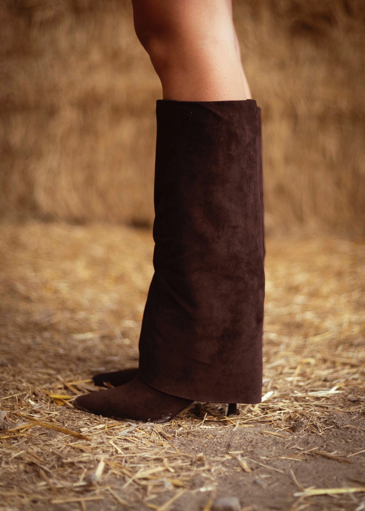 LIZZIE BROWN SUEDE FOLD OVER HEEL BOOTS