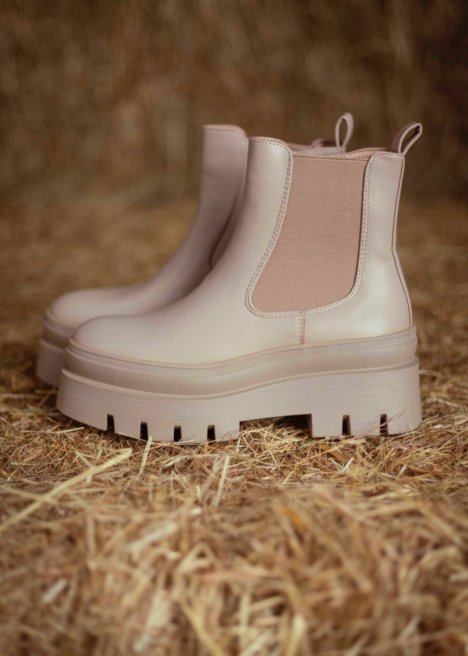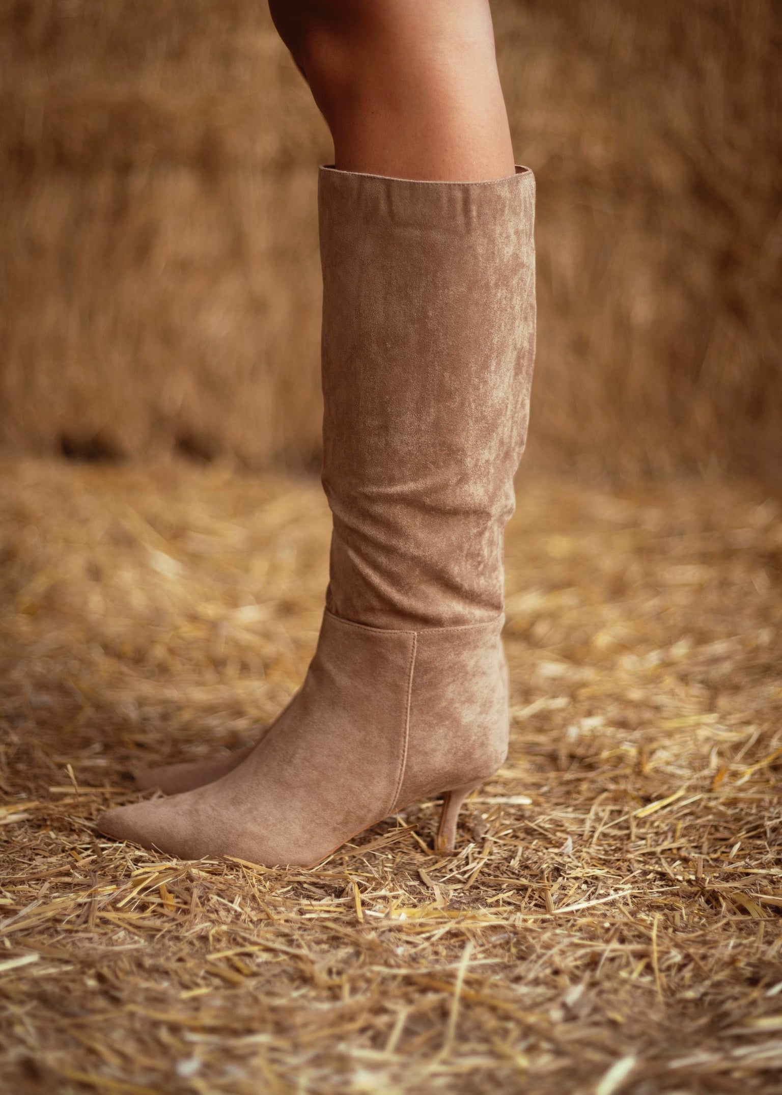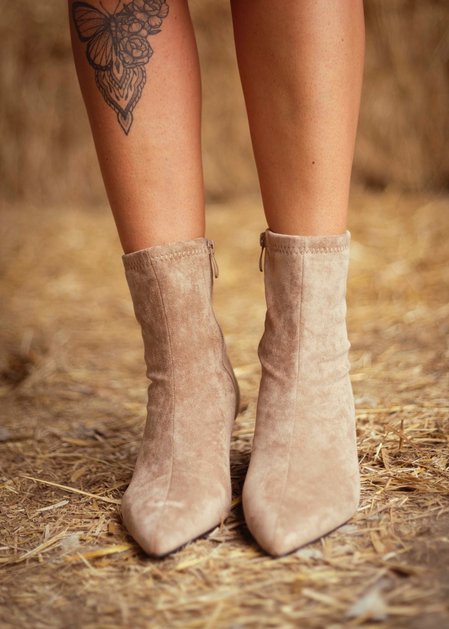 THORNFIELD BEIGE SUEDE HEEL BOOTS