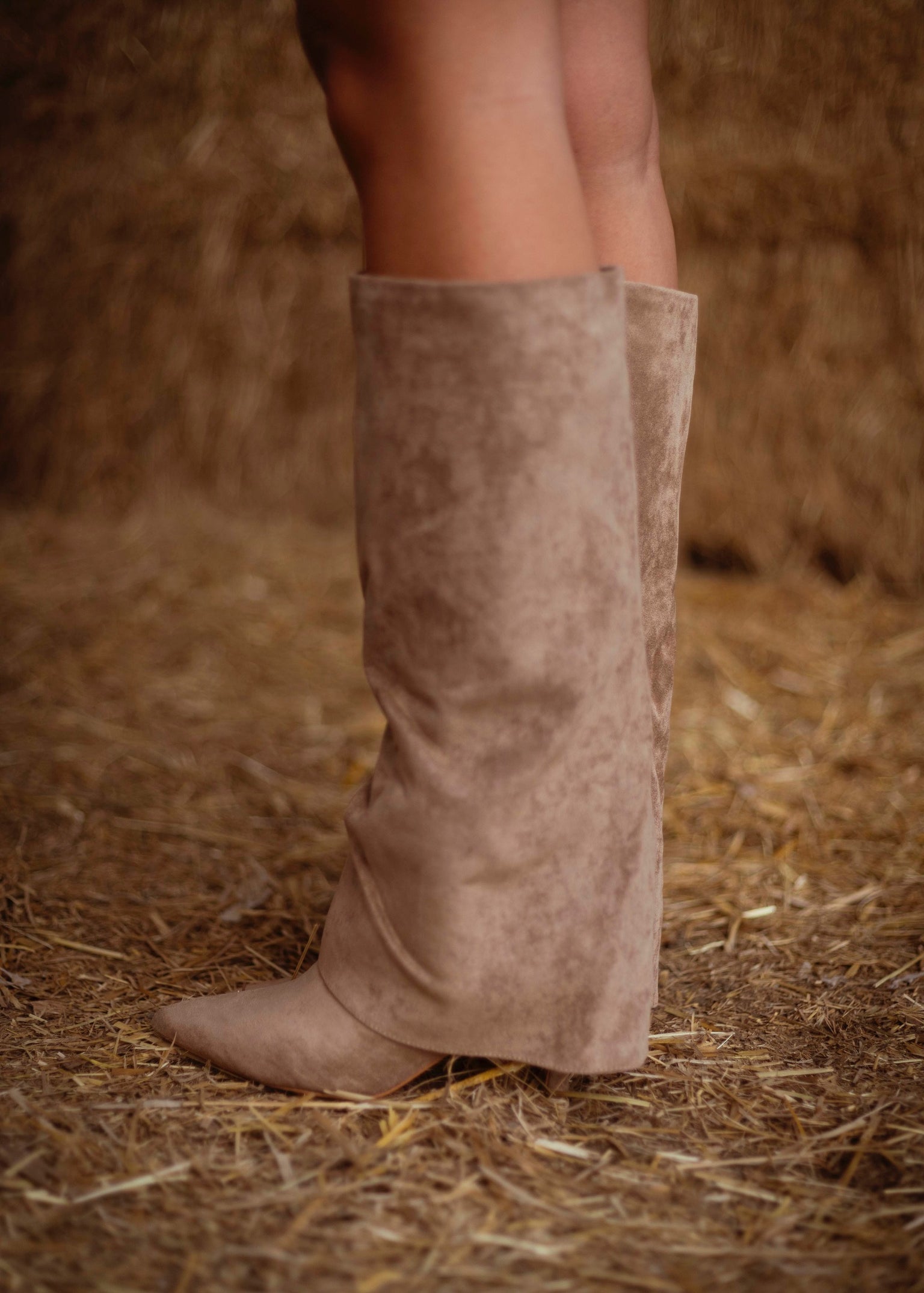 LIZZIE BEIGE SUEDE FOLD OVER BOOTS