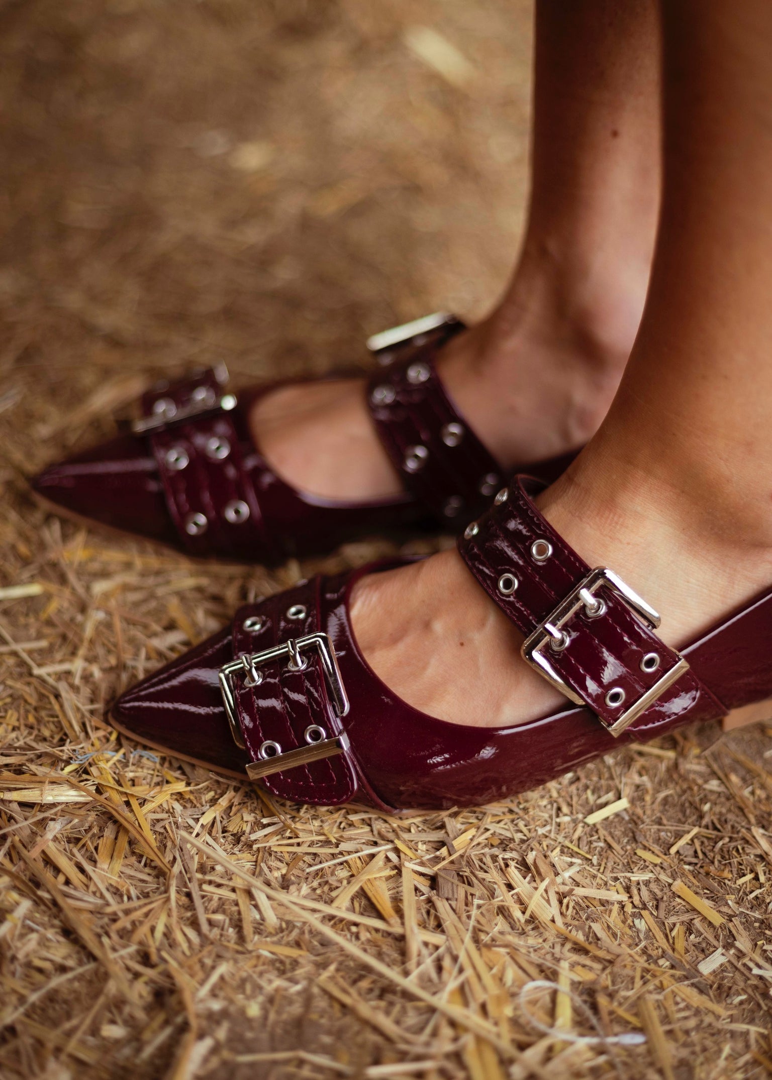 BENNETT POINTED BURGUNDY LEATHER FLATS