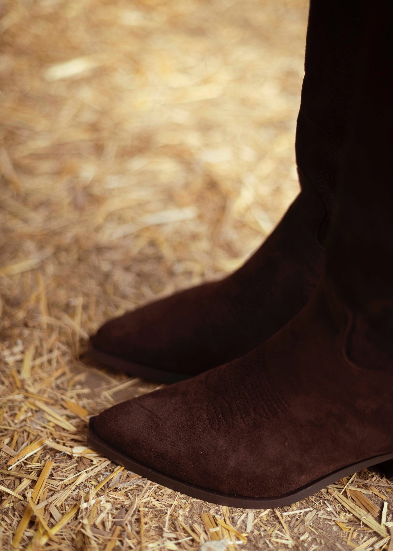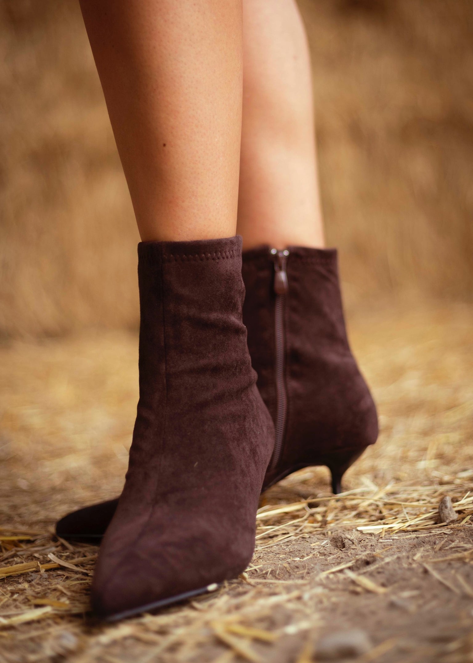 NADINE BROWN SUEDE CAT HEEL BOOTS