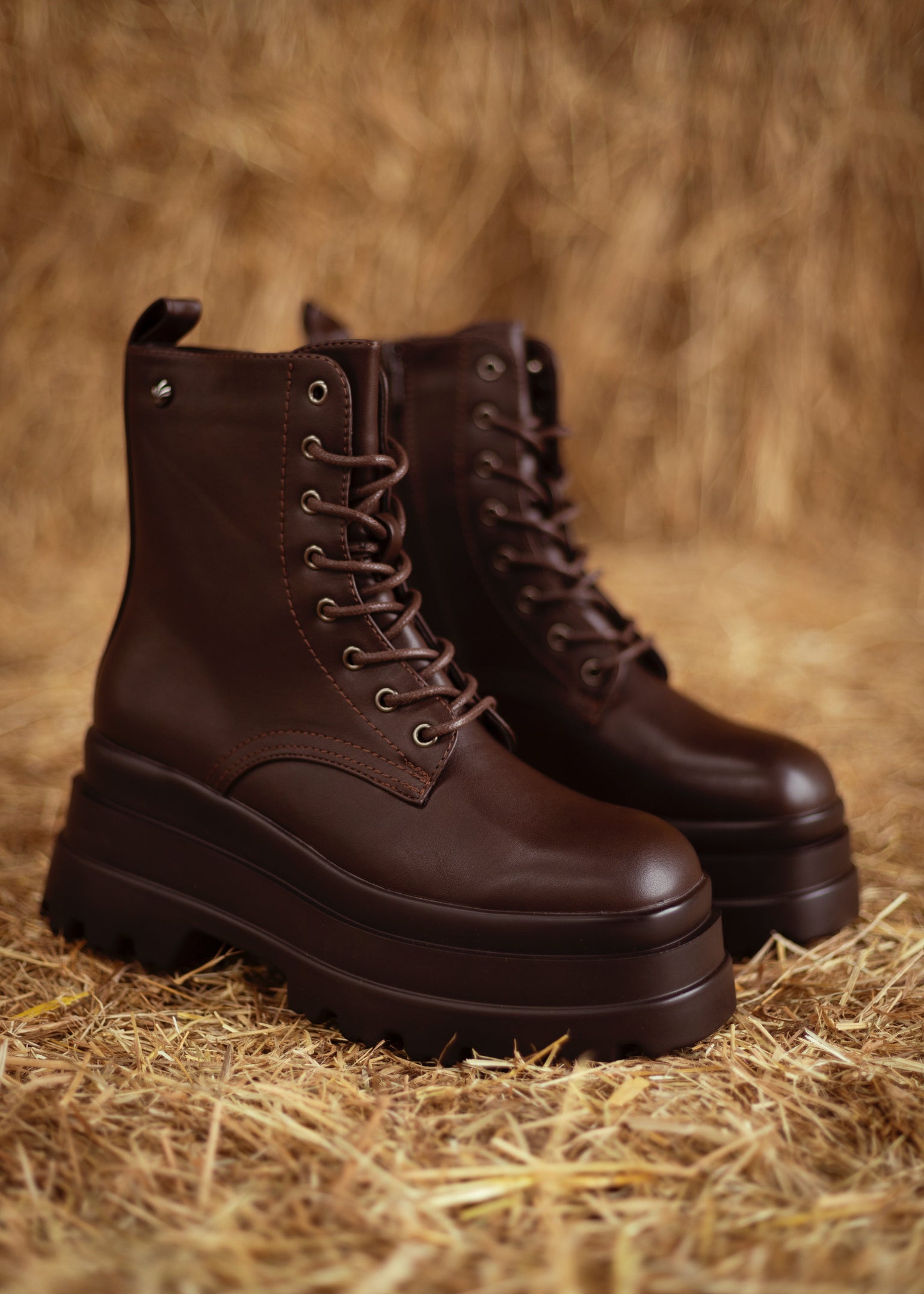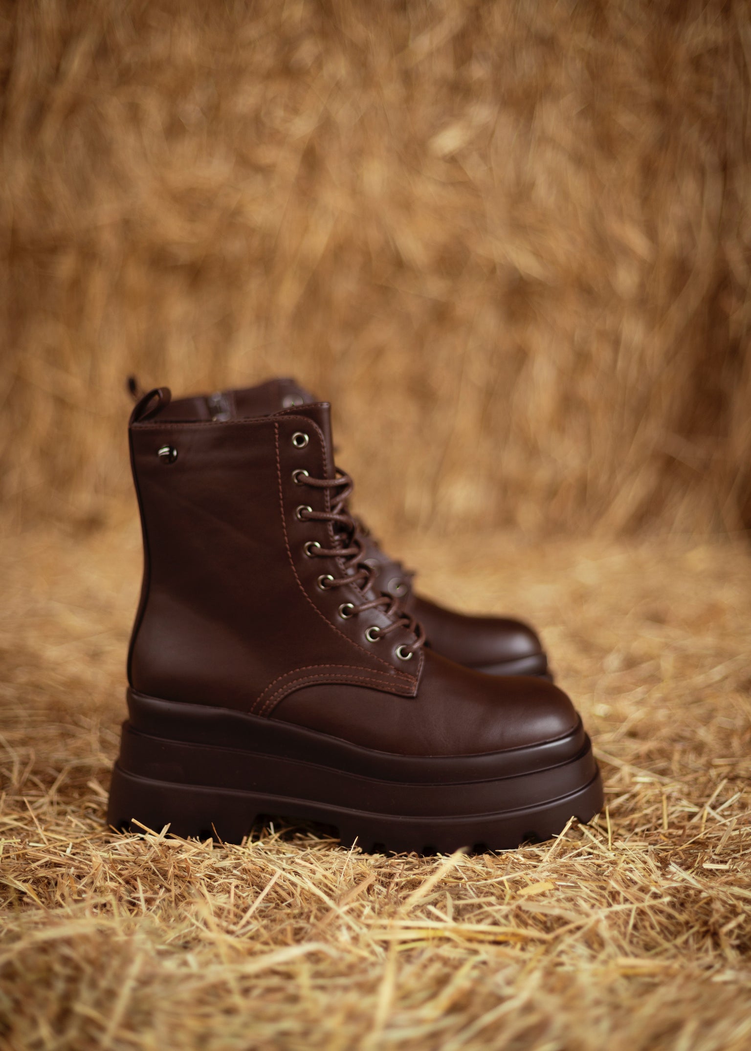 SADIE BROWN LACE-UP CHUNKY BOOTS