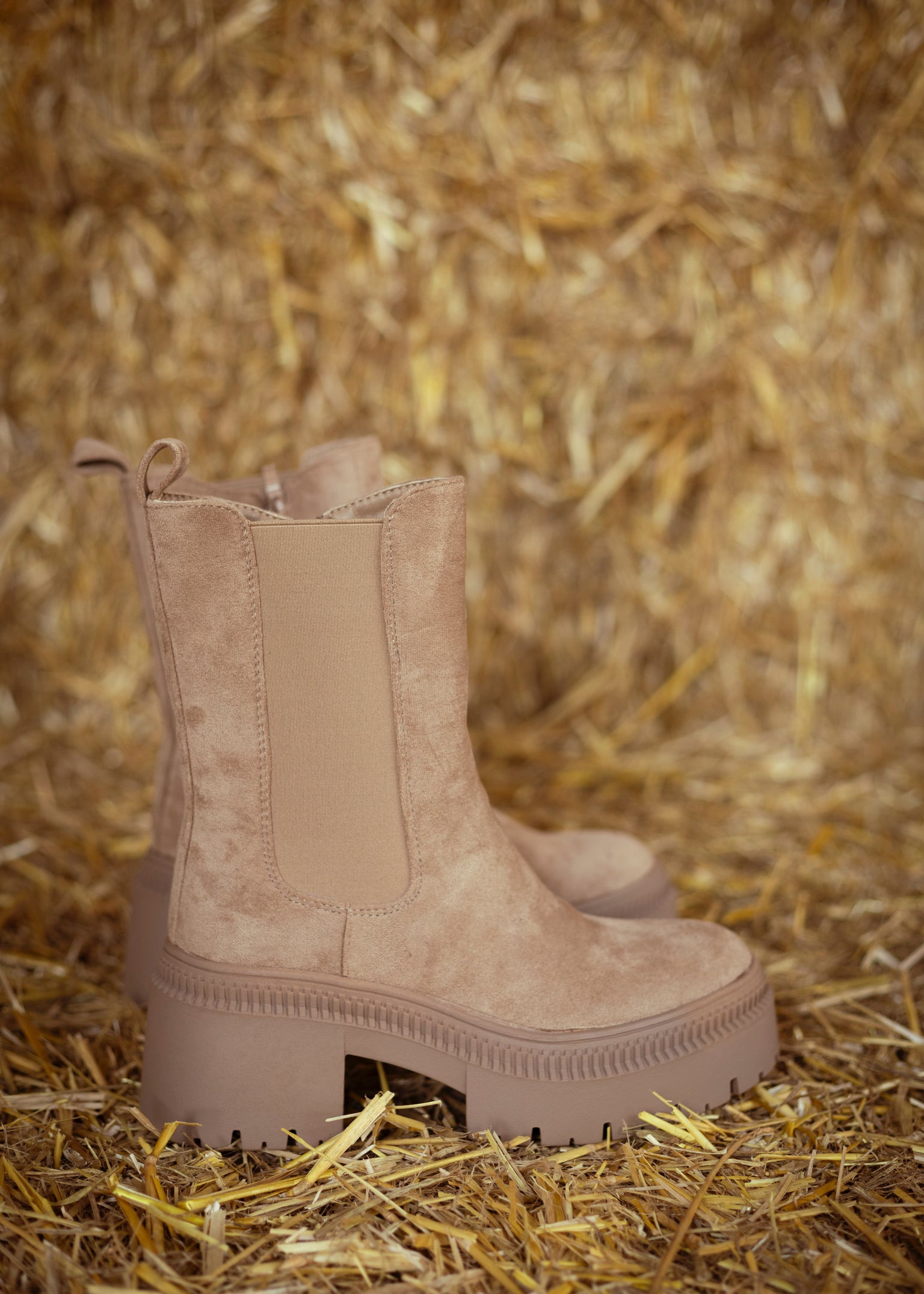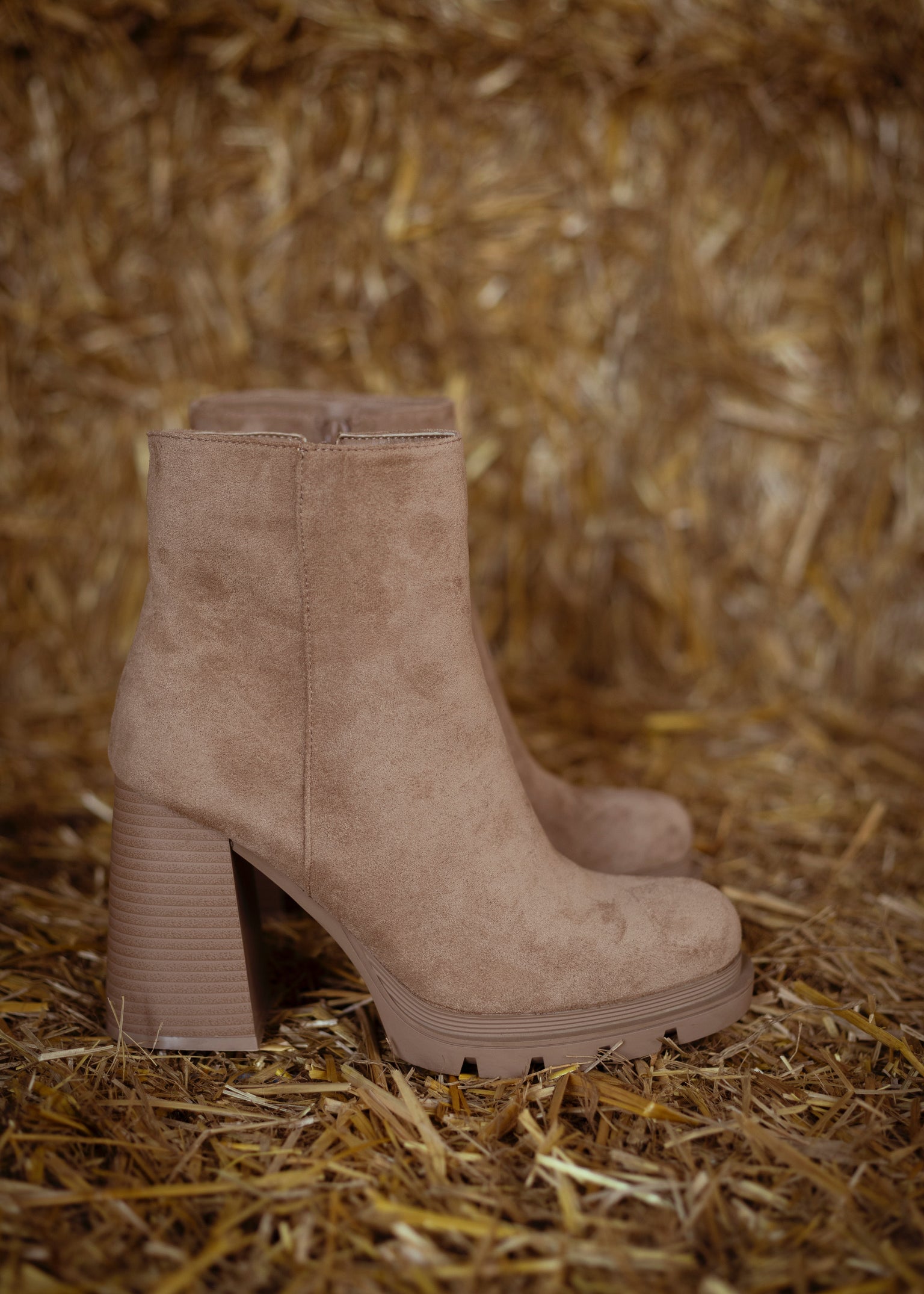GRACE TAUPE SUEDE HEEL BOOTS