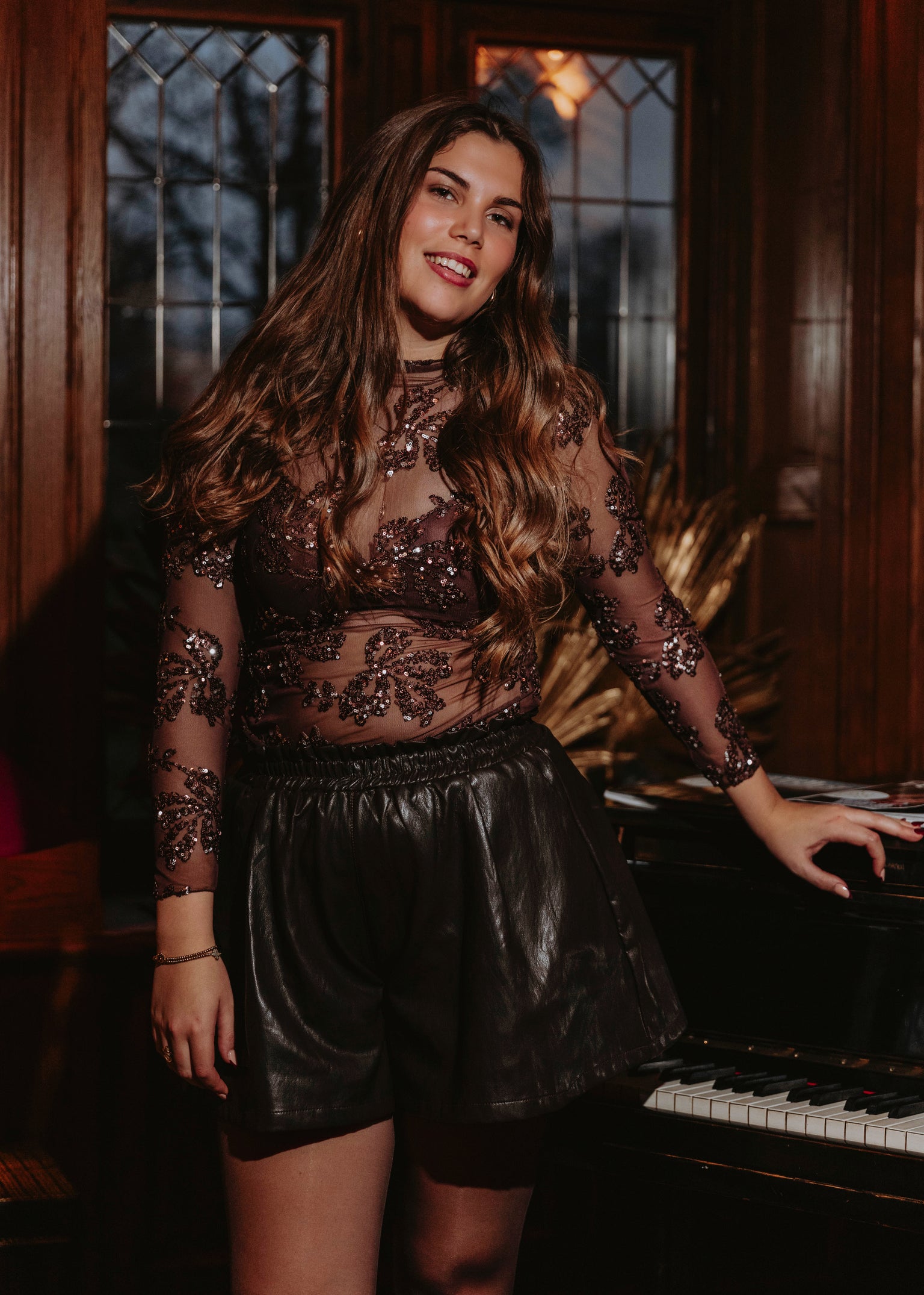 SANTA'S FAVORITE BROWN SEQUIN SHORT