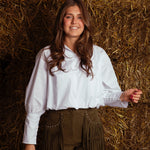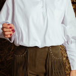 Een speels ontwerp met een stoer randje, perfect voor de eerste frisse herfstdagen. De combinatie van zachte suèdetextuur, sierlijke franjes en subtiele studs geeft elke outfit een eigenzinnige twist.