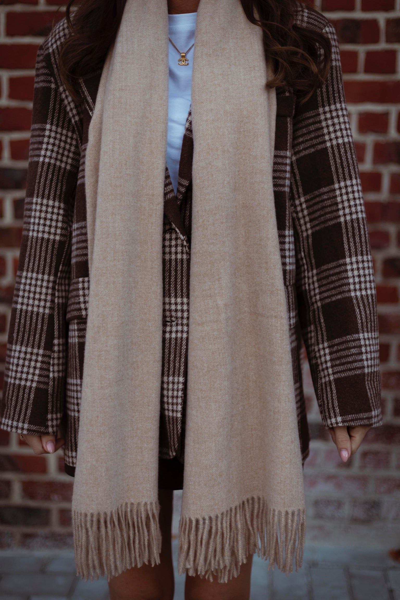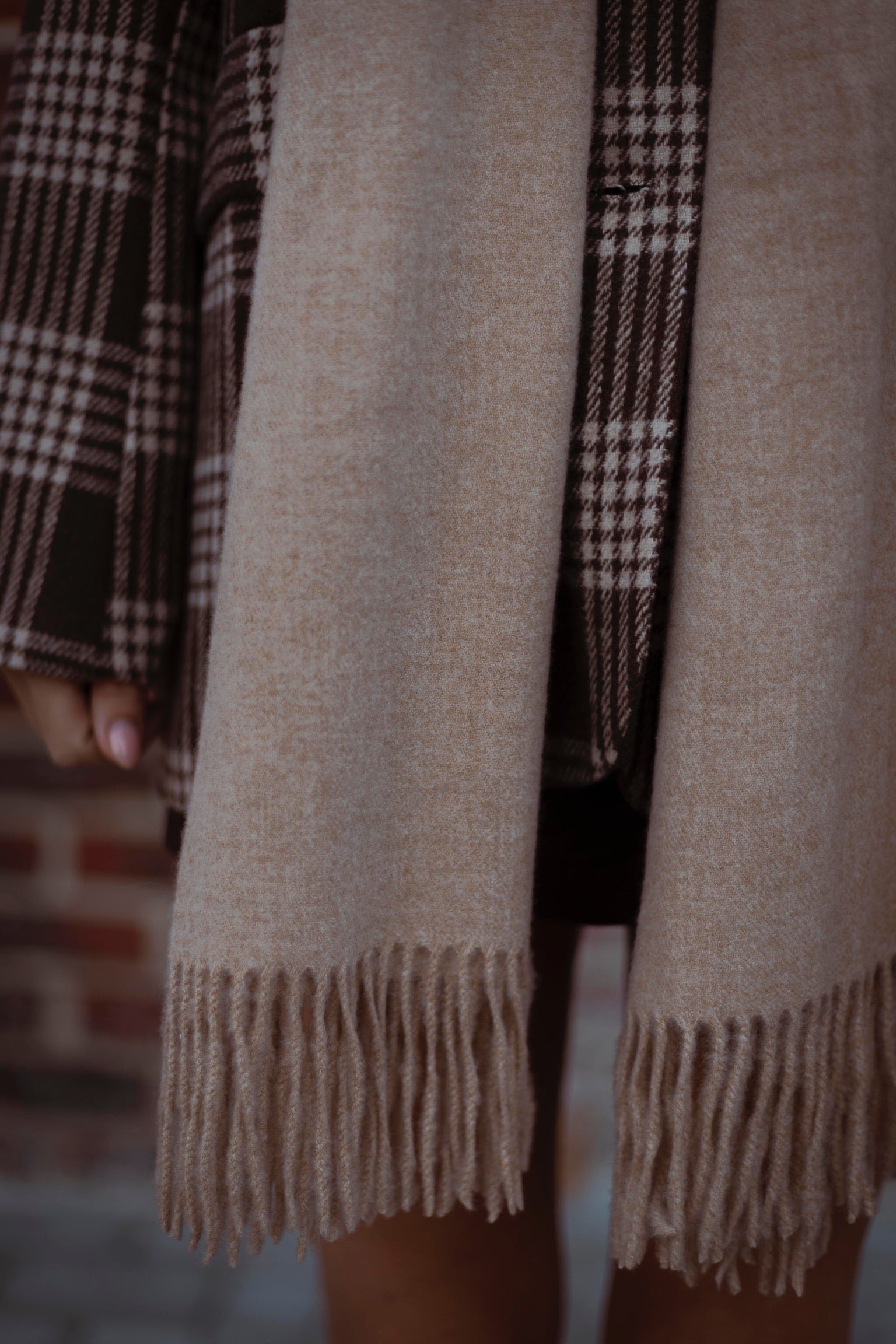 Een heerlijk zachte sjaal die elke koude ochtend verandert in een stijlvol moment. De speelse fringes aan de uiteinden brengen beweging en nonchalance, perfect voor door de stad struinen met een warme koffie in je hand.