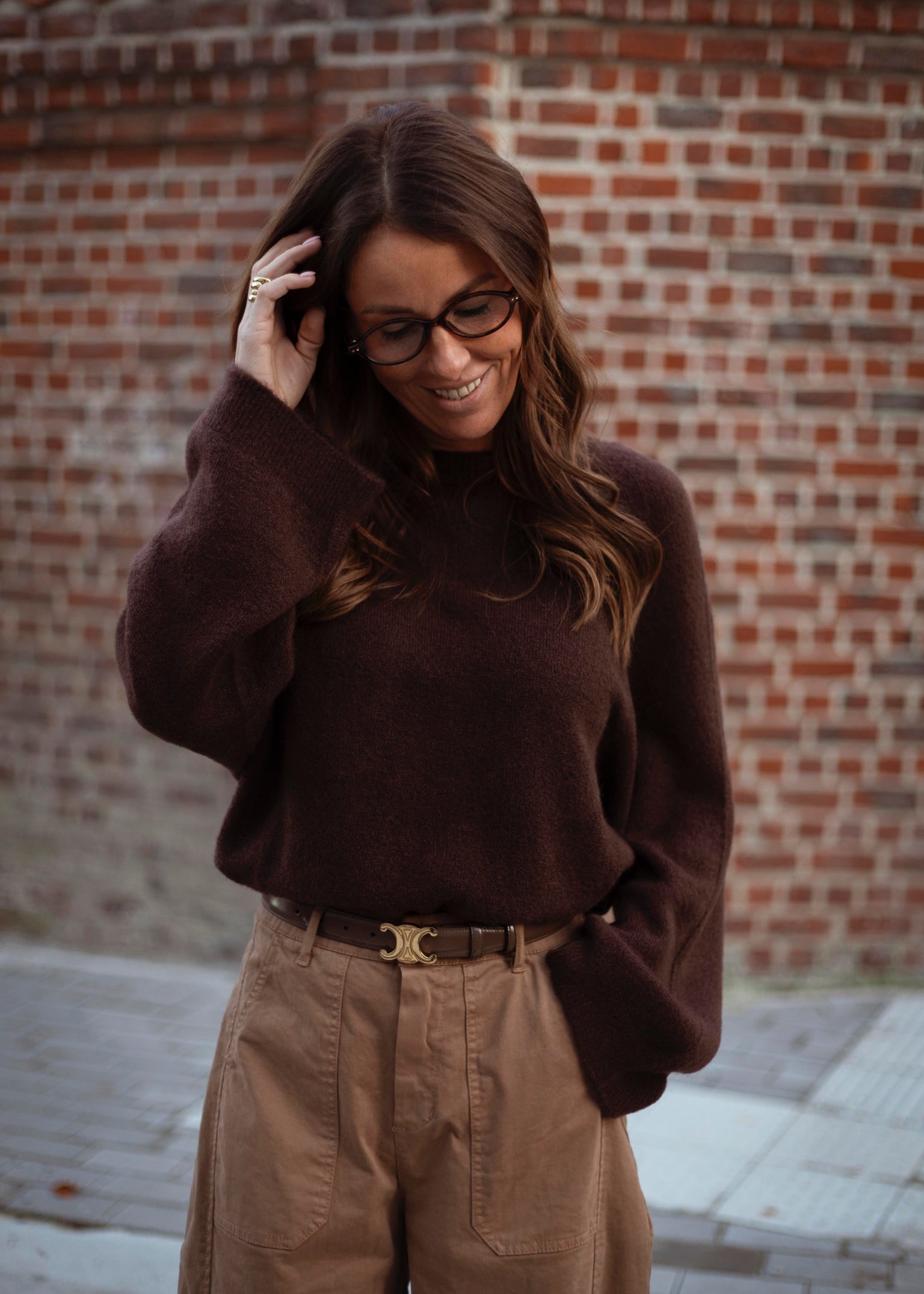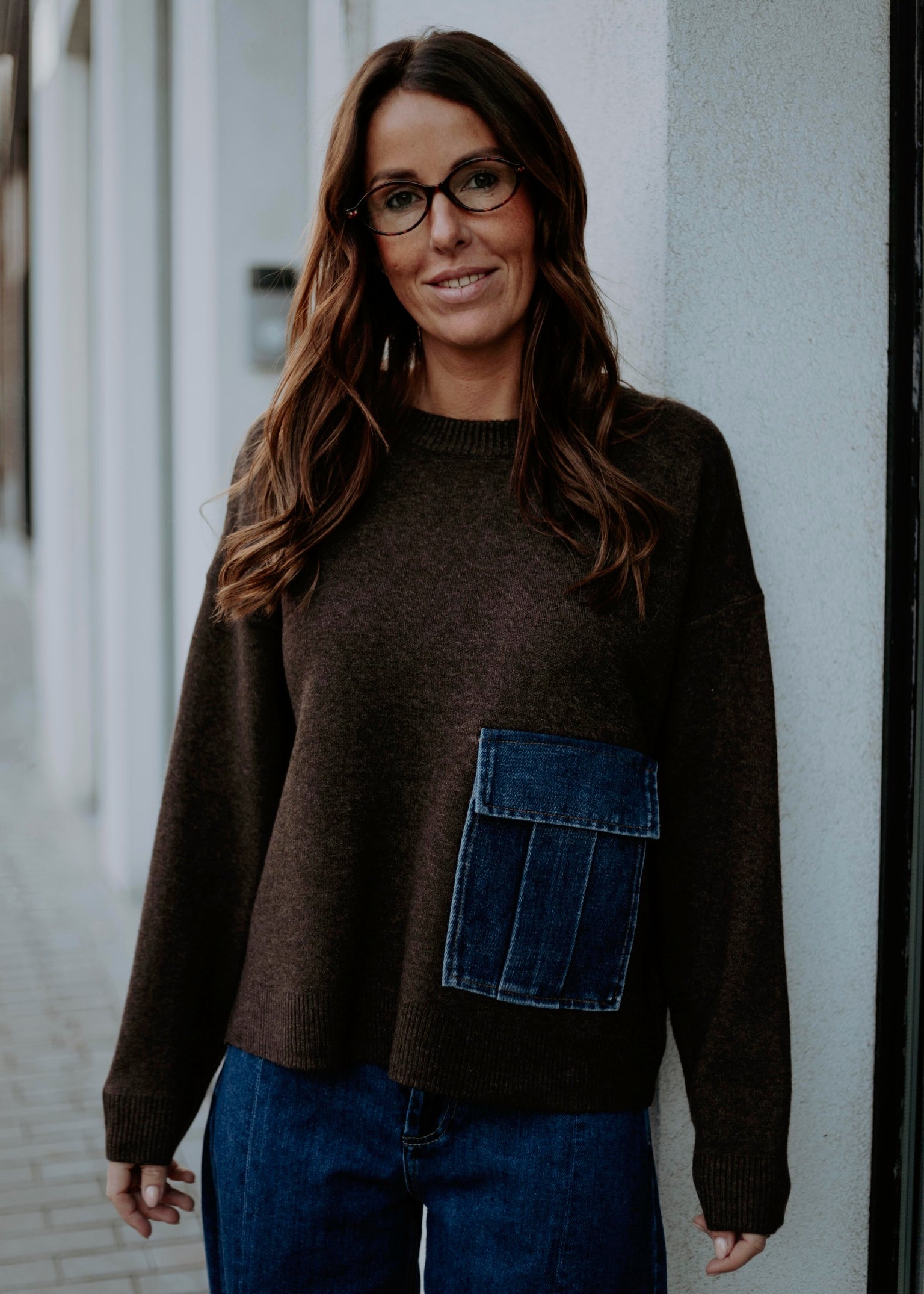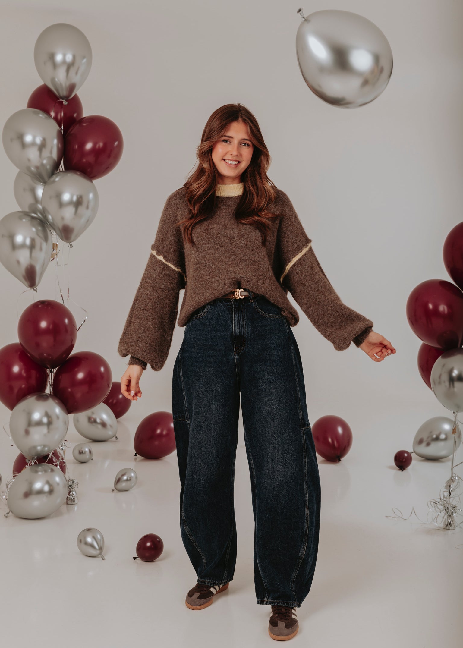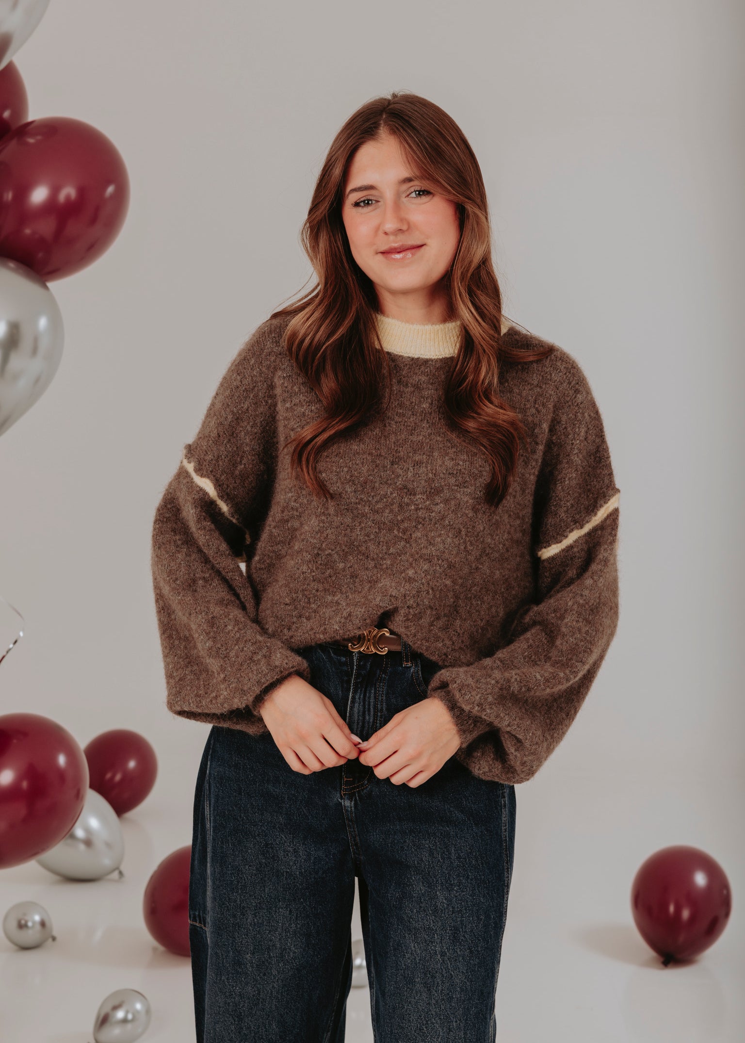 CHEERS & CUDDLES BROWN KNIT SWEATER