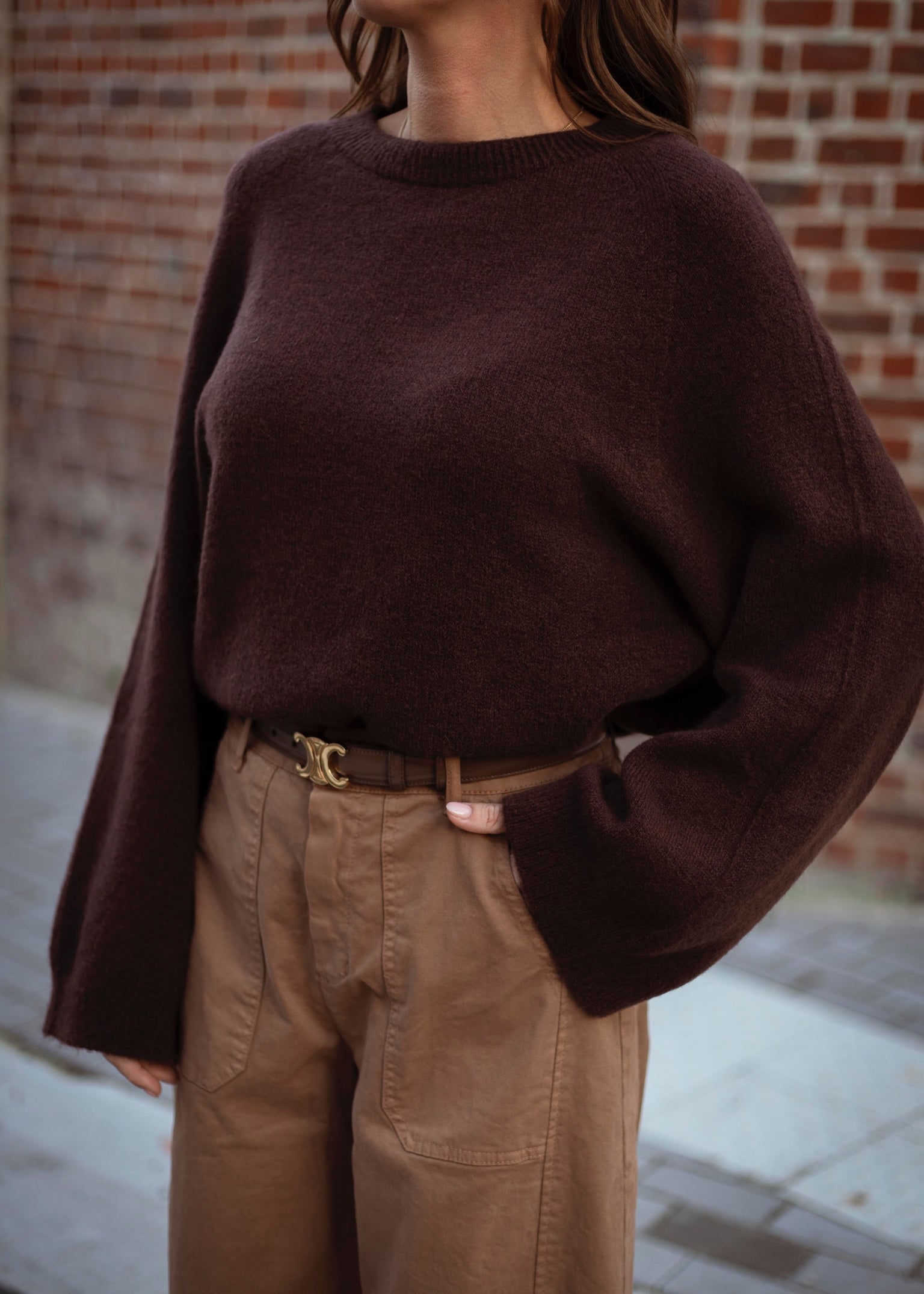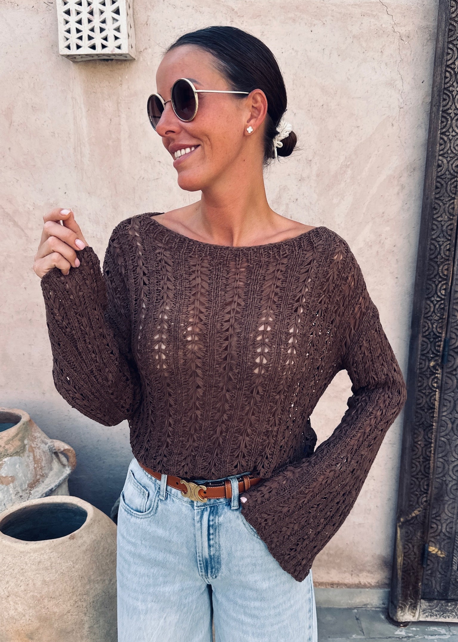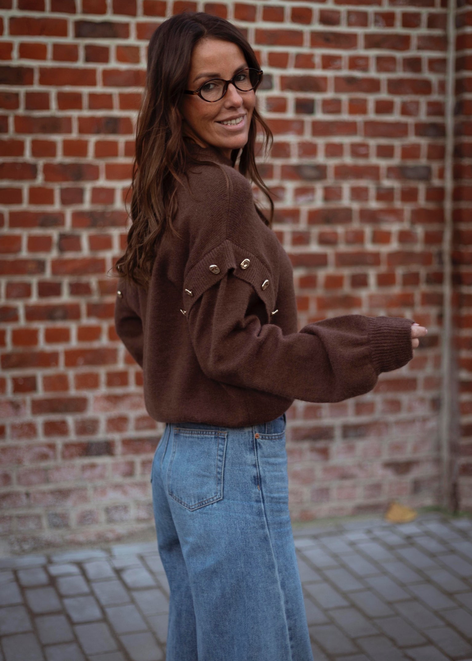 CHEERS & CUDDLES BROWN KNIT SWEATER