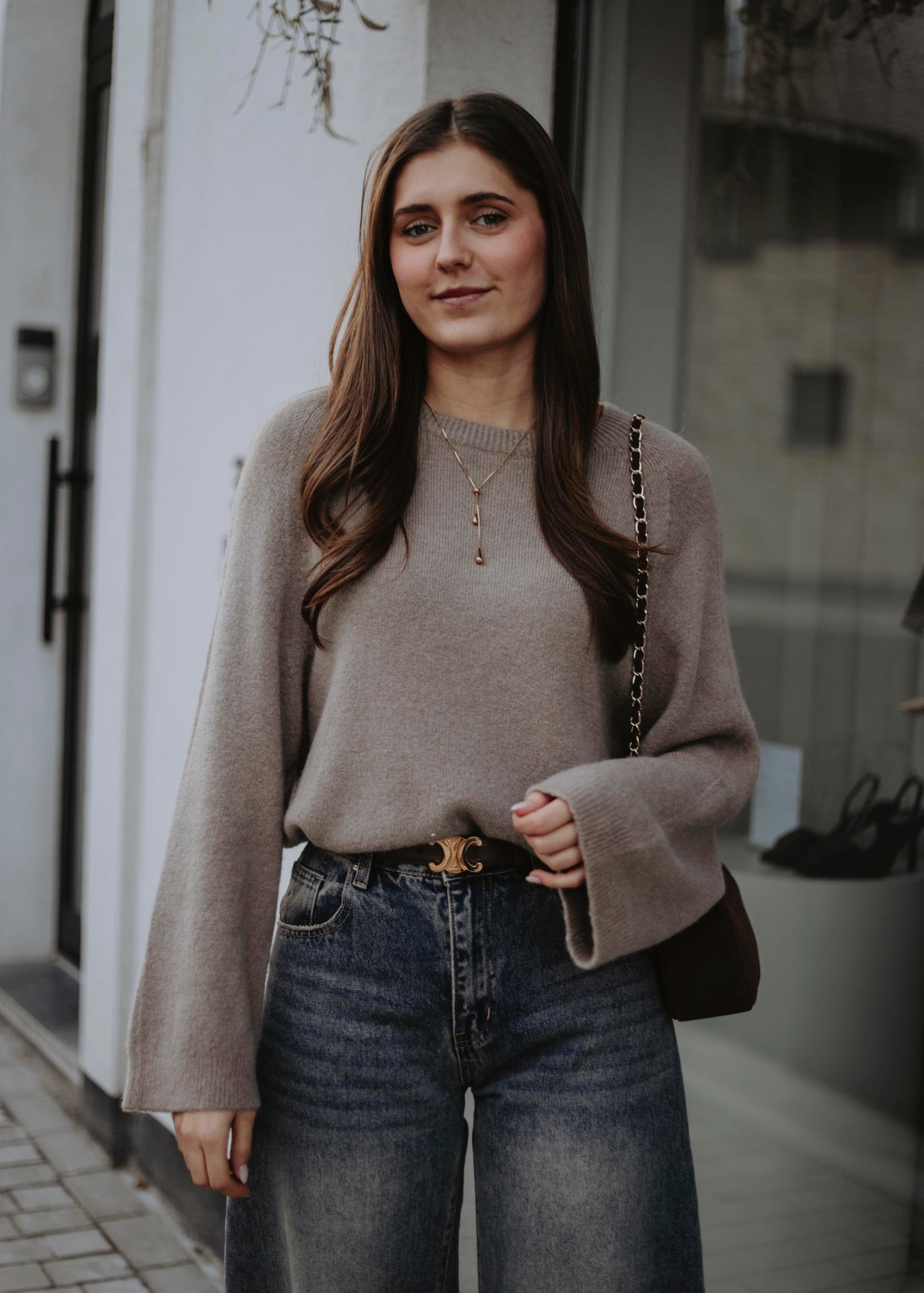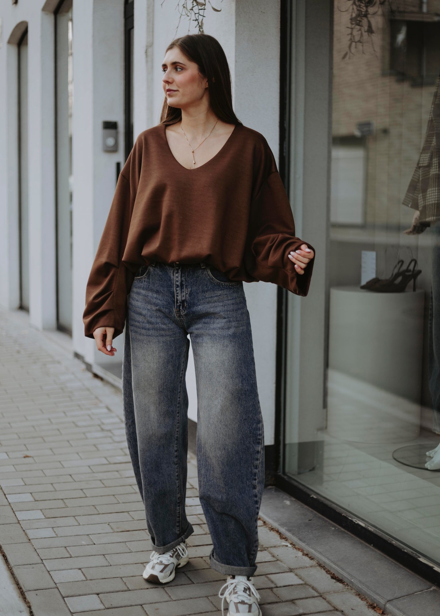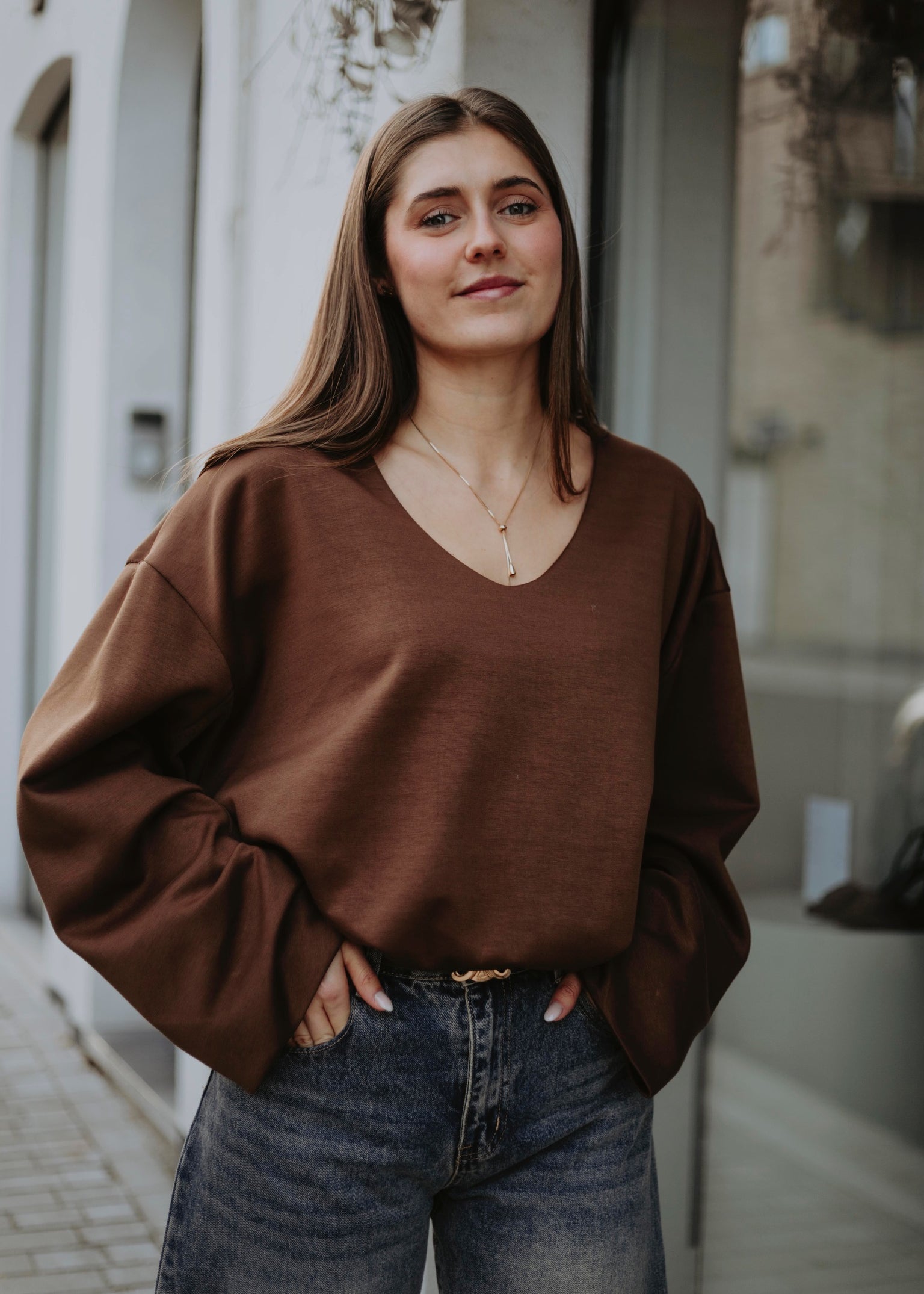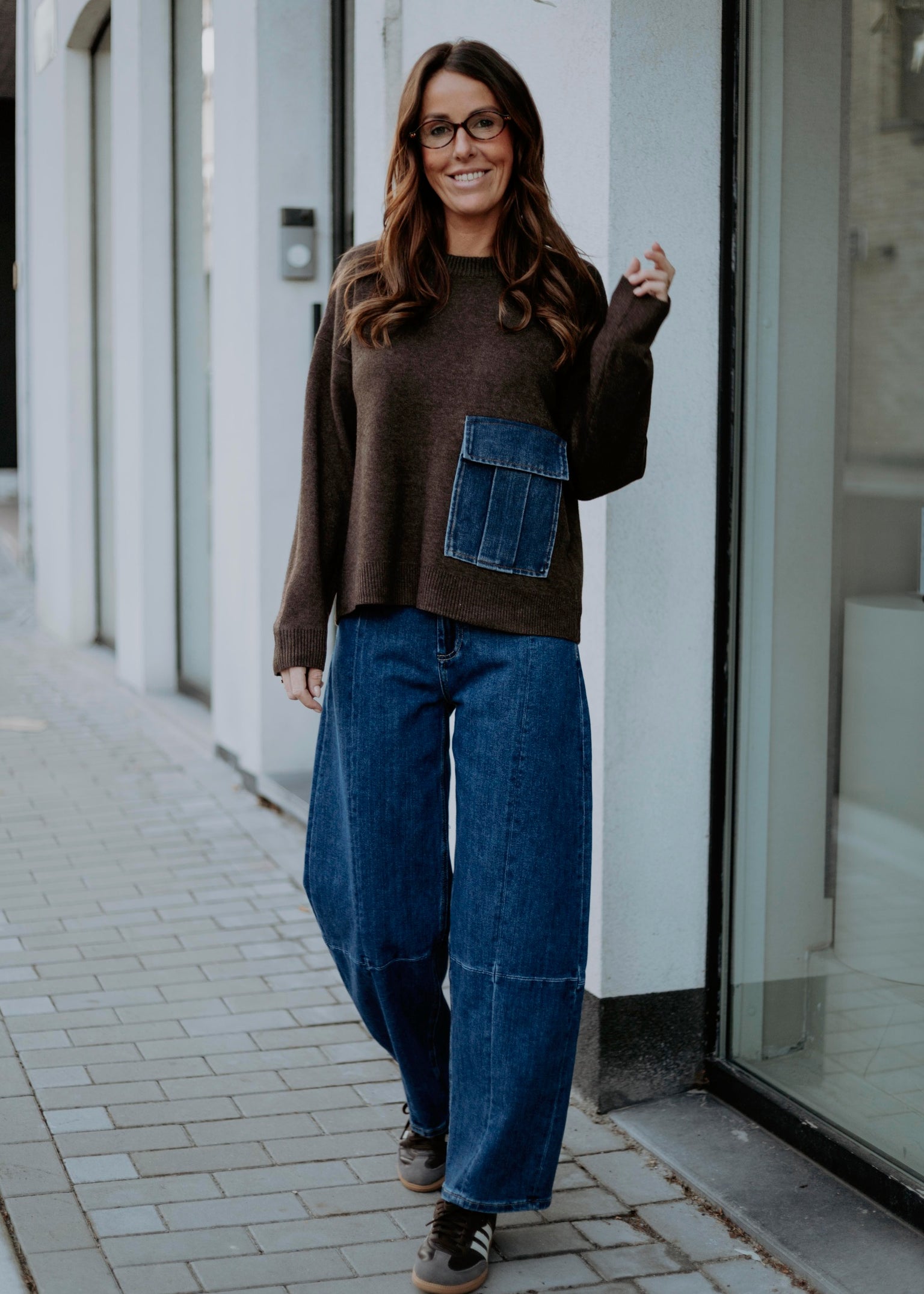 CHEERS & CUDDLES BROWN KNIT SWEATER