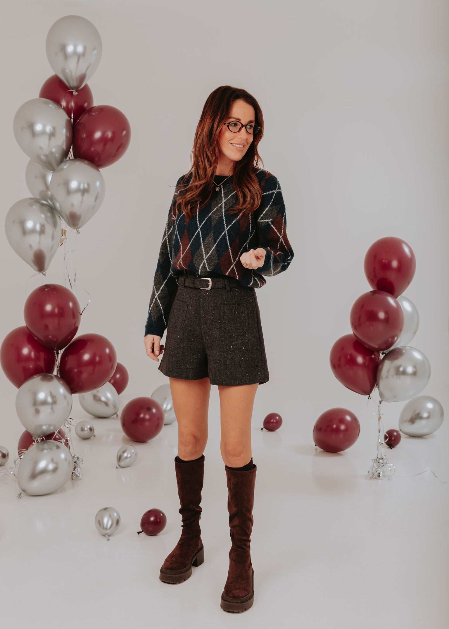 CUDDLE UP KHAKI/BROWN ARGYLE SWEATER
