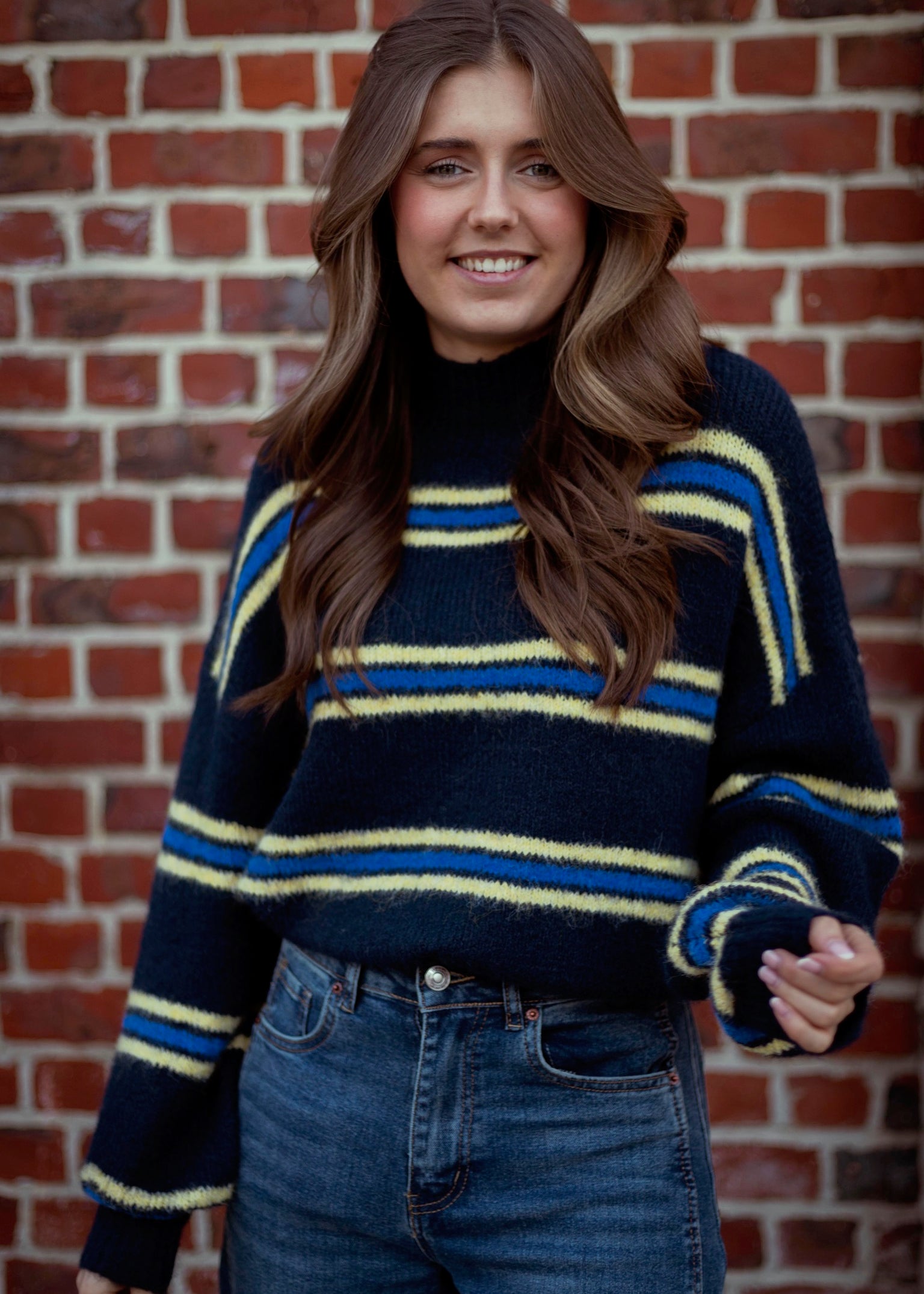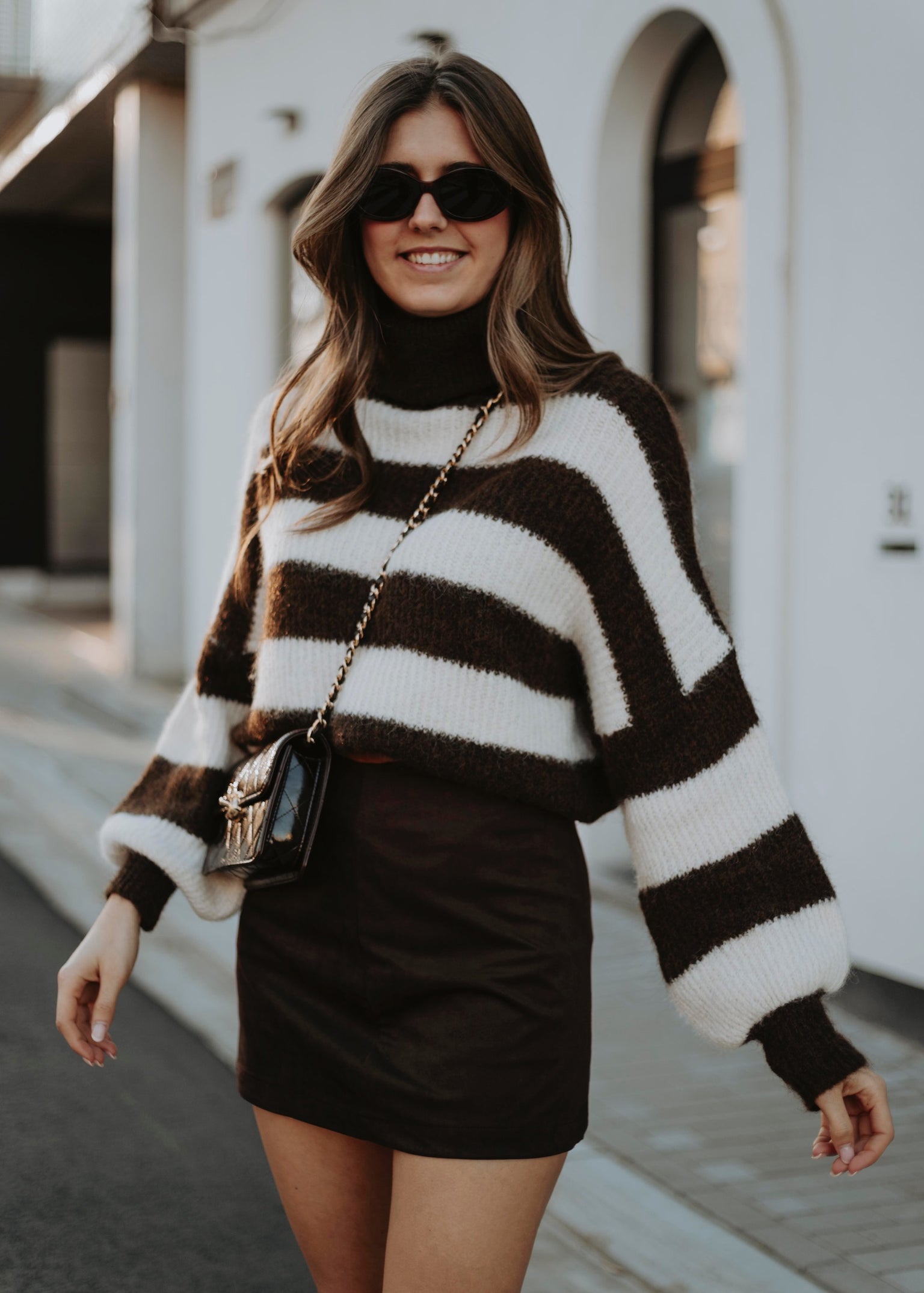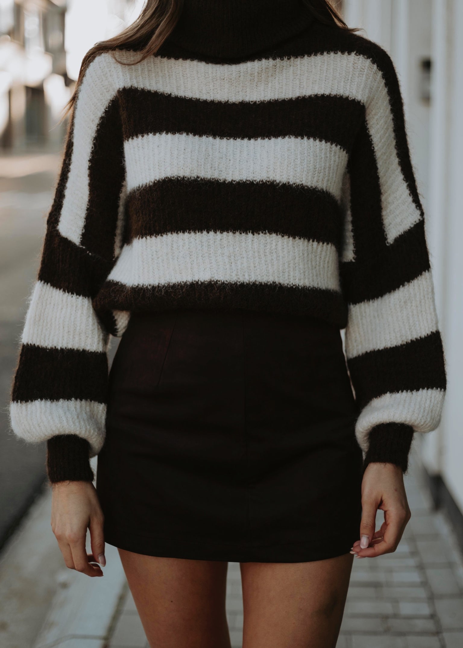 ZAYA BROWN ROLLNECK STRIPED SWEATER