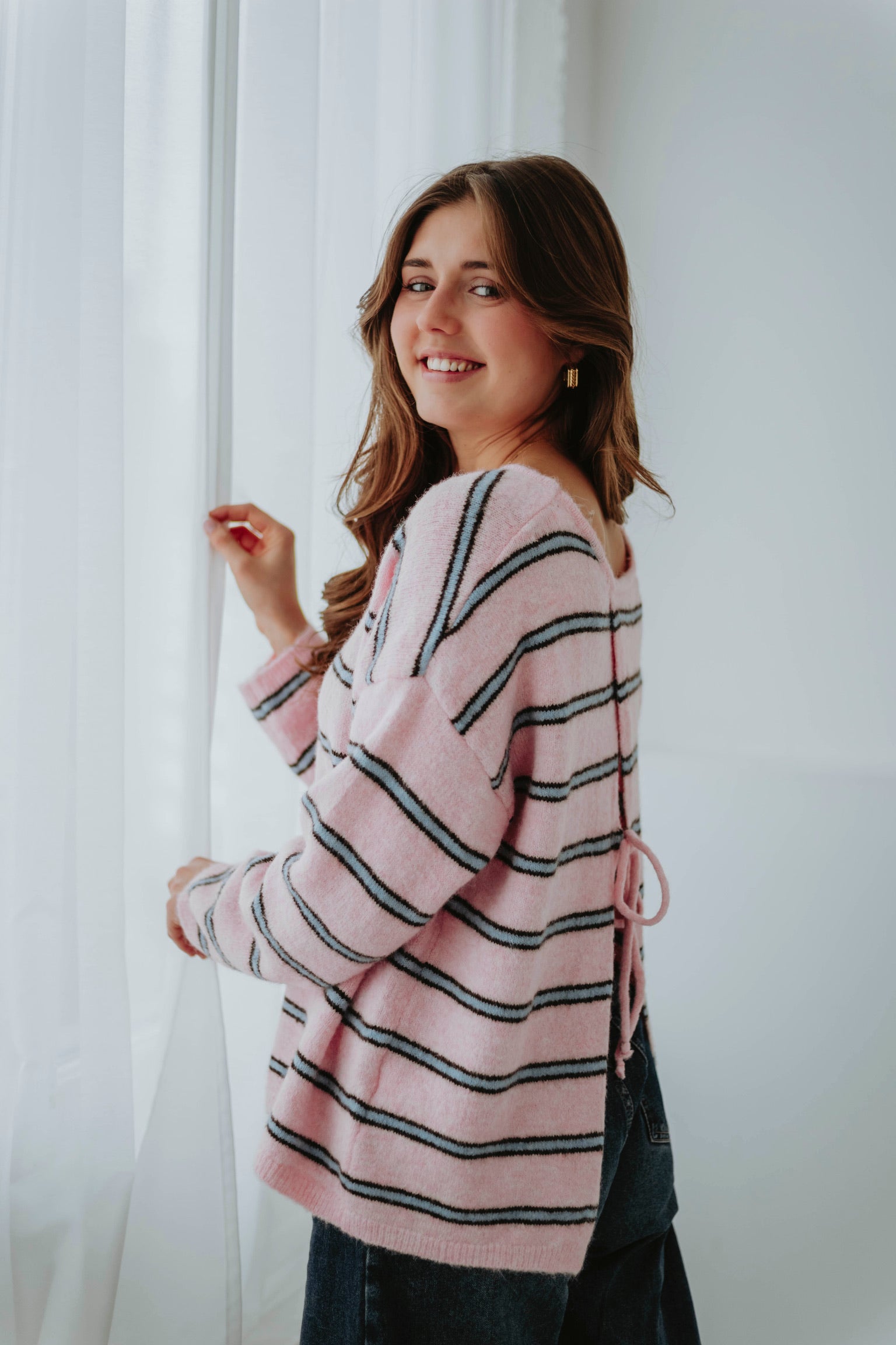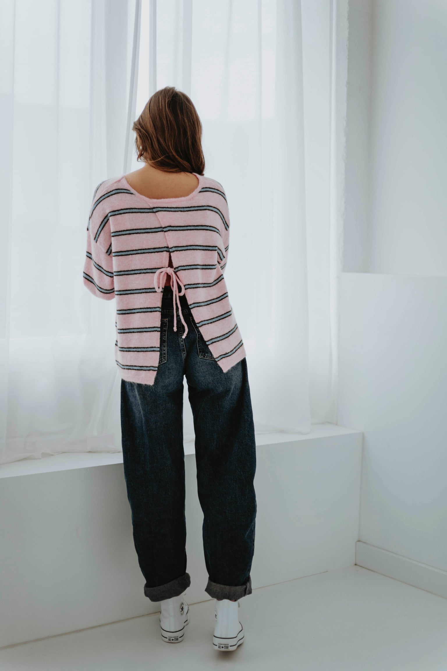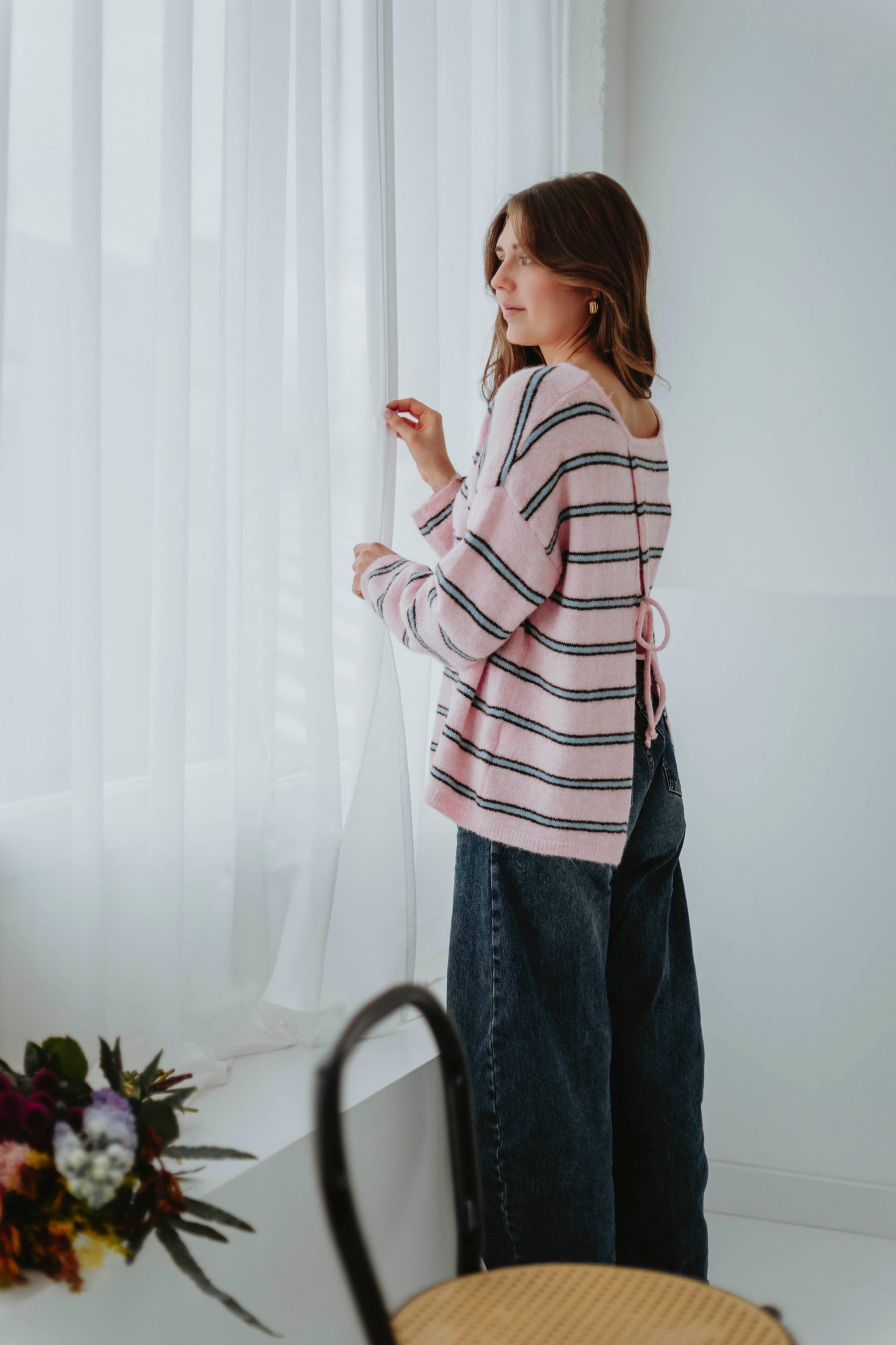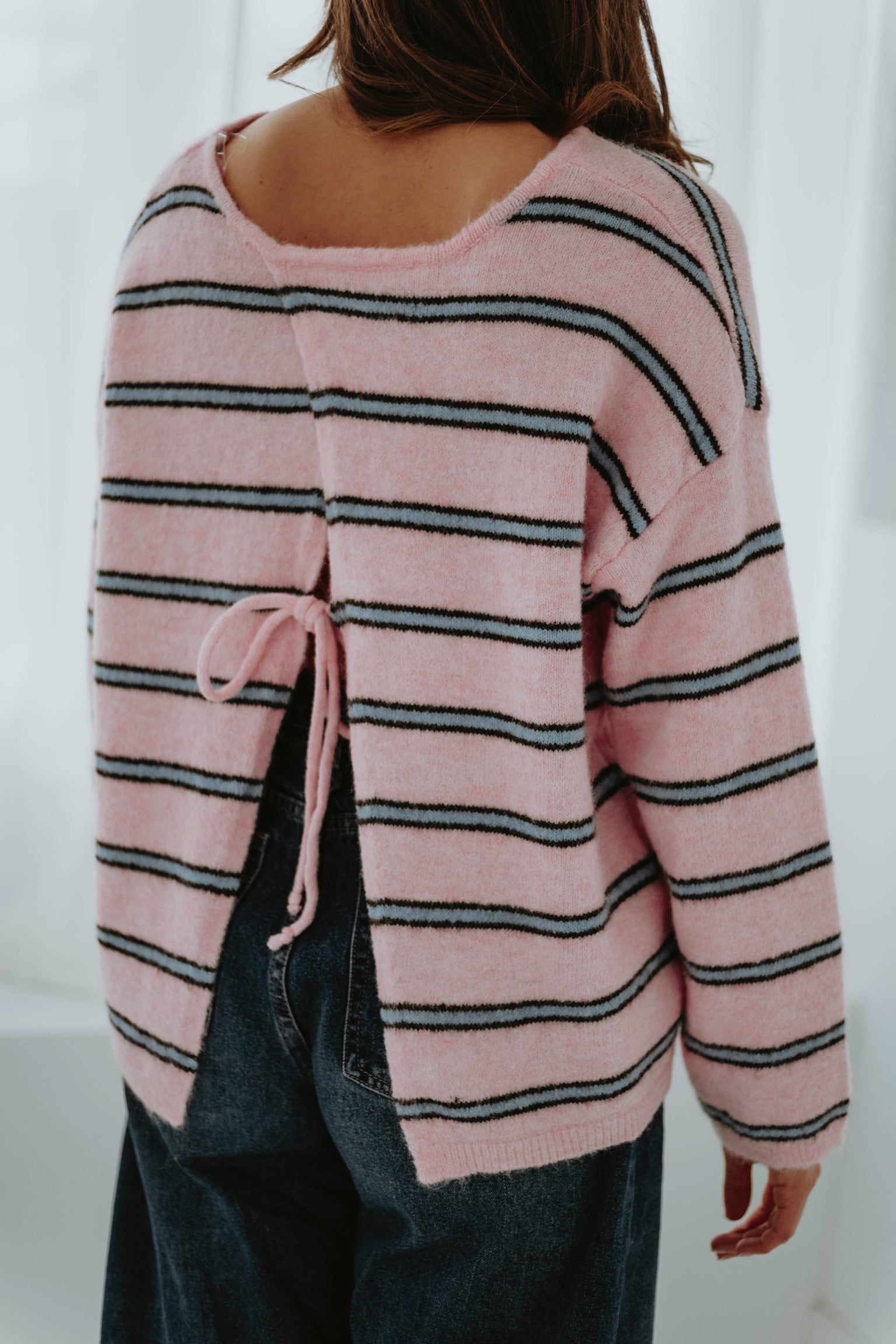 Een speels detail dat zorgt voor een verrassend open effect aan de achterkant. Het strikje geeft een vrouwelijke en frisse twist die perfect past bij het voorjaar. Een subtiele eyecatcher die je look nét even anders maakt.