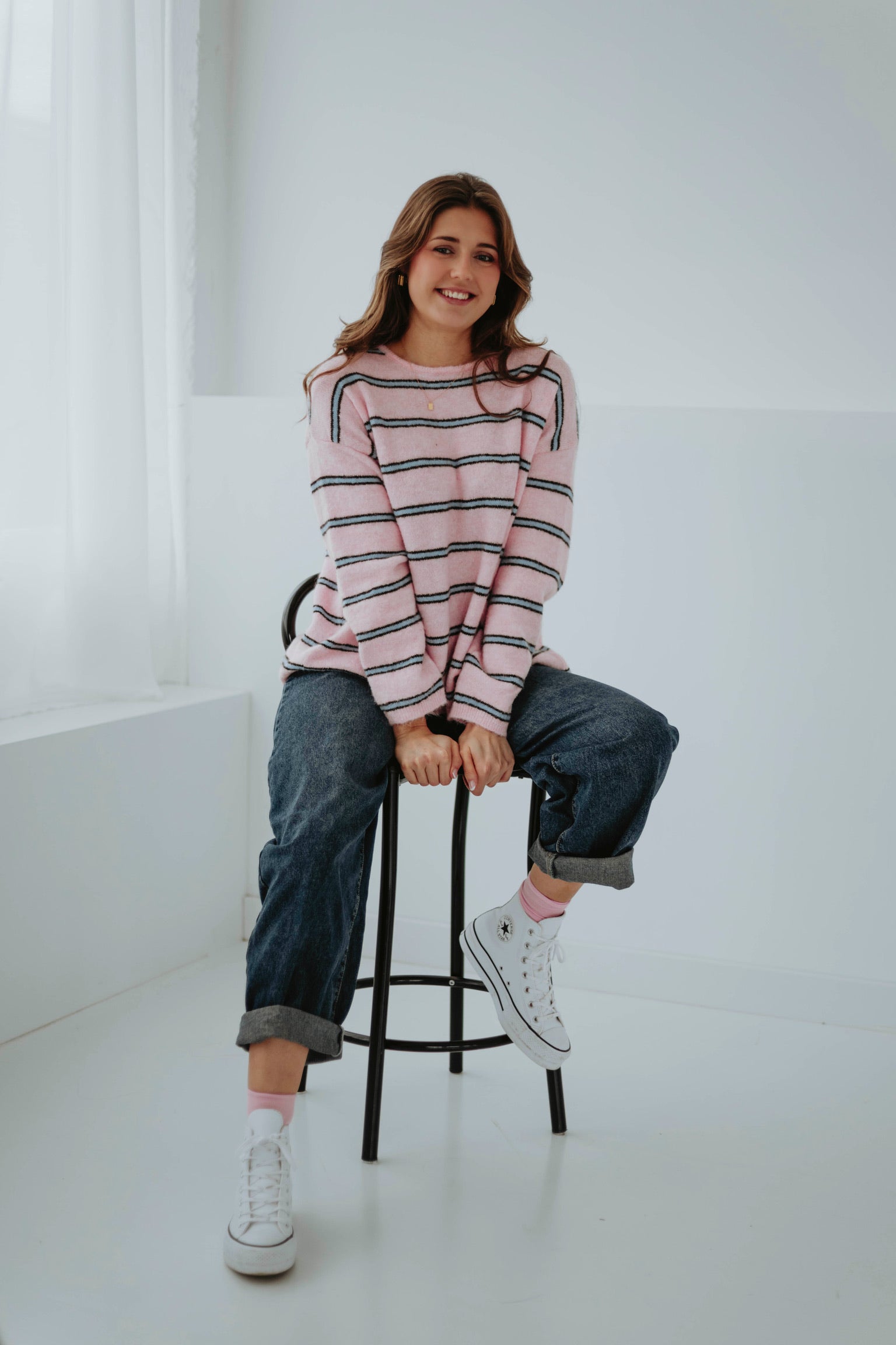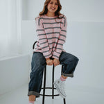 PRE-ORDER DANIQUE PINK STRIPED KNIT SWEATER