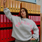 Een cozy sweater met grote, opvallende roze letters die TEACHER achteraan dragen. Perfect cadeautje voor onder de kerstboom !