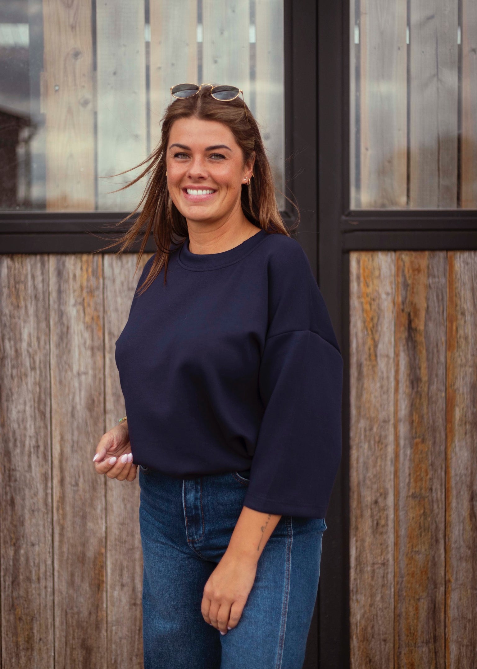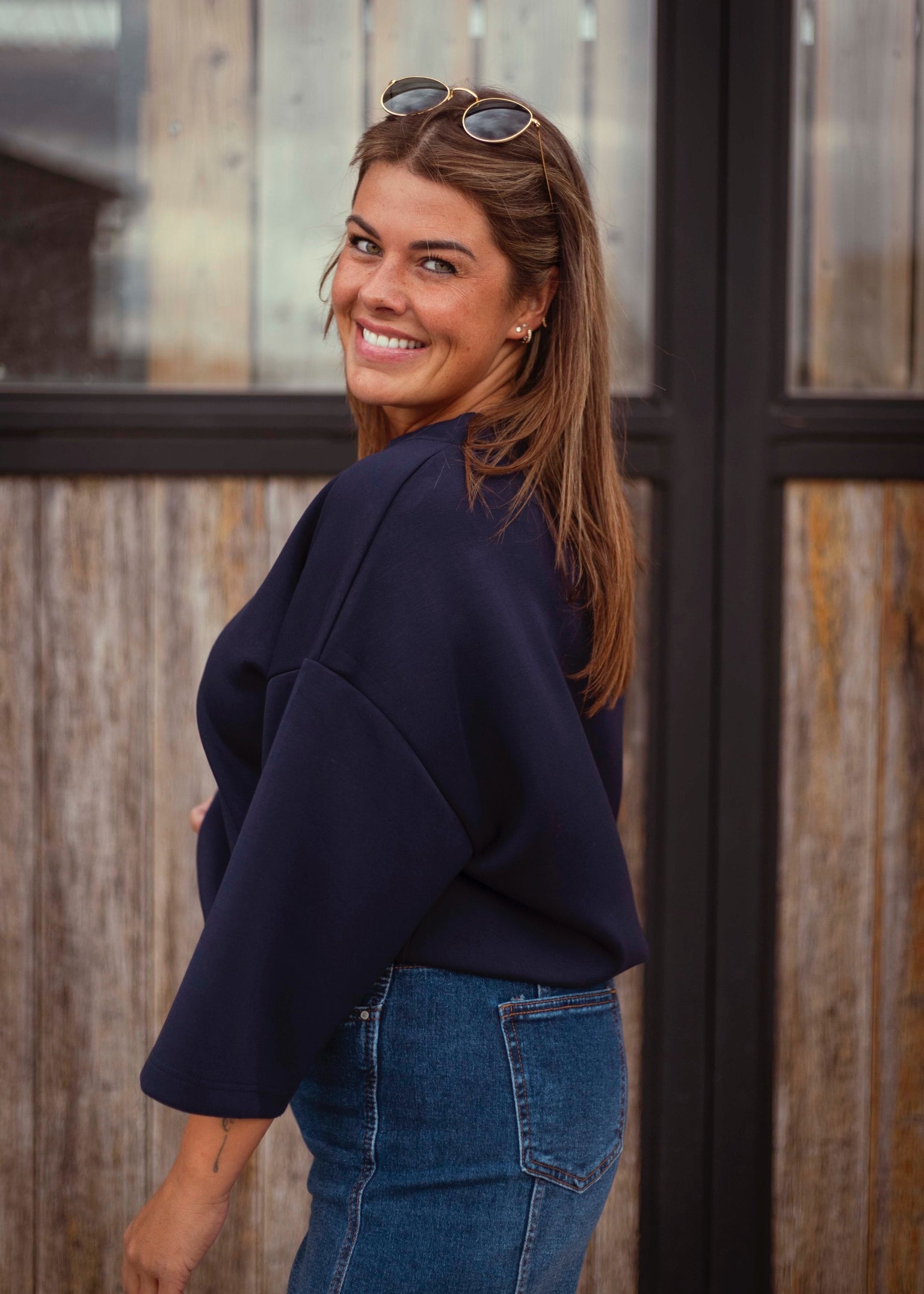 ABIGAIL DARK BLUE TURTLENECK SHORTSLEEVE TOP