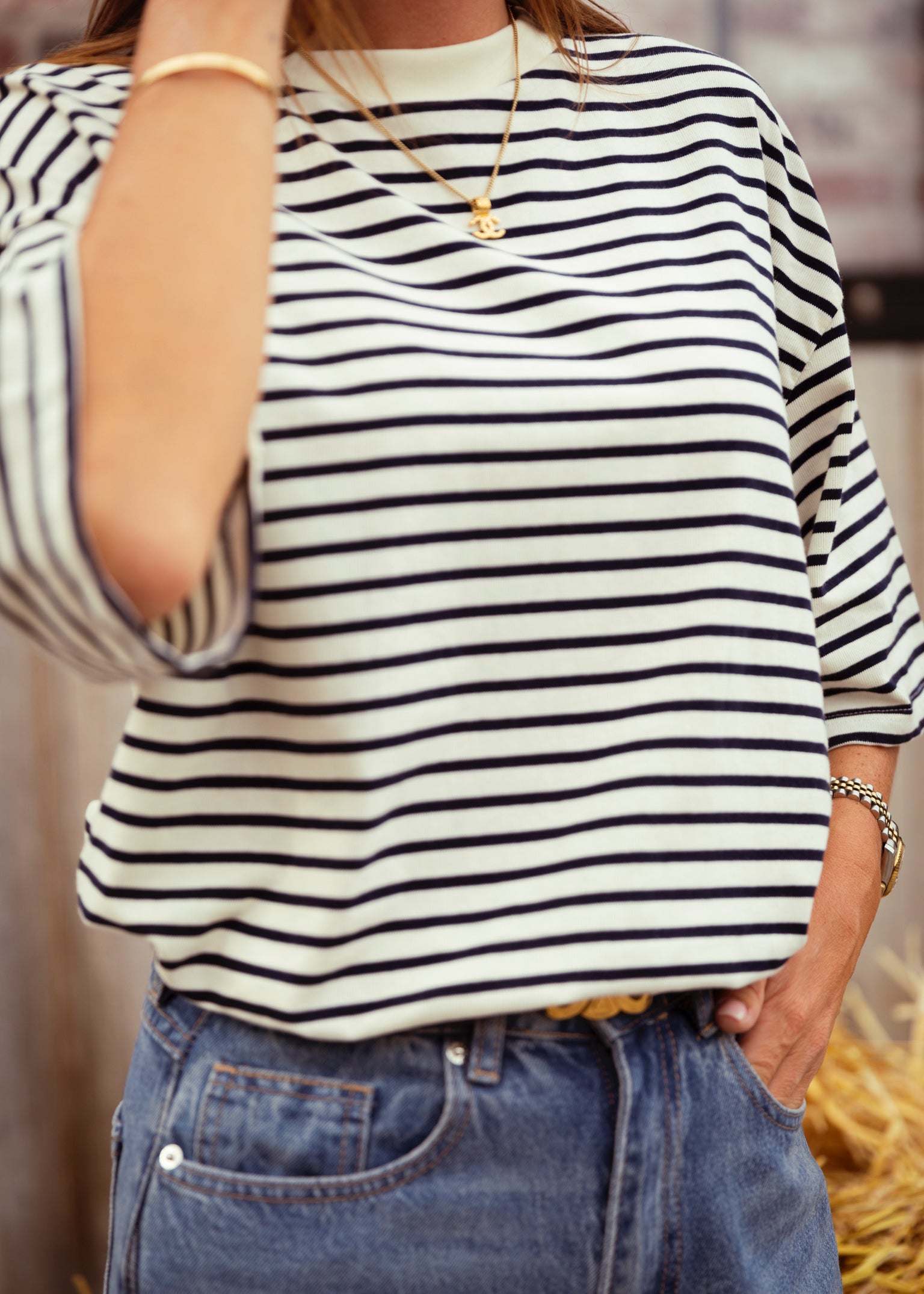 EZRA ECRU STRIPED T-SHIRT