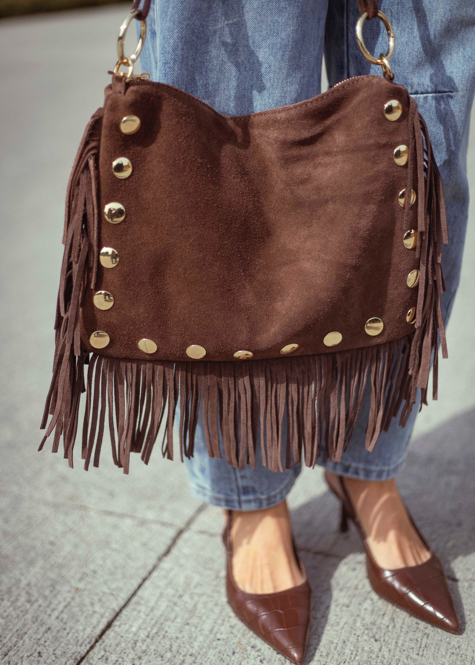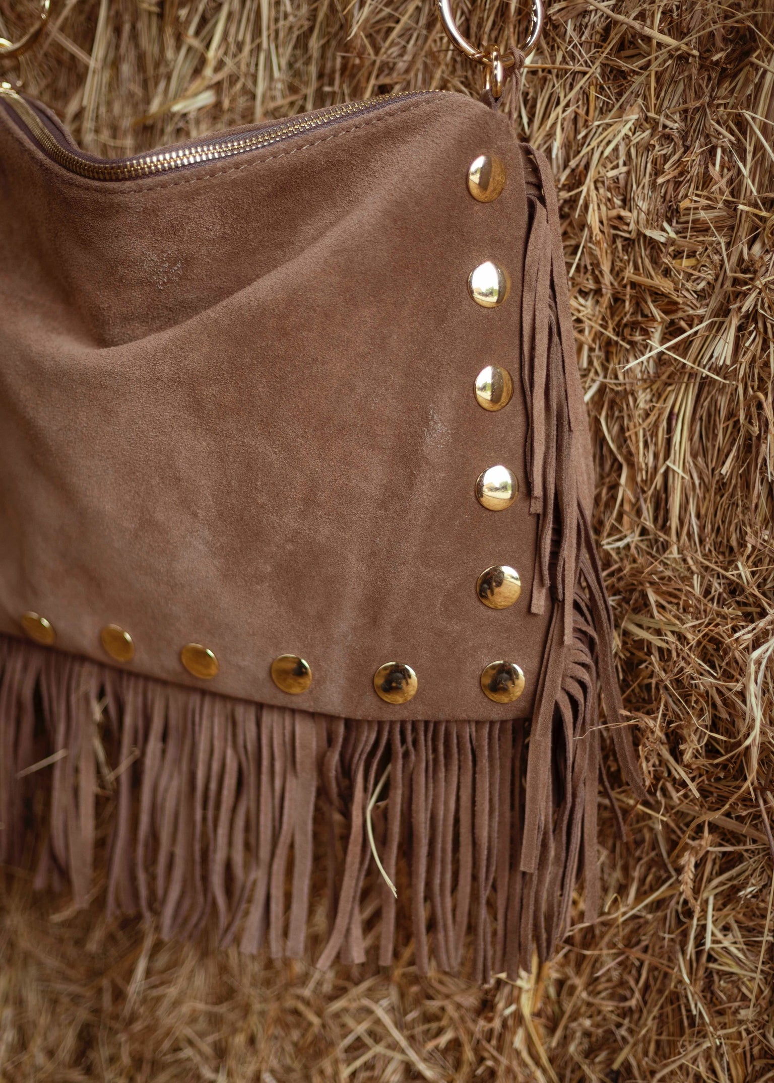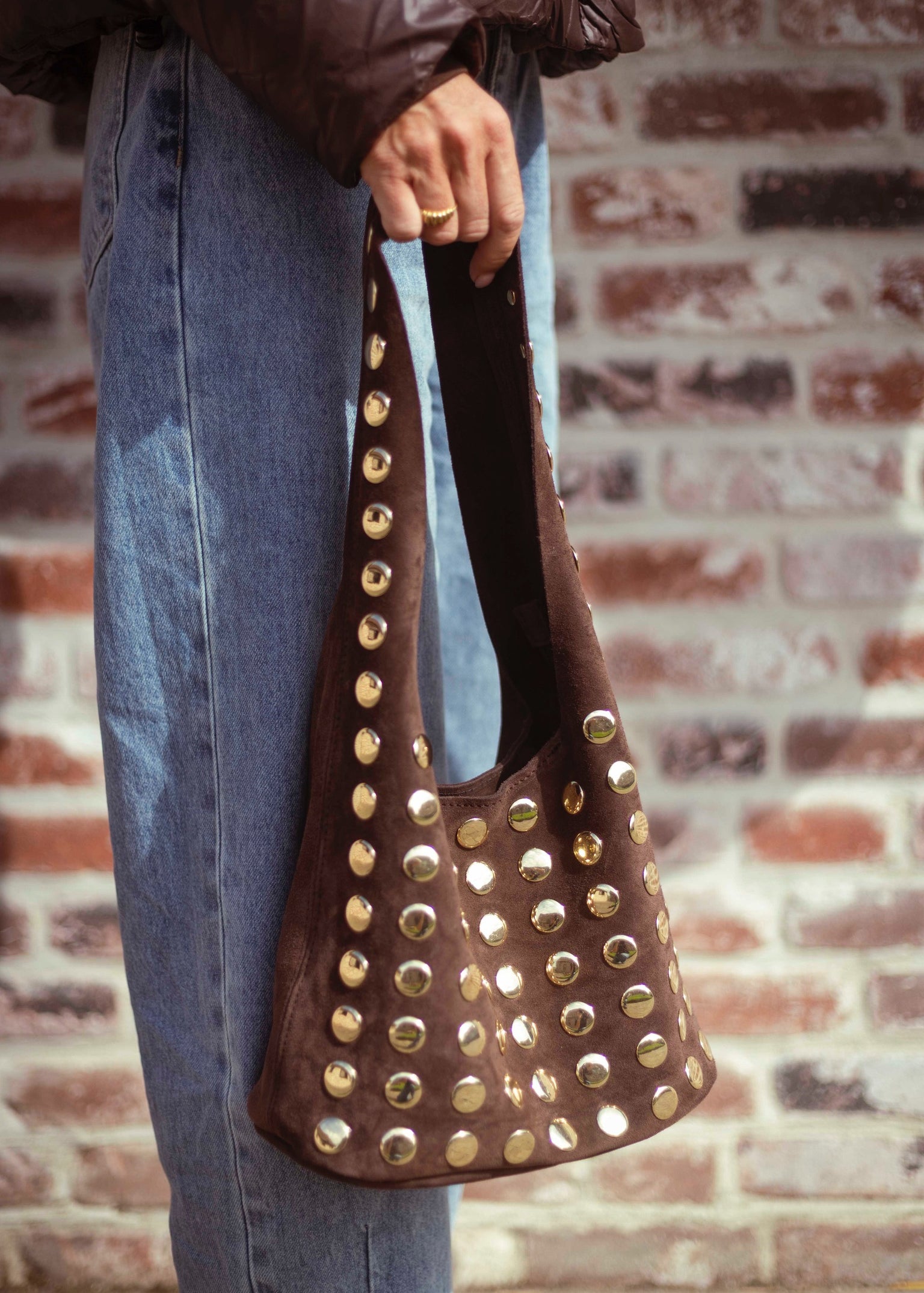 MAYFLOWER CAMEL SUEDE STUDS BAG