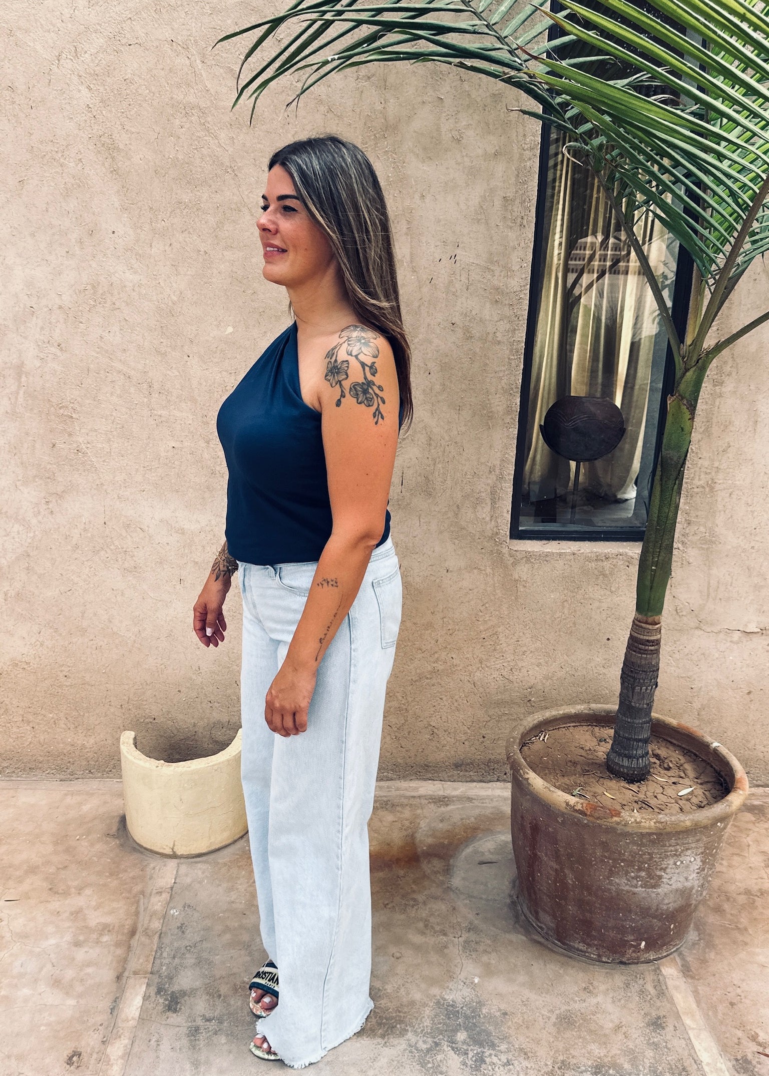 DUNES & DATES DARK BLUE ONE SHOULDER TOP