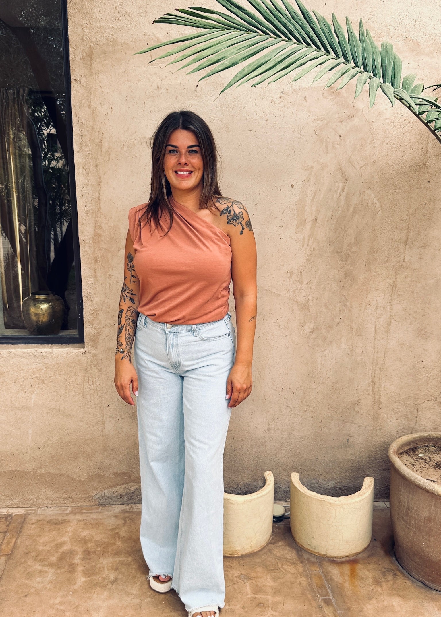 DUNES & DATES TERRACOTTA ONE SHOULDER TOP