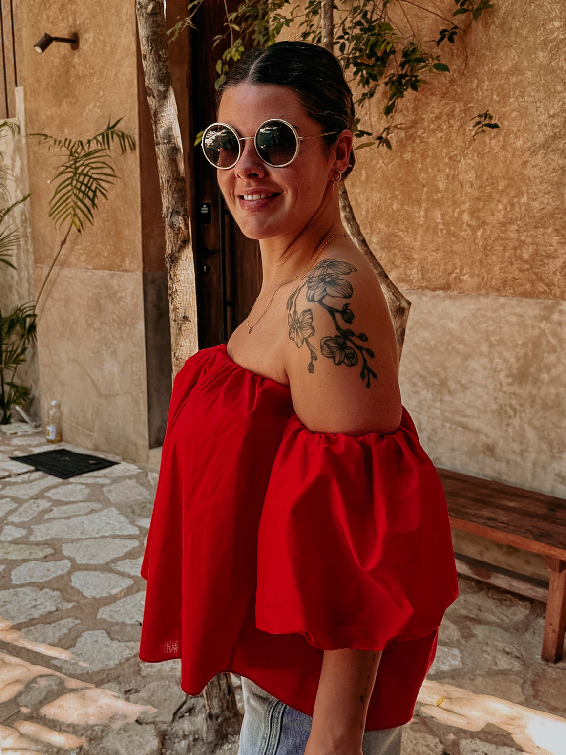 HOLA RED OFF SHOULDER TOP