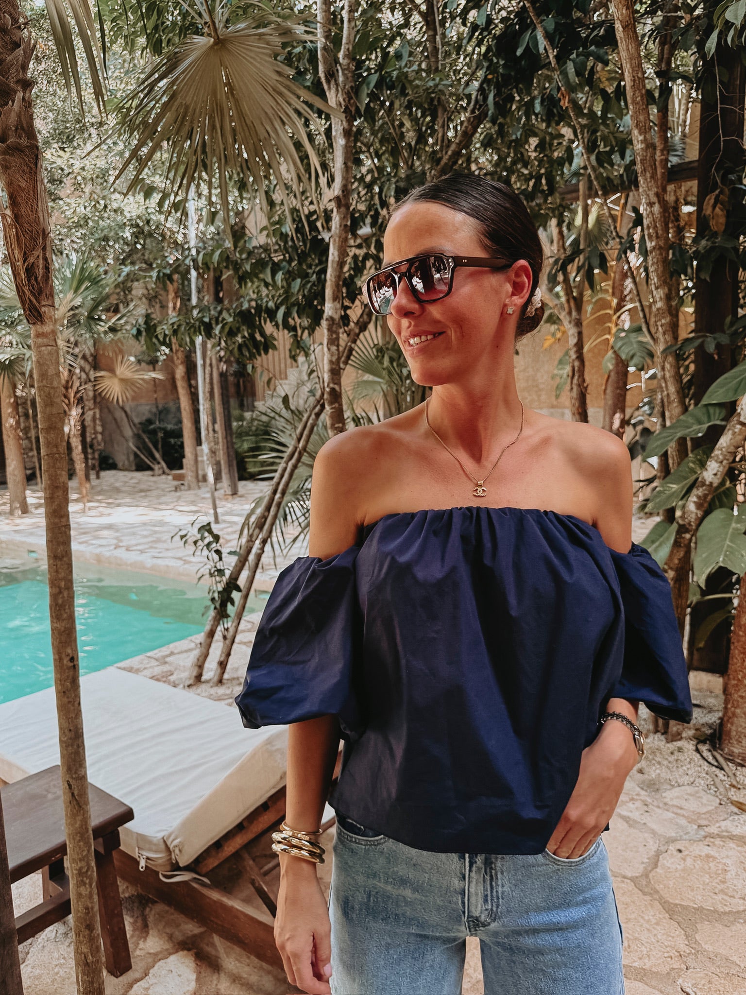 PRE-ORDER HOLA DARK BLUE OFF SHOULDER TOP